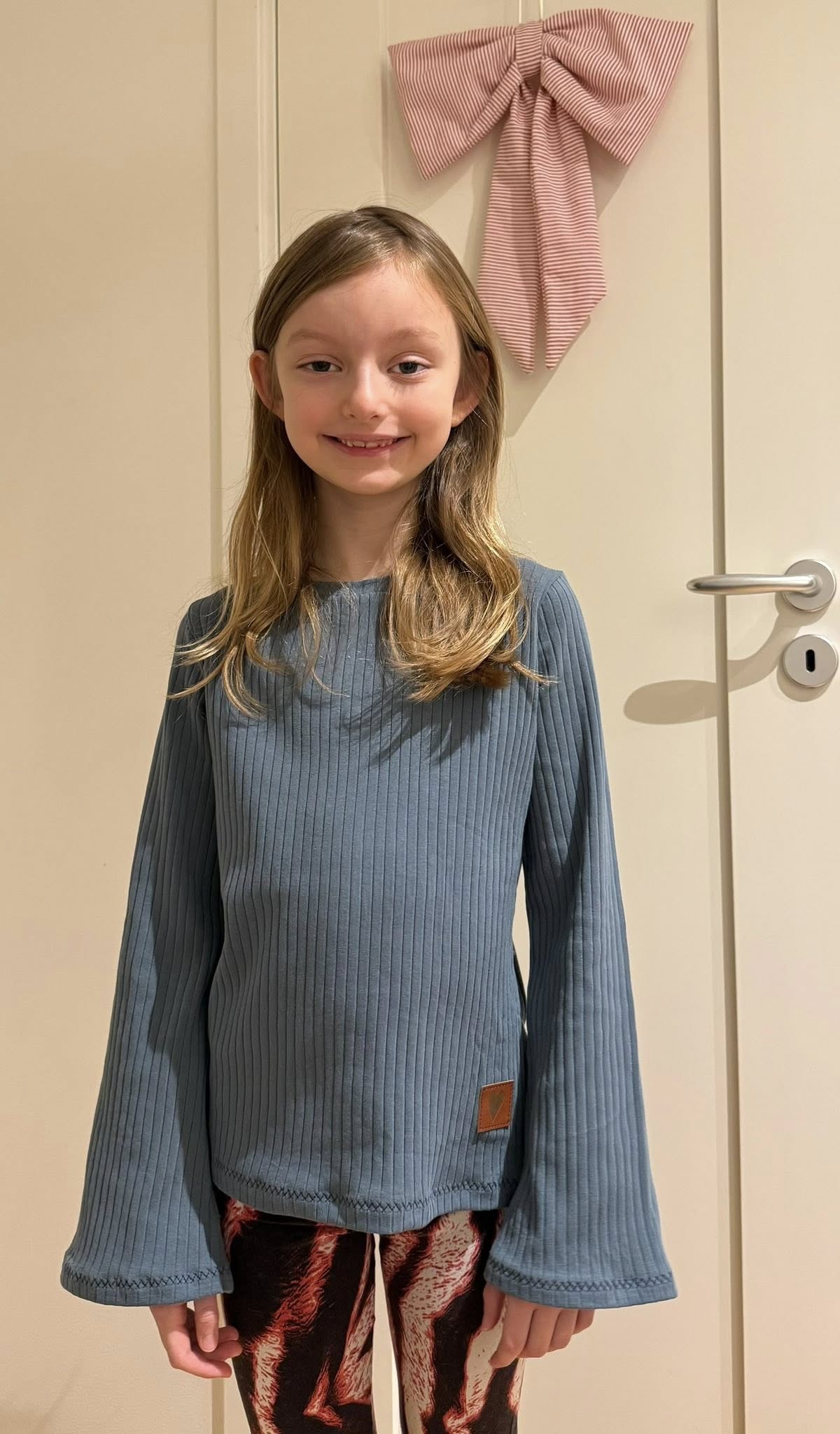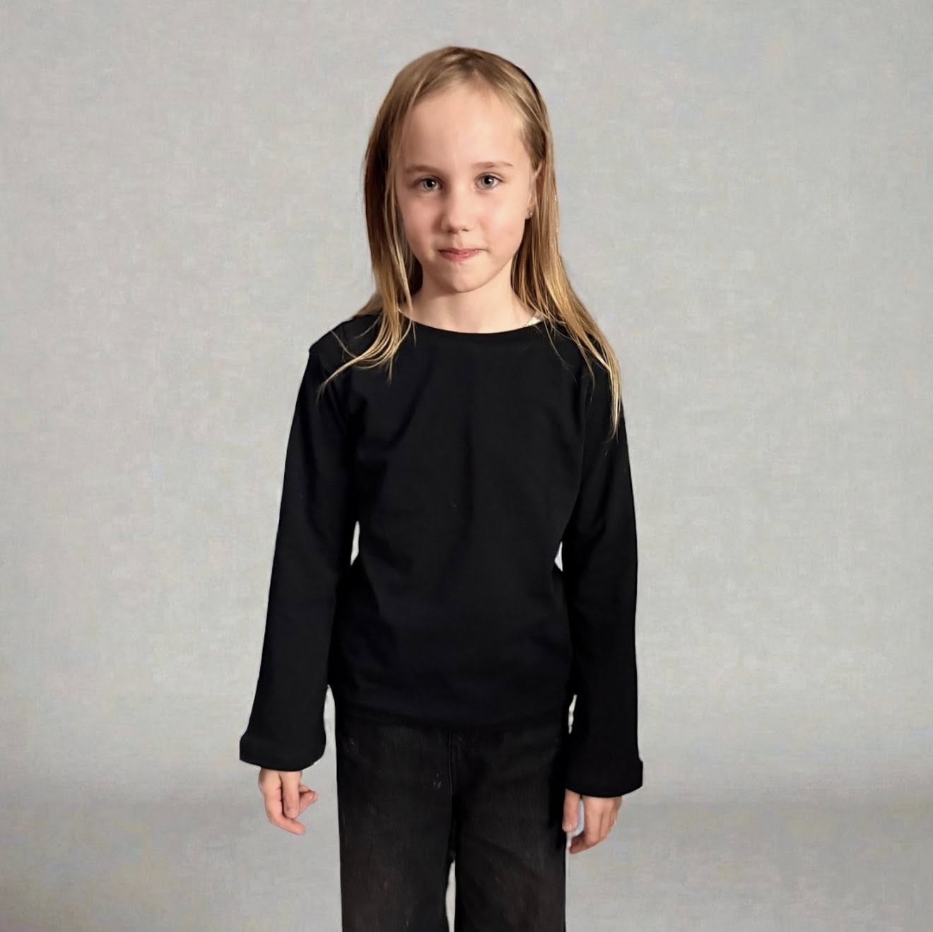 Bell Top är en enkel topp med lite vidare, rak halsringning, kort eller lång ärm samt en söt ärm med utsvängda ärmslut. Den är snabbsydd och bekväm, alltså en perfekt vardagstopp.