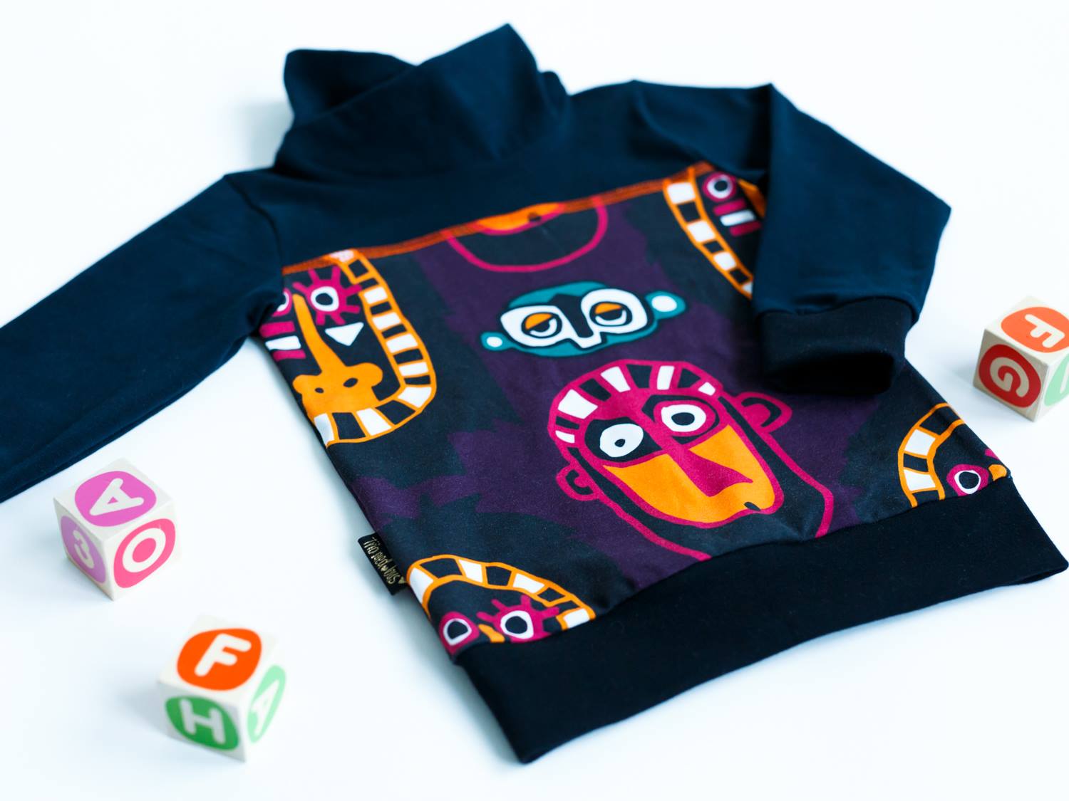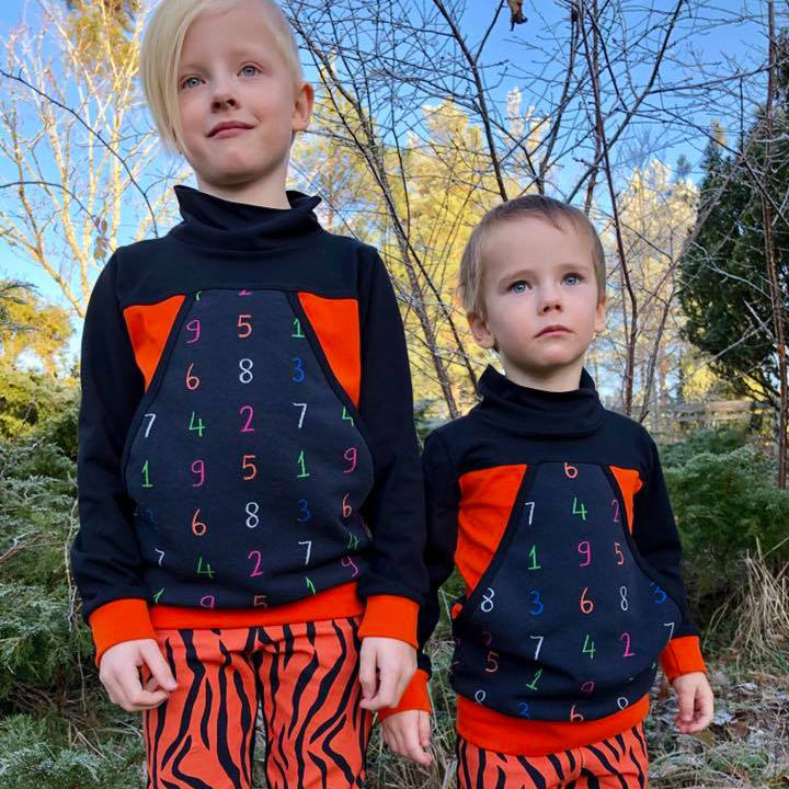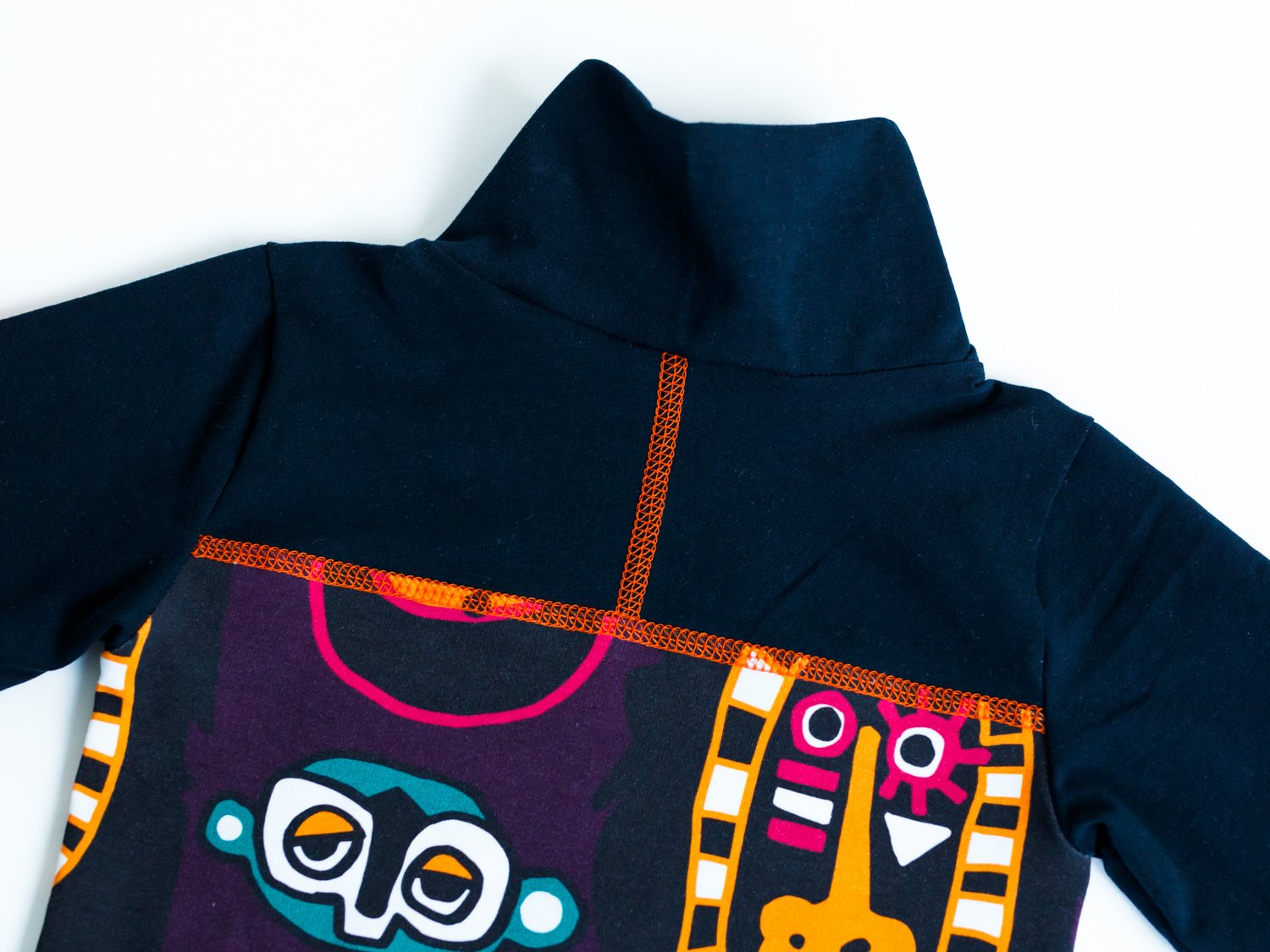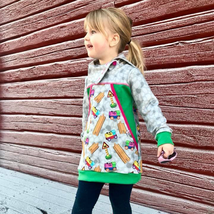 Comfy Collars är en både stilig och sportig unisex-modell framtagen i samarbete med Cirkus Karlsson som kommer i både tröj- tunika och klänningslängd. Man kan förutom vanlig halsmudd välja mellan hela tre olika kragar; omlott-ståkrage, stor polokrage med sned knapplist samt en turtleneck med blixtlås fram. Modellen kommer dessutom med en valfri stor magficka som rymmer det mesta barnen vill bära med sig. Comfy collars sys med ett snyggt ok både fram och bak som är lite speciellt på det viset att det kommer i ett helt stycke.
