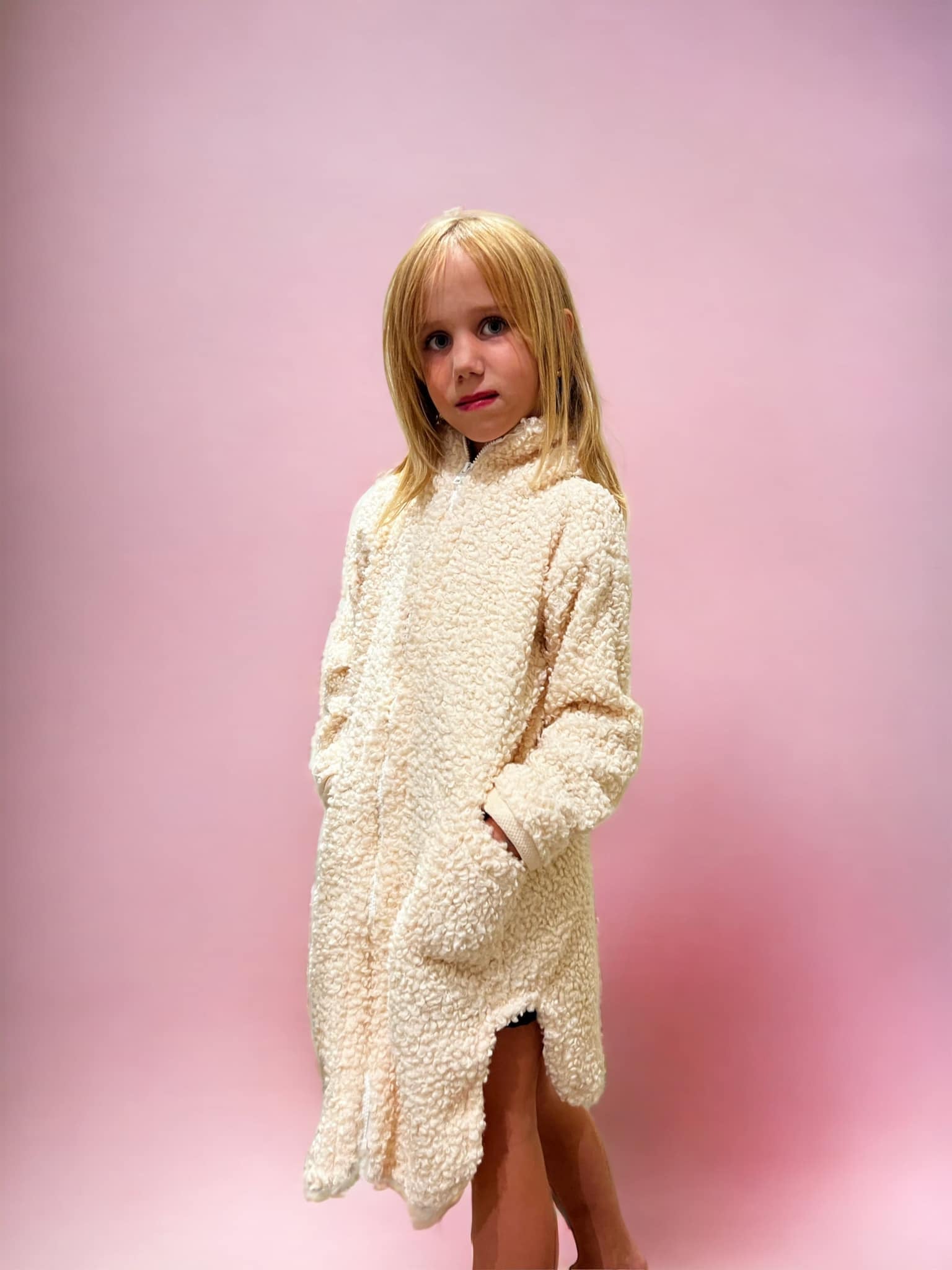 Cozy Coat är en urmysig kappa i oversizemodell med blixtlåsstängning och fickor. Går att sy med både krage och luva samt med lång svängd eller kortare rak nederkant. Detta är en ofodrad modell som lämpar sig ypperligt att sy i teddy eller liknande material med en aning stretch men har också testats under provsömnaden i fleece med toppenresultat, eller sy den i tjockt bomullstyg eller canvas som en senvår/sommarkappa, eller varför inte bredspårig manchester?