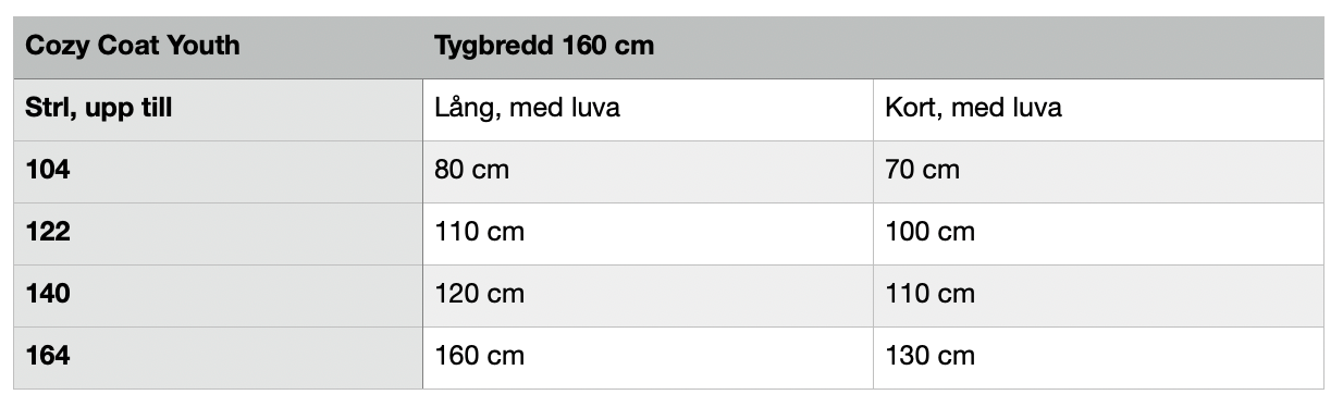 Se sista produktbilderna för tygåtgång.