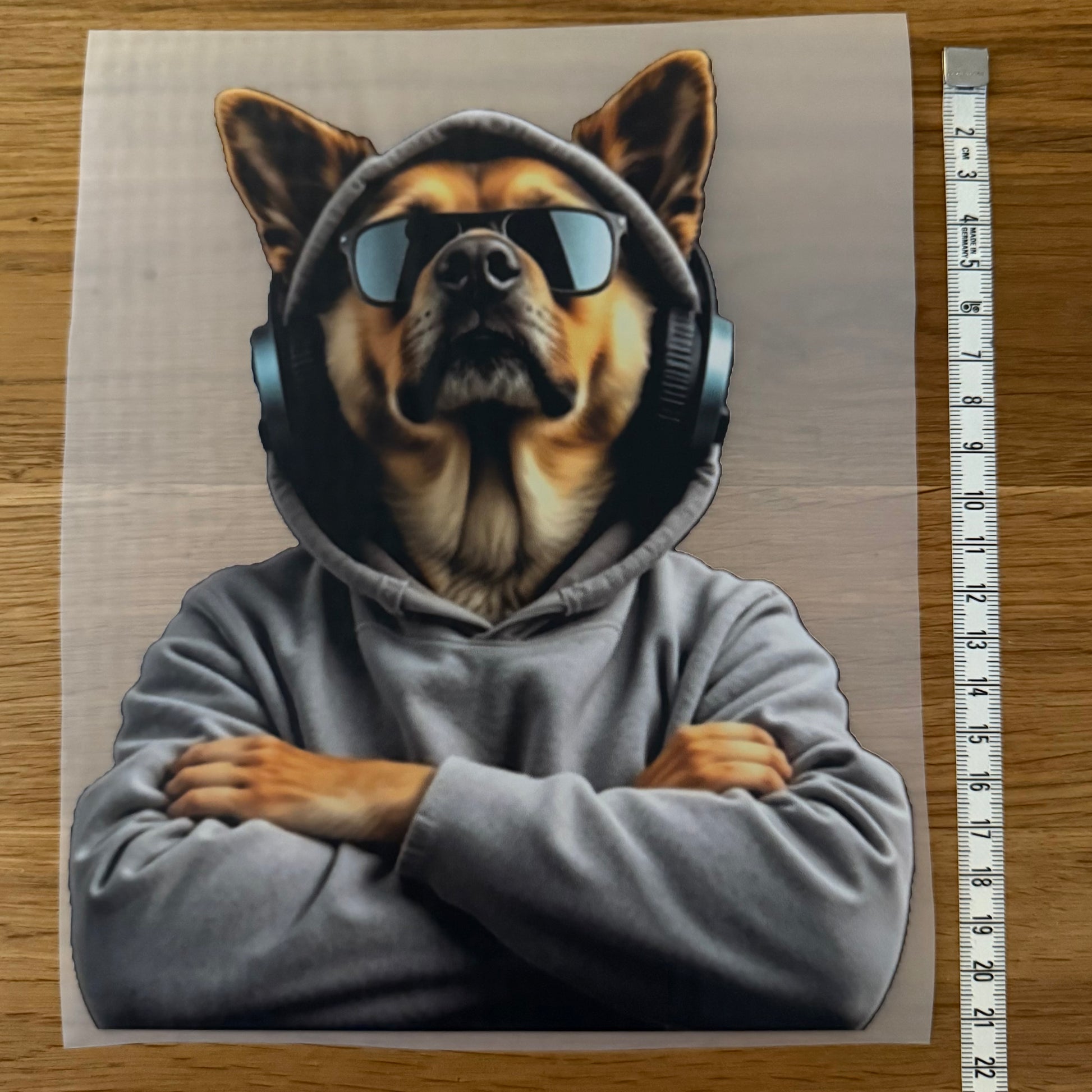 Pressa på med värmepress eller strykjärn; 160 grader i 20 sekunder. Låt svalna helt innan ni drar av bäraren genom att rulla av plasten från ena hörnet.