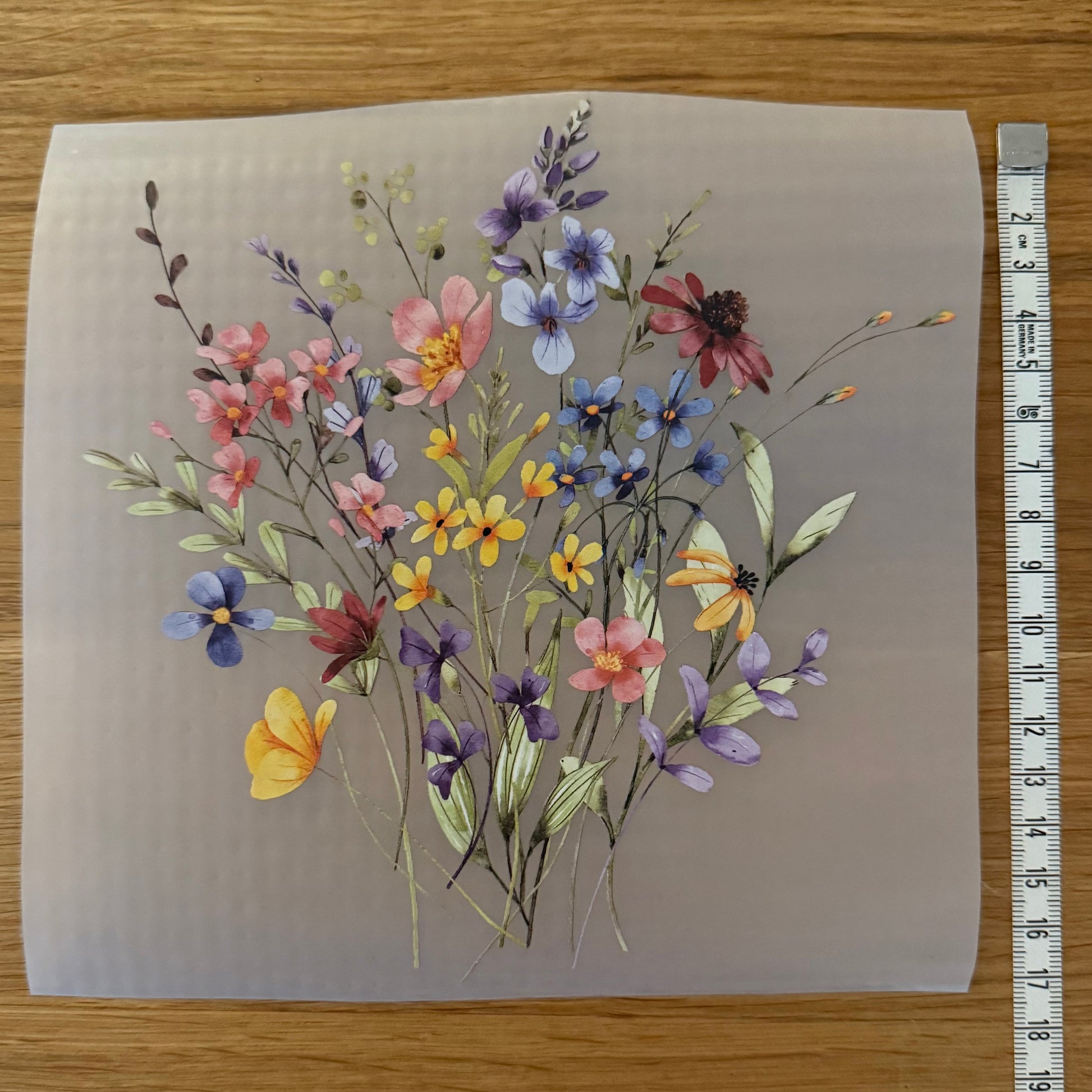 Pressa på med värmepress eller strykjärn; 160 grader i 20 sekunder. Låt svalna helt innan ni drar av bäraren genom att rulla av plasten från ena hörnet.