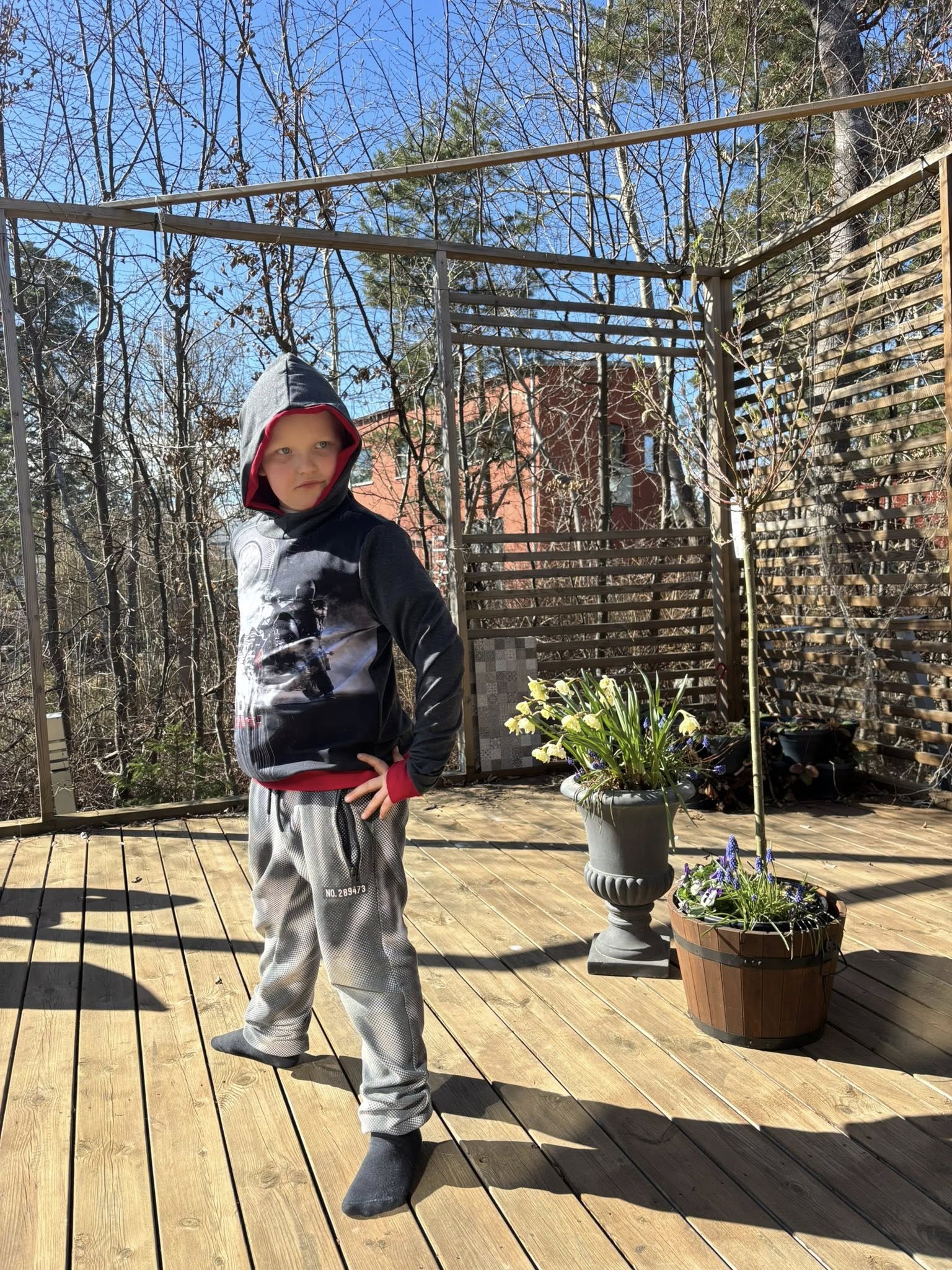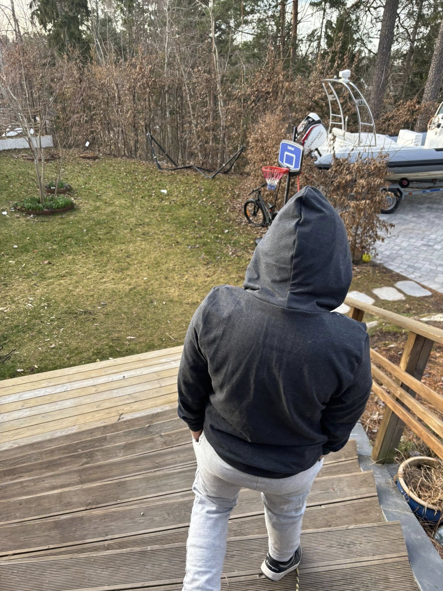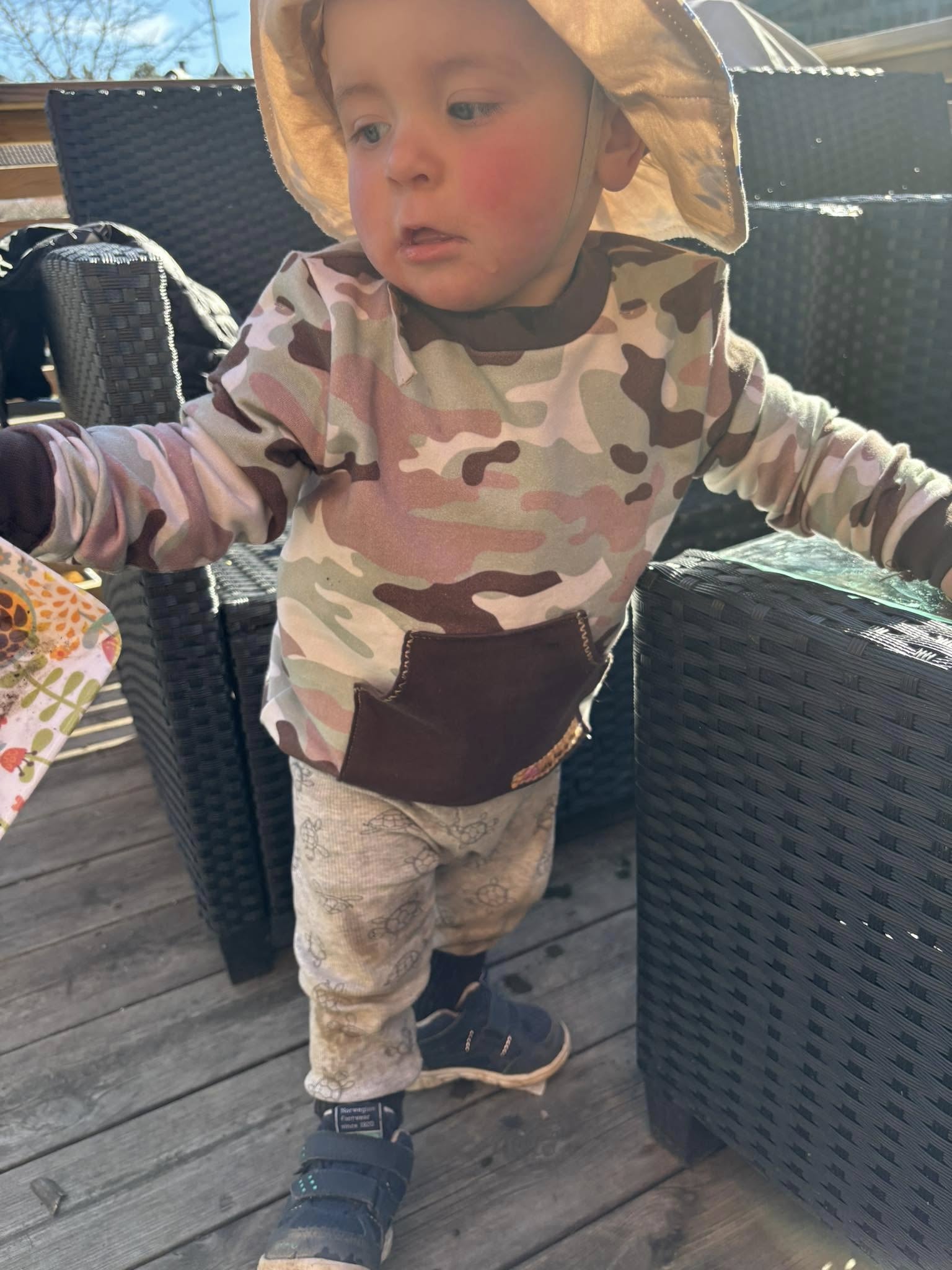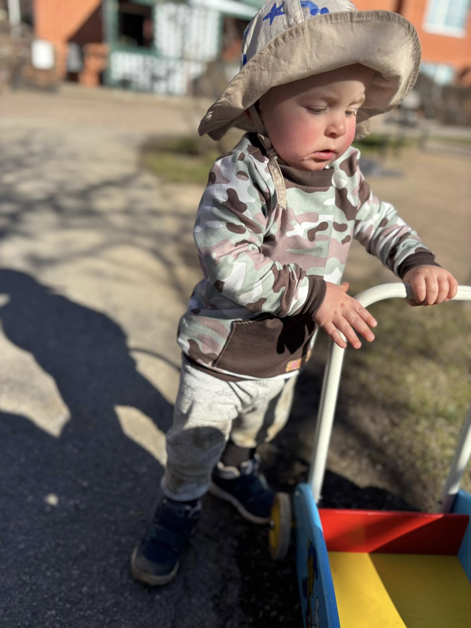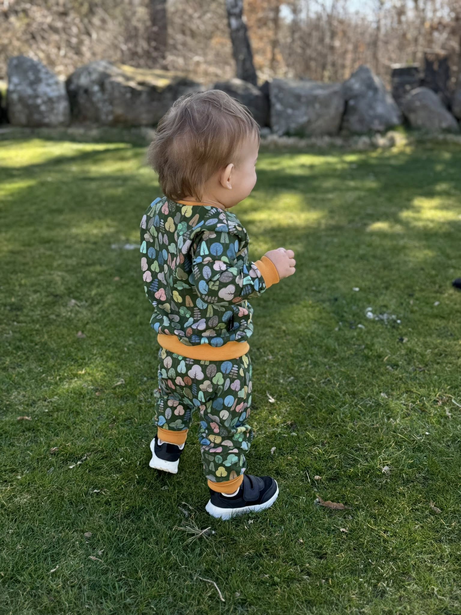 Material och tillklippning: Denna modell är ritad för jogging/french terry med mudd i ärmslut och nederkant (samt ev. halsringning). Huvan fodras med jogg eller trikå. Valfria detaljer kräver blixtlås för ärmfickan samt öljetter och hoodiesnodd till huvan.