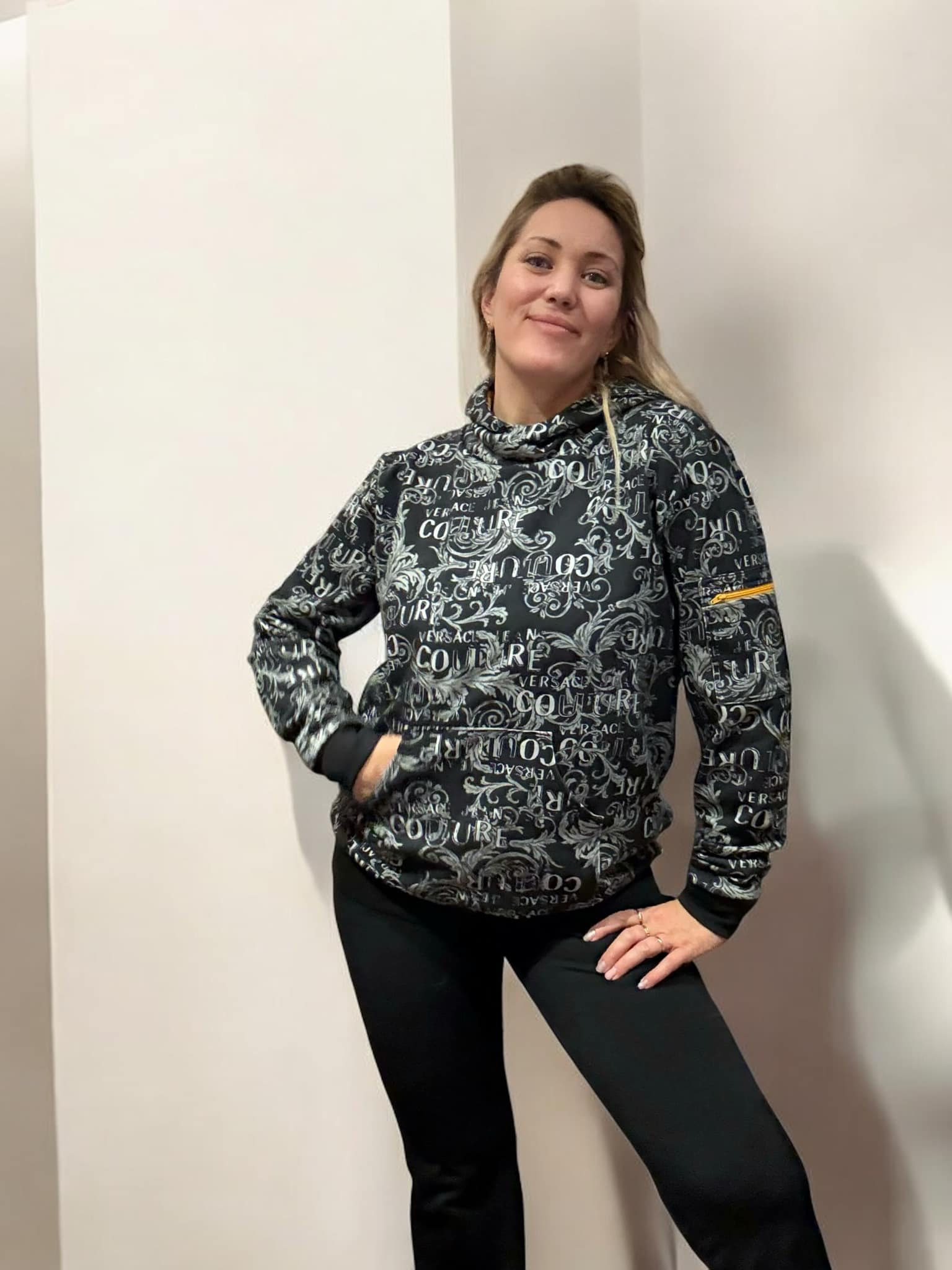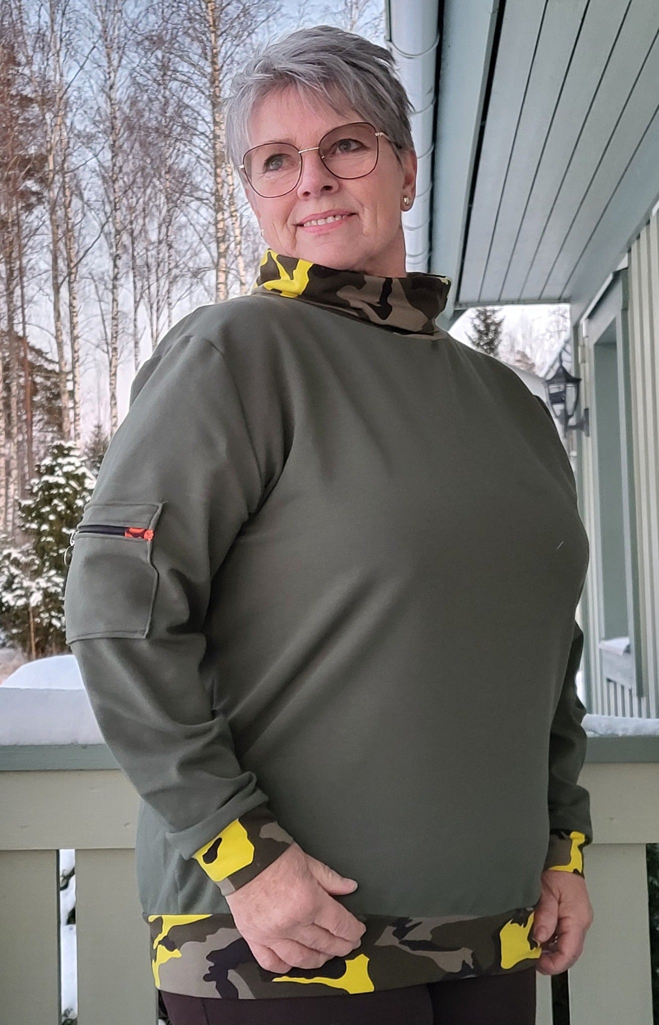 Everyday Unisex Hoodie är precis som det låter en helt vanlig sweatshirt/hoodie med rakt snitt, men vill man kan man även variera den med magficka eller coola och praktiska ärmfickor med blixtlås. Halsringningen kan man förutom mudd och huva även pryda med polokrage. Syr man halsringningen med mudd är den skuren så att man kan bära skjorta under om man vill att kragen ska synas.