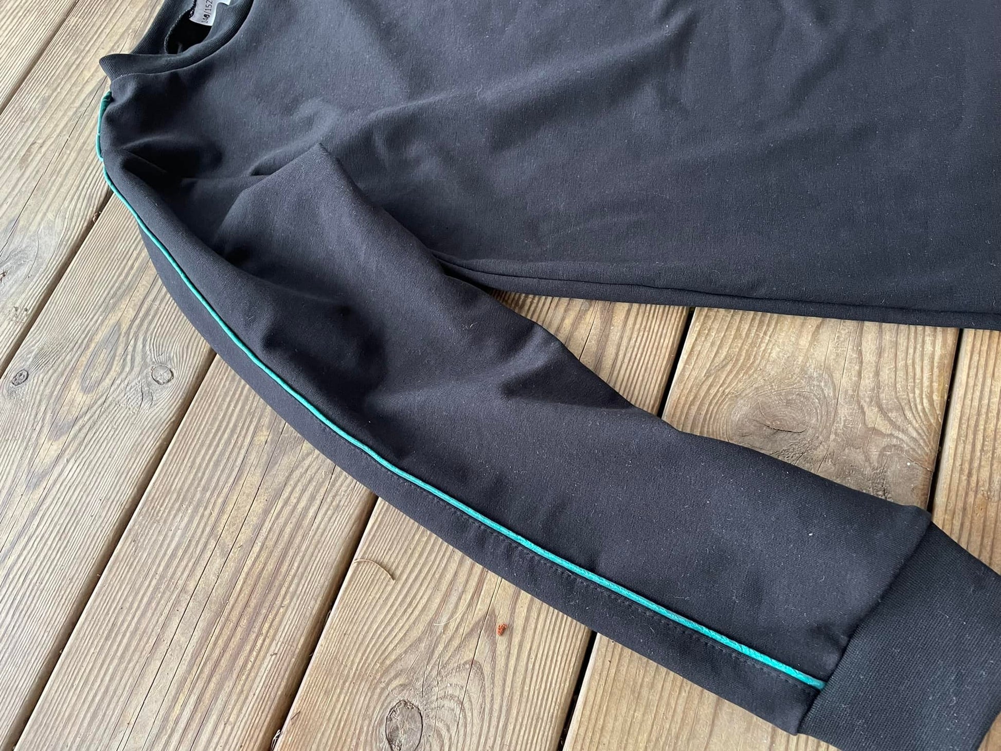 Material och tillklippning: Modellen sys i trikå/jersey eller tunnare jogging med en elasticitet på minst 40%. Muddväv tillkommer till halsringning och ärmslut, och resårband samt ev. elastisk passpoal till midja/ärm.