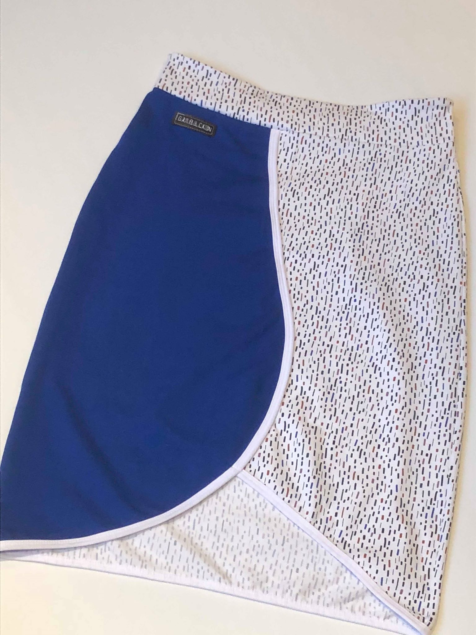 Material: Flirt Skirt är designad att sys i trikå/jersey, men har under provsömnaden sytts i andra tjockare elastiska modetyger samt courtellejersey med framgång.