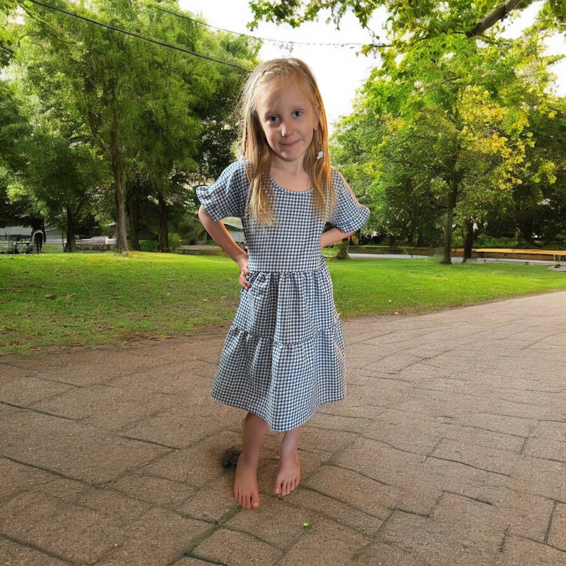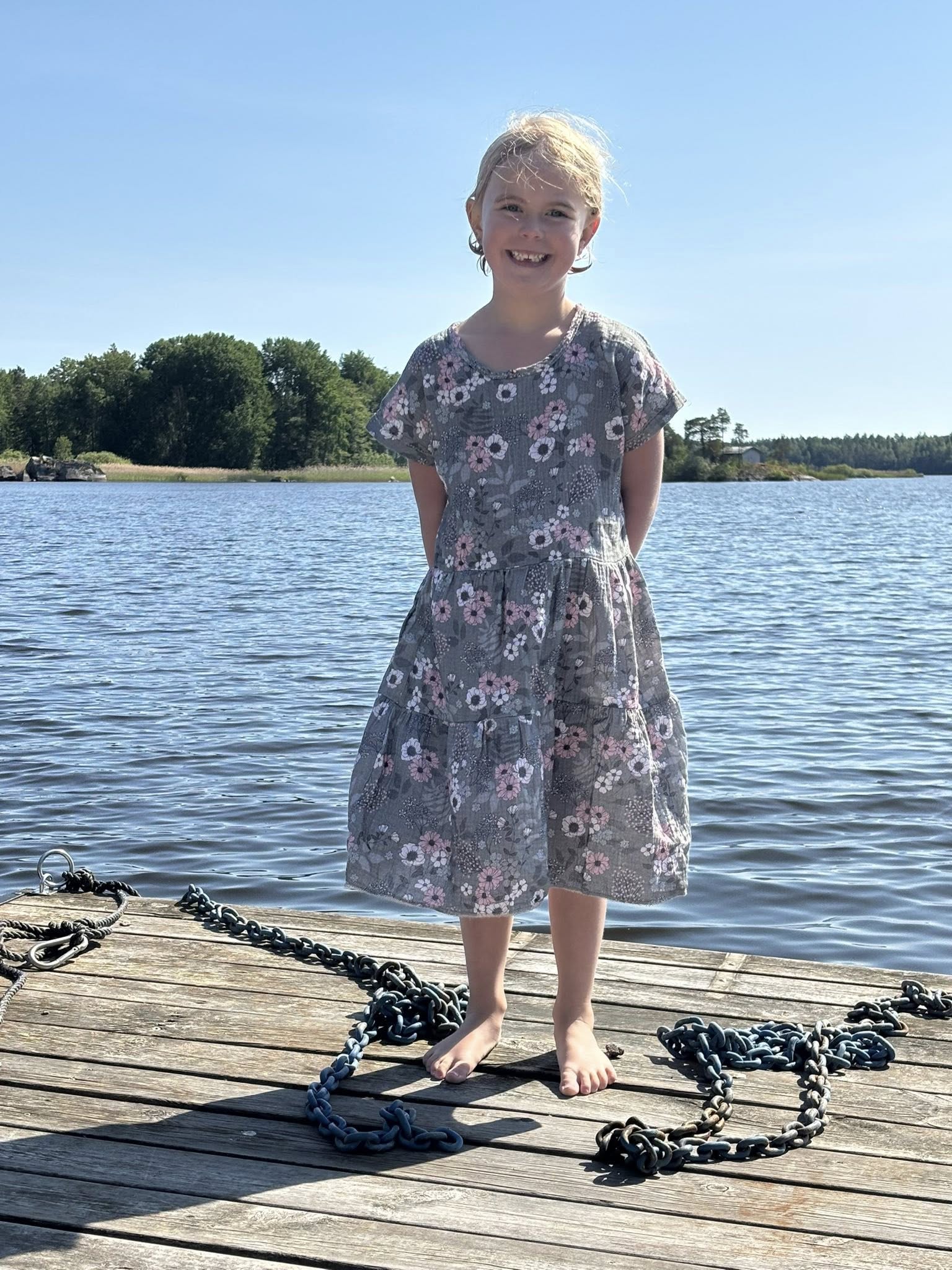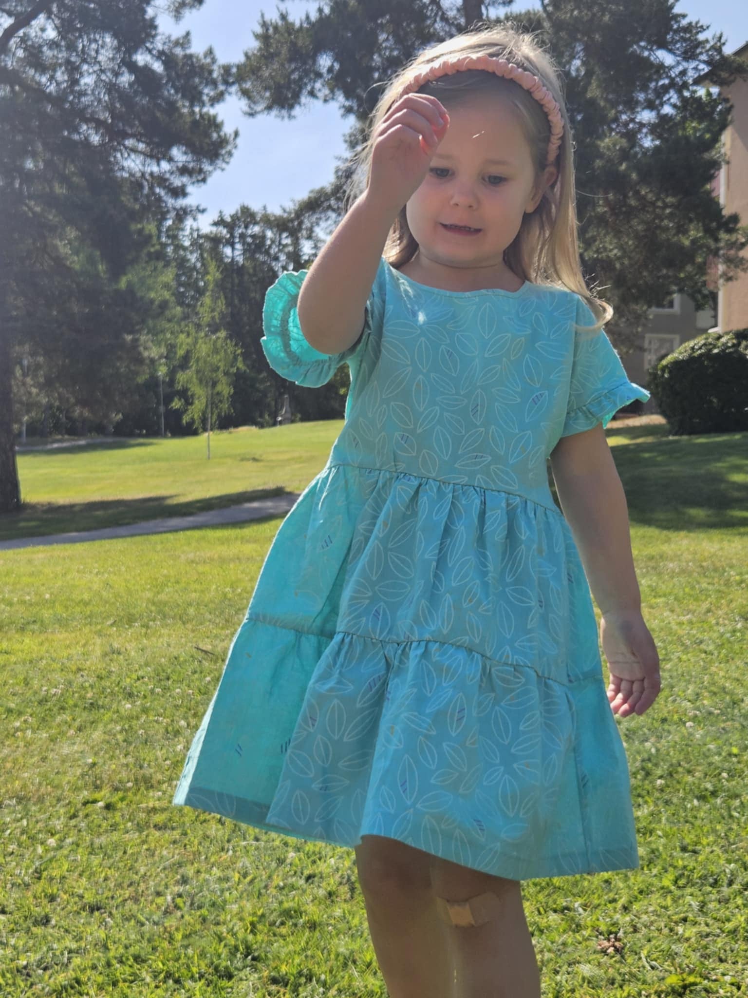 Flow Dress Youth ledig modell i romantiskt snitt och samtidigt snabbsydd, och som kan varieras på massor av olika sätt i form av antal våder, med eller utan volangkant på ärmen samt diverse pattern hacks som kommer sist i denna sömnadsbeskrivning.