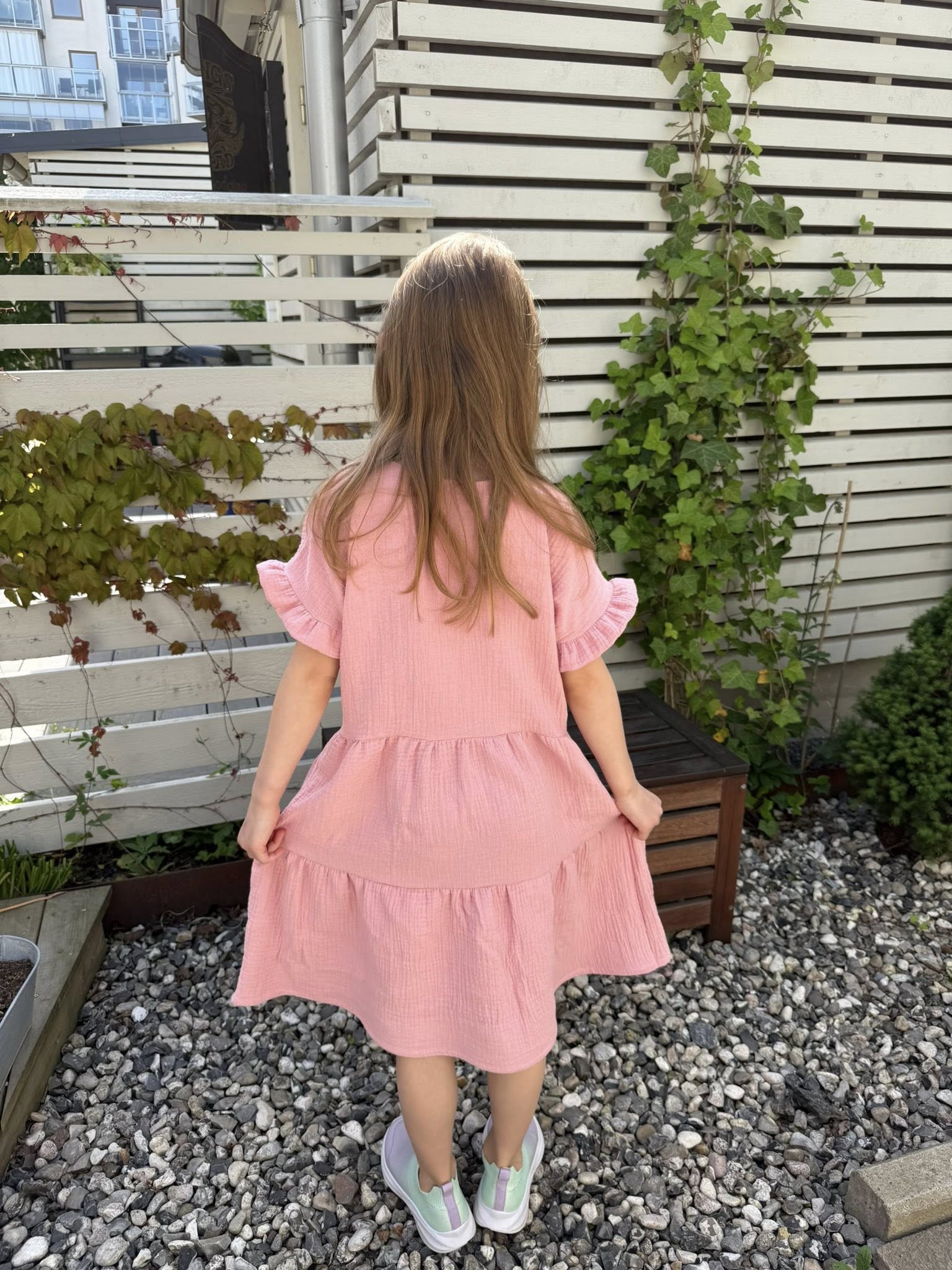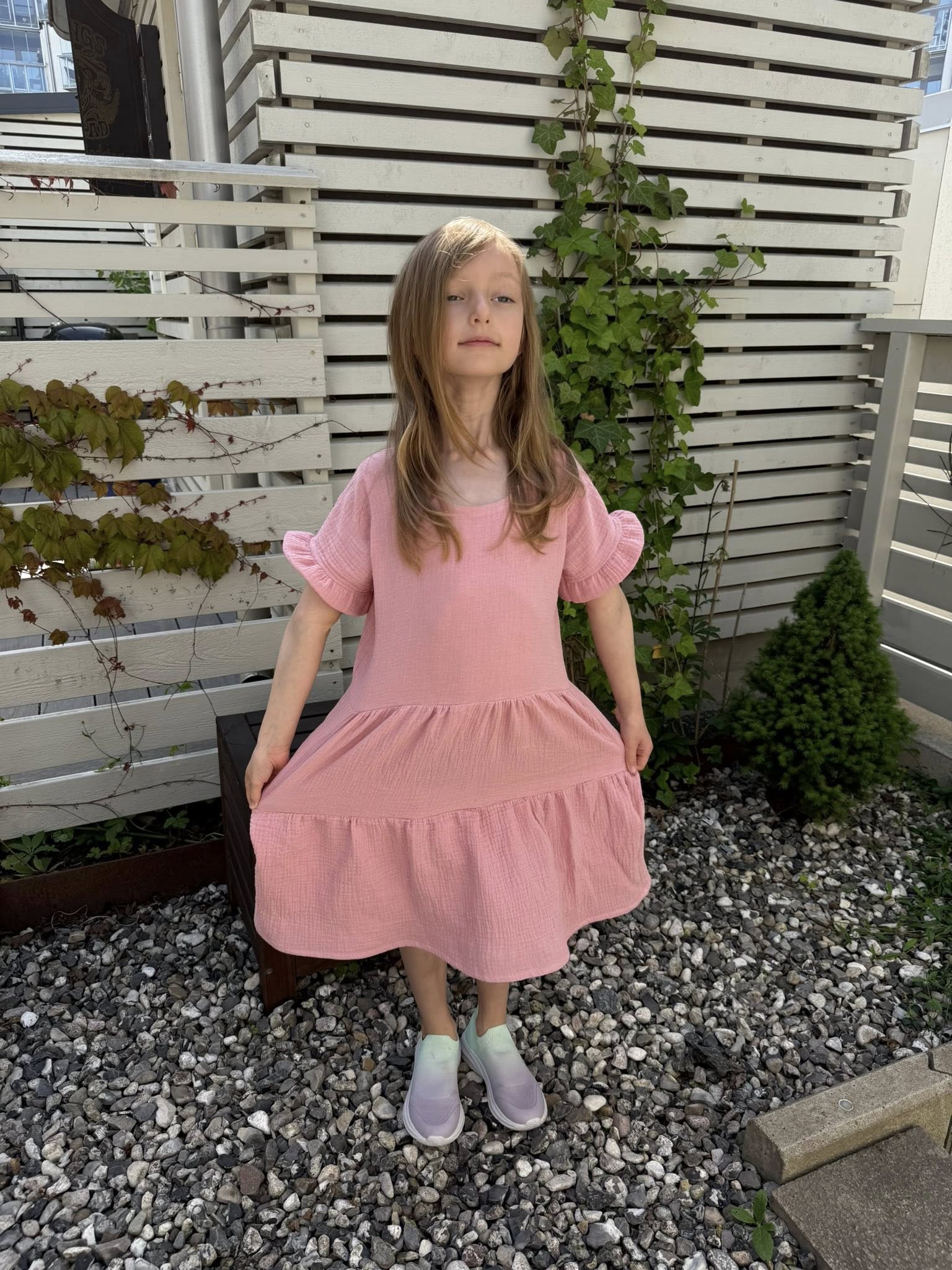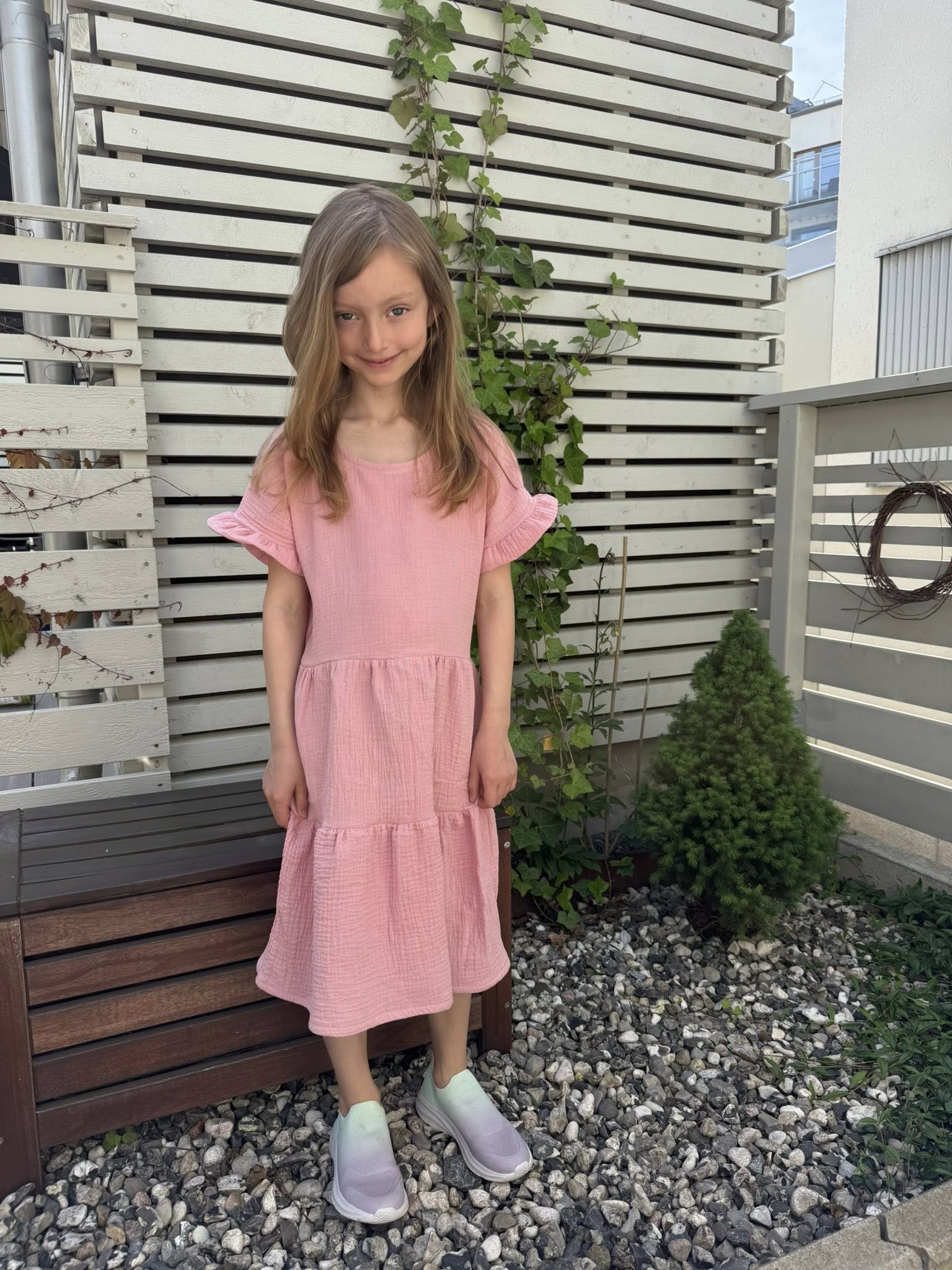 Flow Dress Youth ledig modell i romantiskt snitt och samtidigt snabbsydd, och som kan varieras på massor av olika sätt i form av antal våder, med eller utan volangkant på ärmen samt diverse pattern hacks som kommer sist i denna sömnadsbeskrivning.