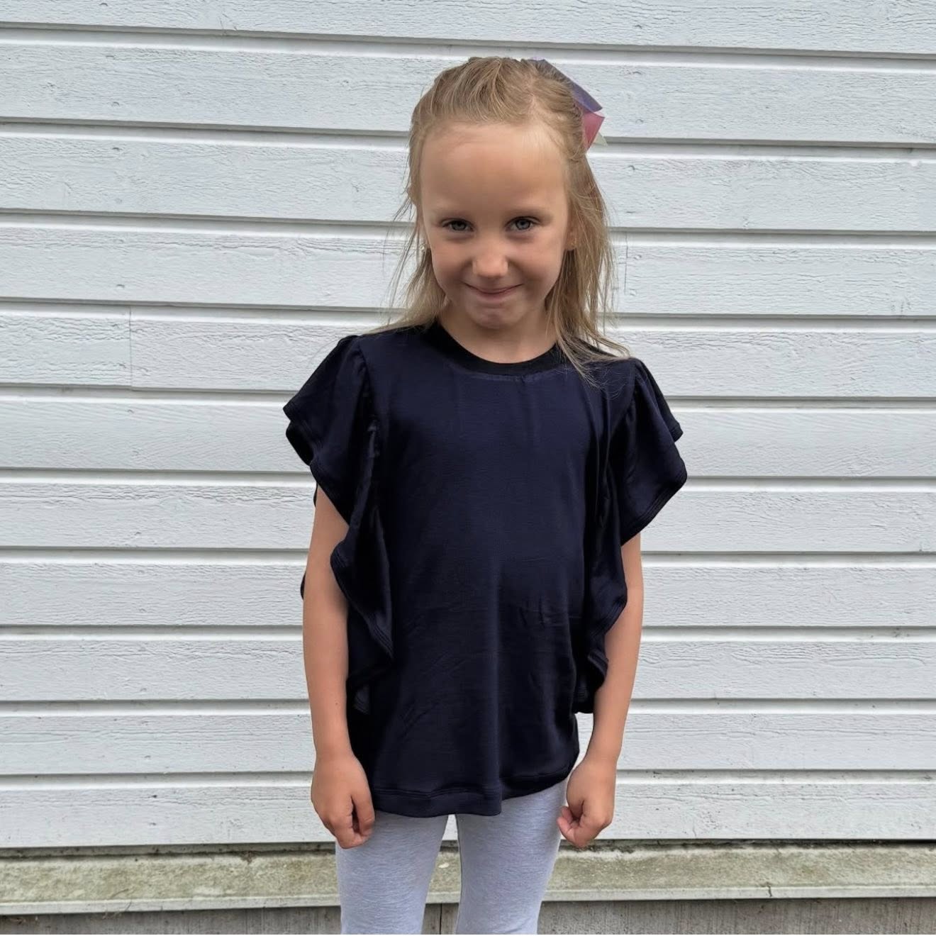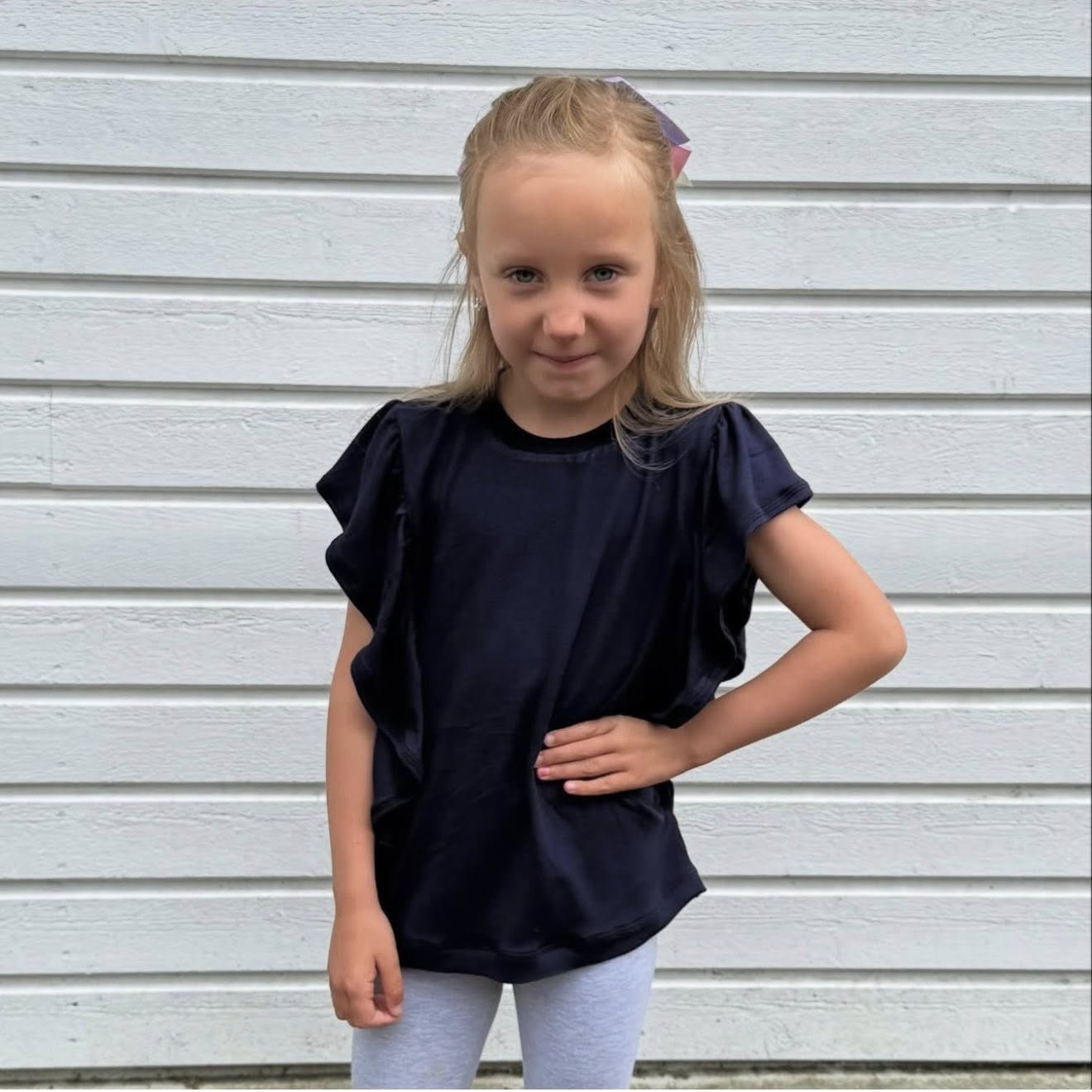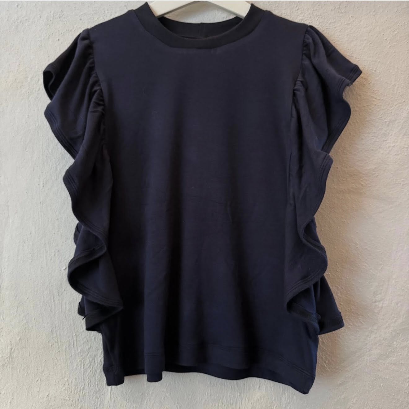 Frillie Top är en söt modell med generösa volanger som faller ner över axlarna och som sträcker sig ner till toppens sidosöm. Den kan även sys som en vanlig rak tank top utan volang vilket gör mönstret användbart för flera typer av projekt.