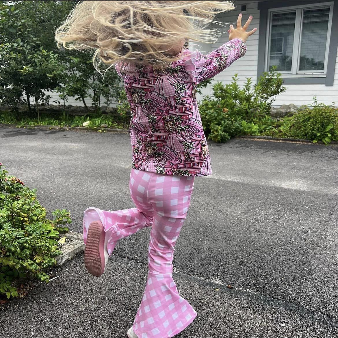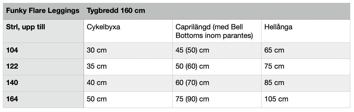 Funky Flare Leggings är ett par slimfit leggings med mängder av variationer: Sy de med smala benslut i tre längder; hellånga, capri eller cykelbyxa, utsvängda benslut eller med söt bell bottom/volang nedtill. Extremt snabbsydda då de inte har någon sidosöm och midjan sys med linning med resår i för att det inte ska skava någonstans.