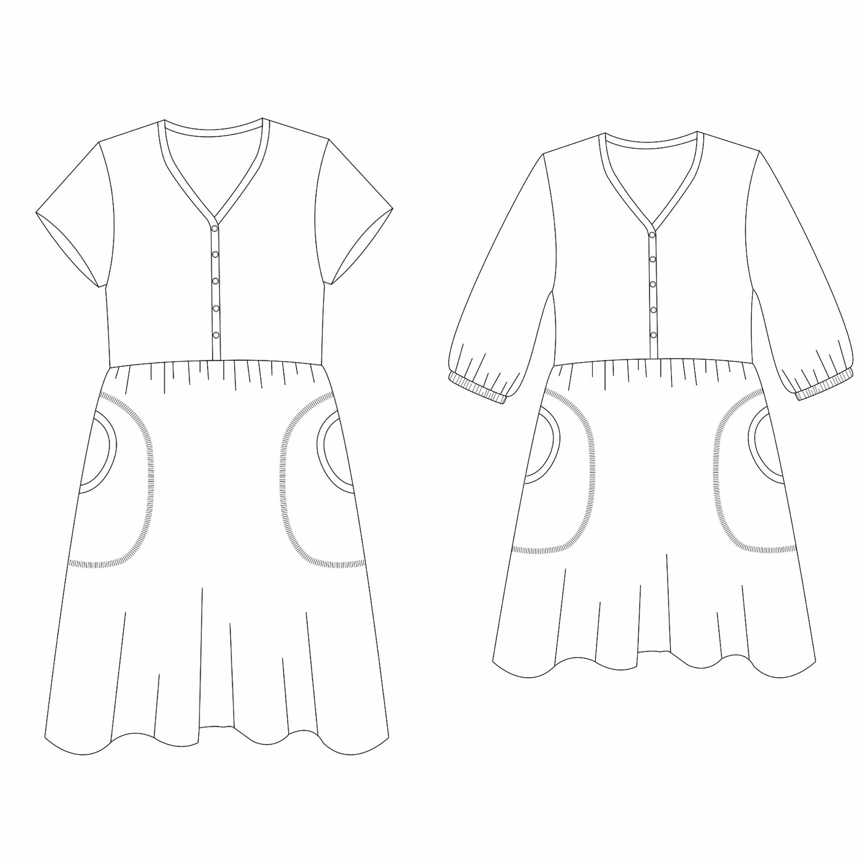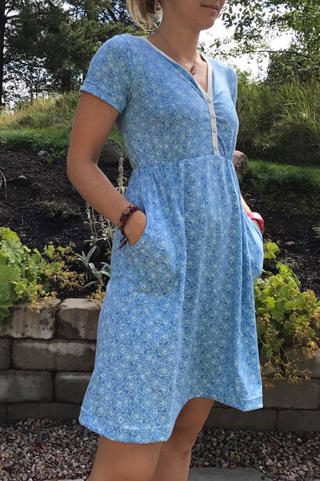 Granpa Tunic Dress är en ledig och bekväm tunika/klänning med smickrande passform. Denna modell kan sys i två längder; som knälång klänning eller som tunika, med eller utan fickor och med kort fållad ärm, med halvlång fållad ärm eller med utställd ärm med resårkanal i ärmsluten. Knäppkant framtill vilket även gör den enkel att amma i.