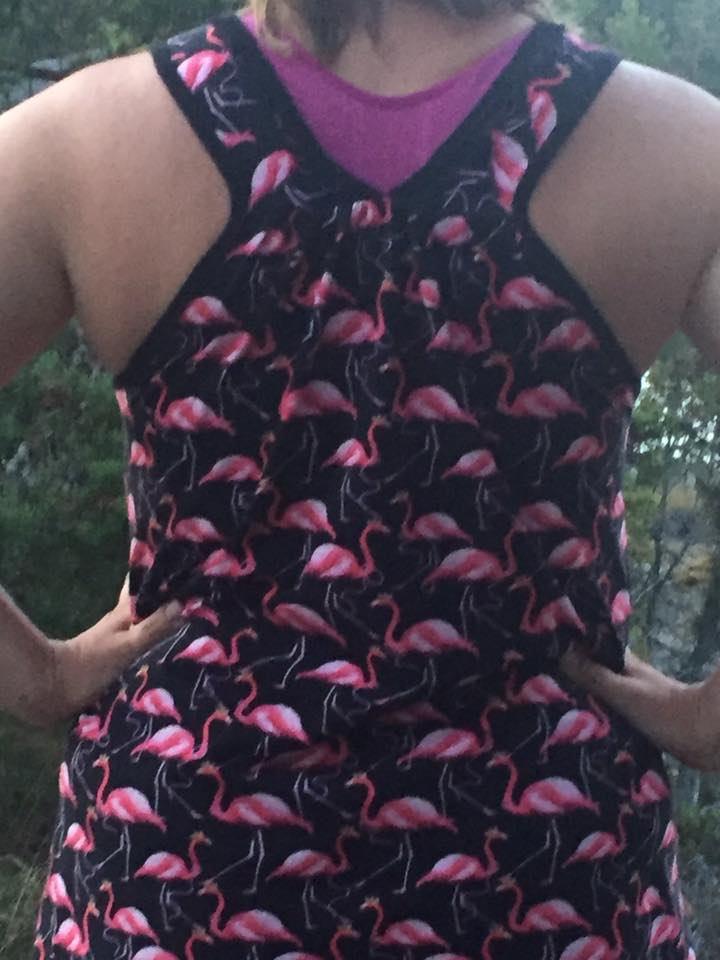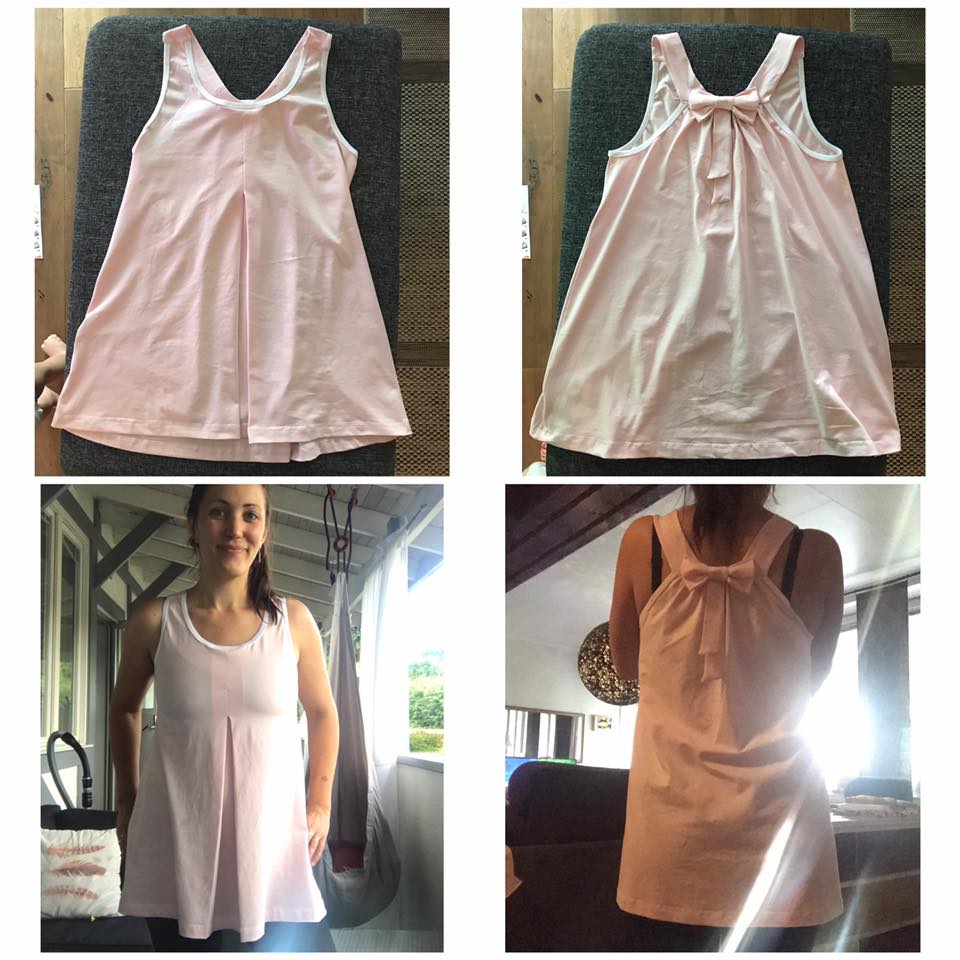 Man kan välja mellan att bandkanta halsringningen fram samt ärmhål eller att sy med infodring.