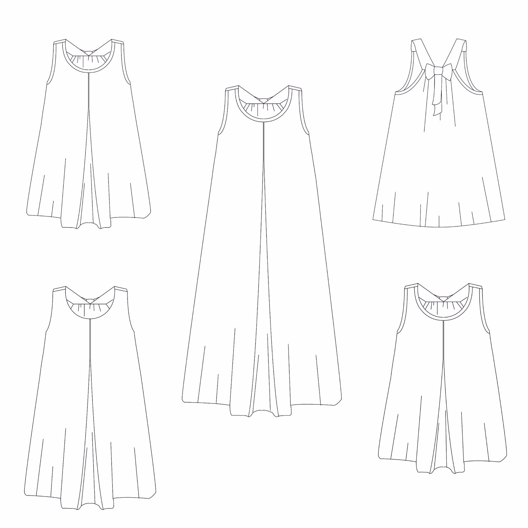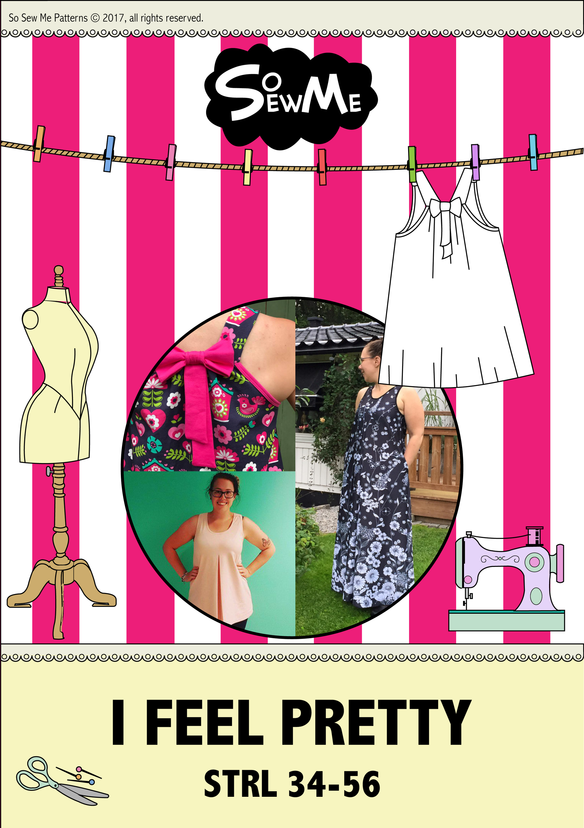 I Feel Pretty går att sy i 4 längder; Som ett vanligt linne, tunika, klänning strax ovanför knät samt som maxiklänning.