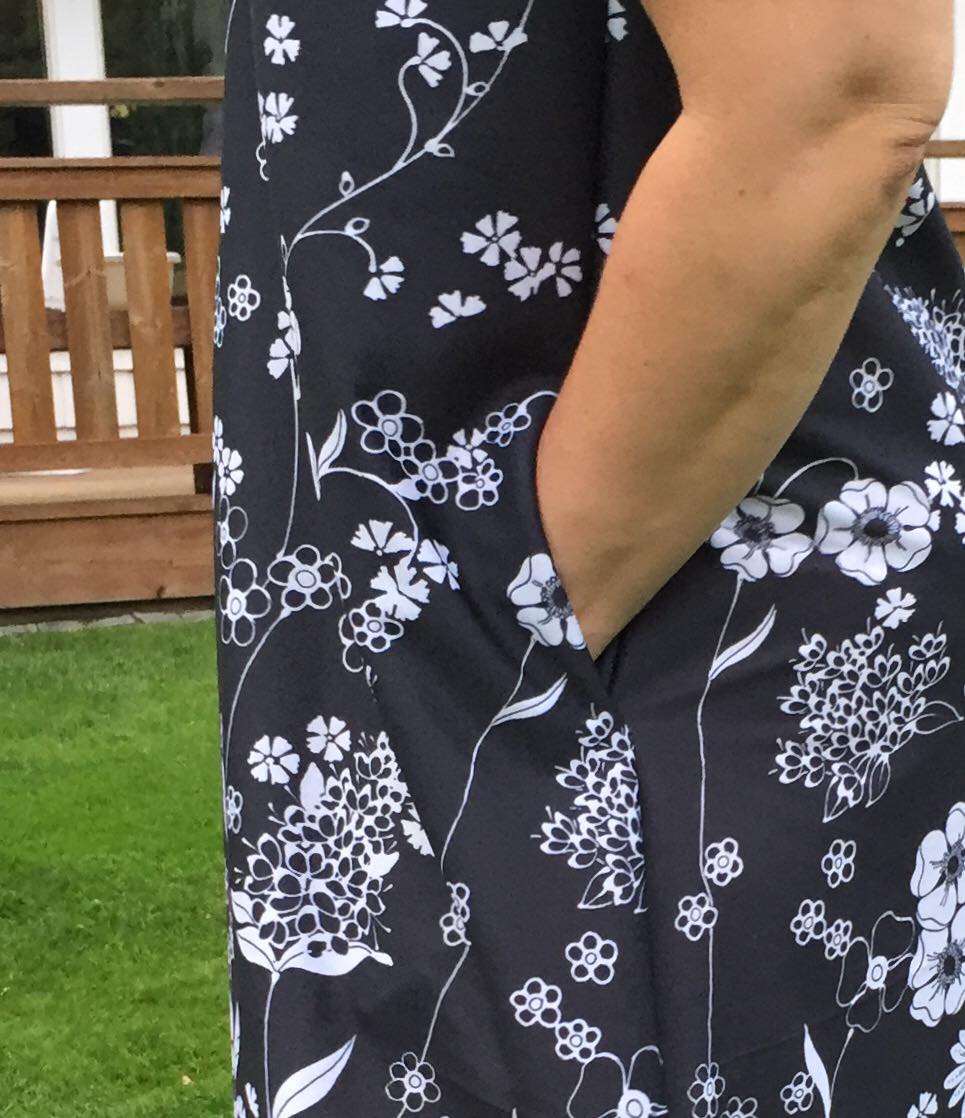 På Tunika- klännings och maximodellen kan man även välja att sy dolda sidofickor.
