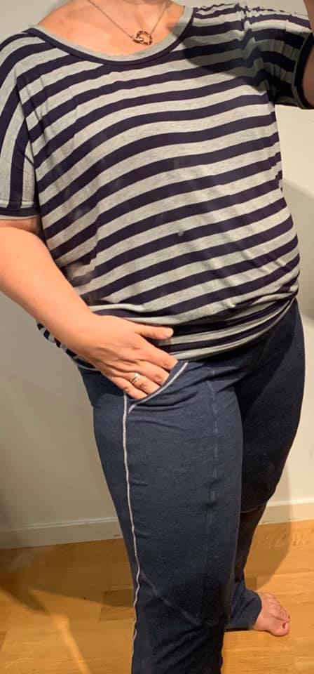 Material:Byxorna är tänkta att sys i trikå eller jogging/French Terry med god elasticitet (ca 50%), det är viktigt att det är bivägsstretch, dvs. att de stretchar även på höjden litegrann.