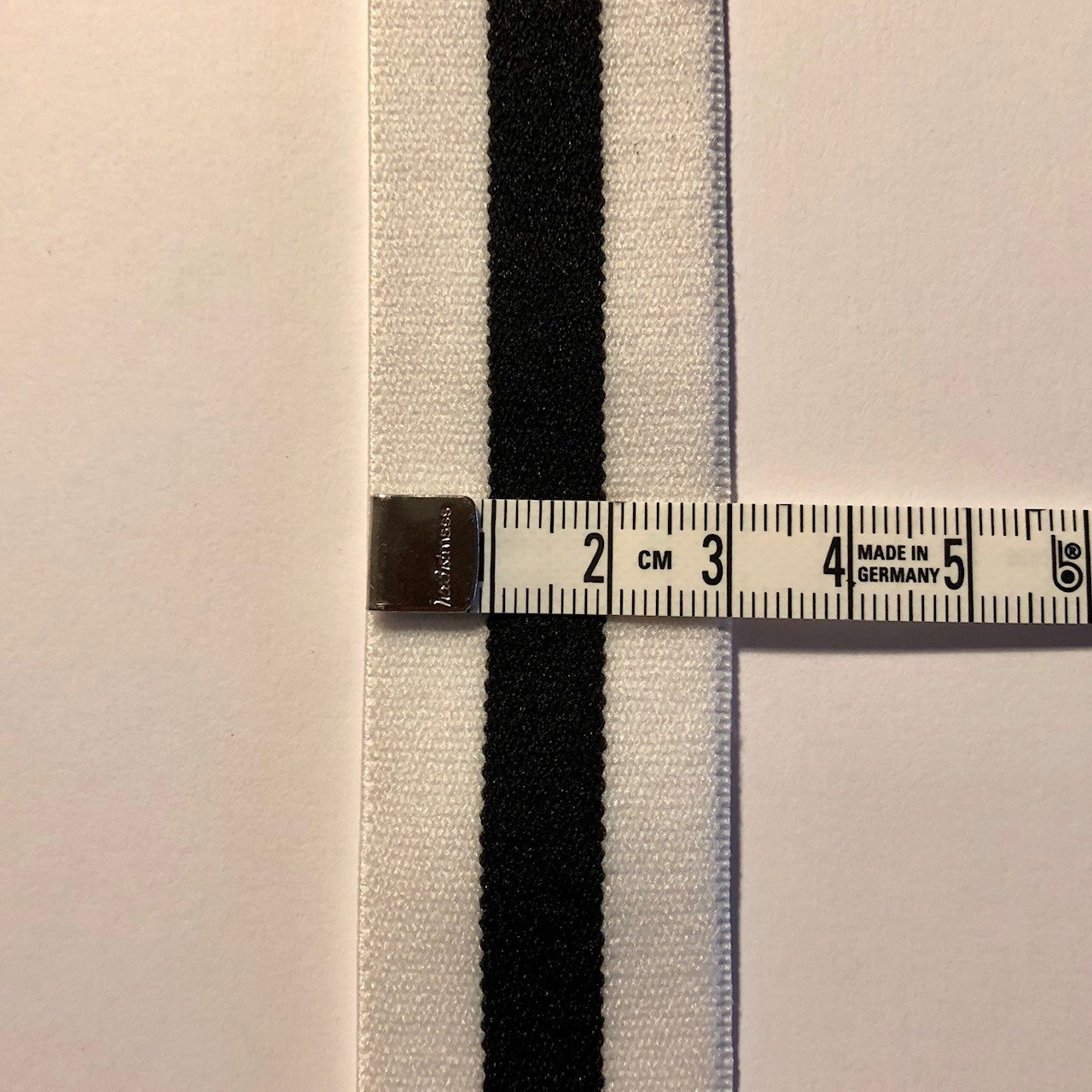 3 cm bred Jacquardresår som är en tjockare och mjukare form av vävt (samma mönster på båda sidor) resårband som används till kalsonger/trosor, sport-BH, hängslen, midjeresår osv.