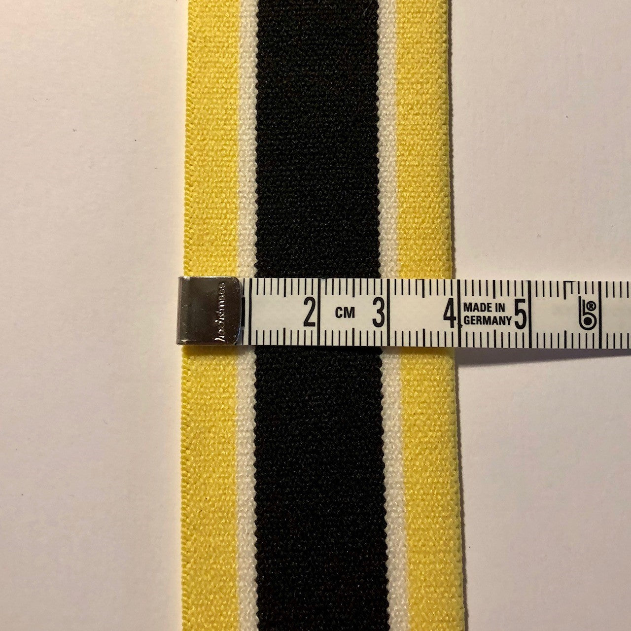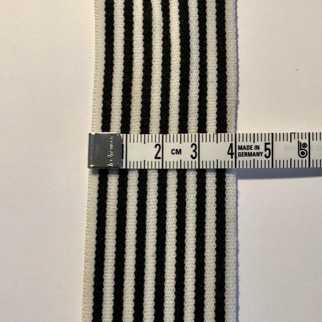 4 cm bred Jacquardresår som är en tjockare och mjukare form av vävt (samma mönster på båda sidor) resårband som används till kalsonger/trosor, sport-BH, hängslen, midjeresår osv.