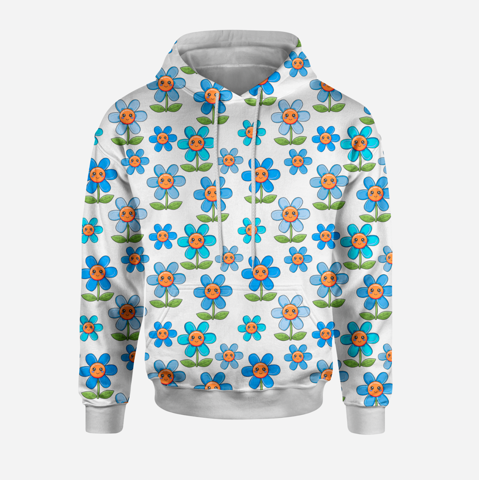 Kawaii Flowers Blue White TRYCKS PÅ BESTÄLLNING