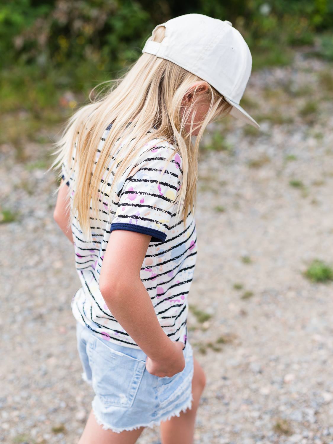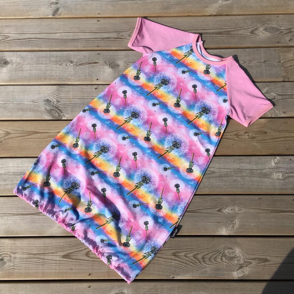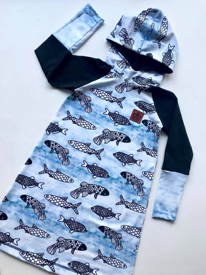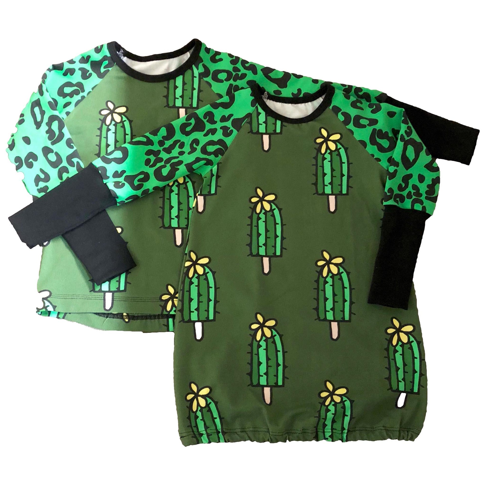 Little League är en tröja/klänning med raglanärm som kan sys med mängder av variationer; Halsringningen kan man välja att kanta, pryda med luva eller med polokrage. Ärmarna kan sys korta, 3/4-långa eller 3/4 tillsammans med långa muddar, ärmen blir då hellång. Tröjlängden sys med svängd nederkant på bakstycket, och antingen rak eller svängd nederkant fram. Klänningen är knälång och kan användas a-linjeformad med fåll nedtill eller med en resårkanal med smal resår för lite ballongeffekt. På klänningen finns även möjlighet att sy fickor i en snygg och stilren utanpåmodell.