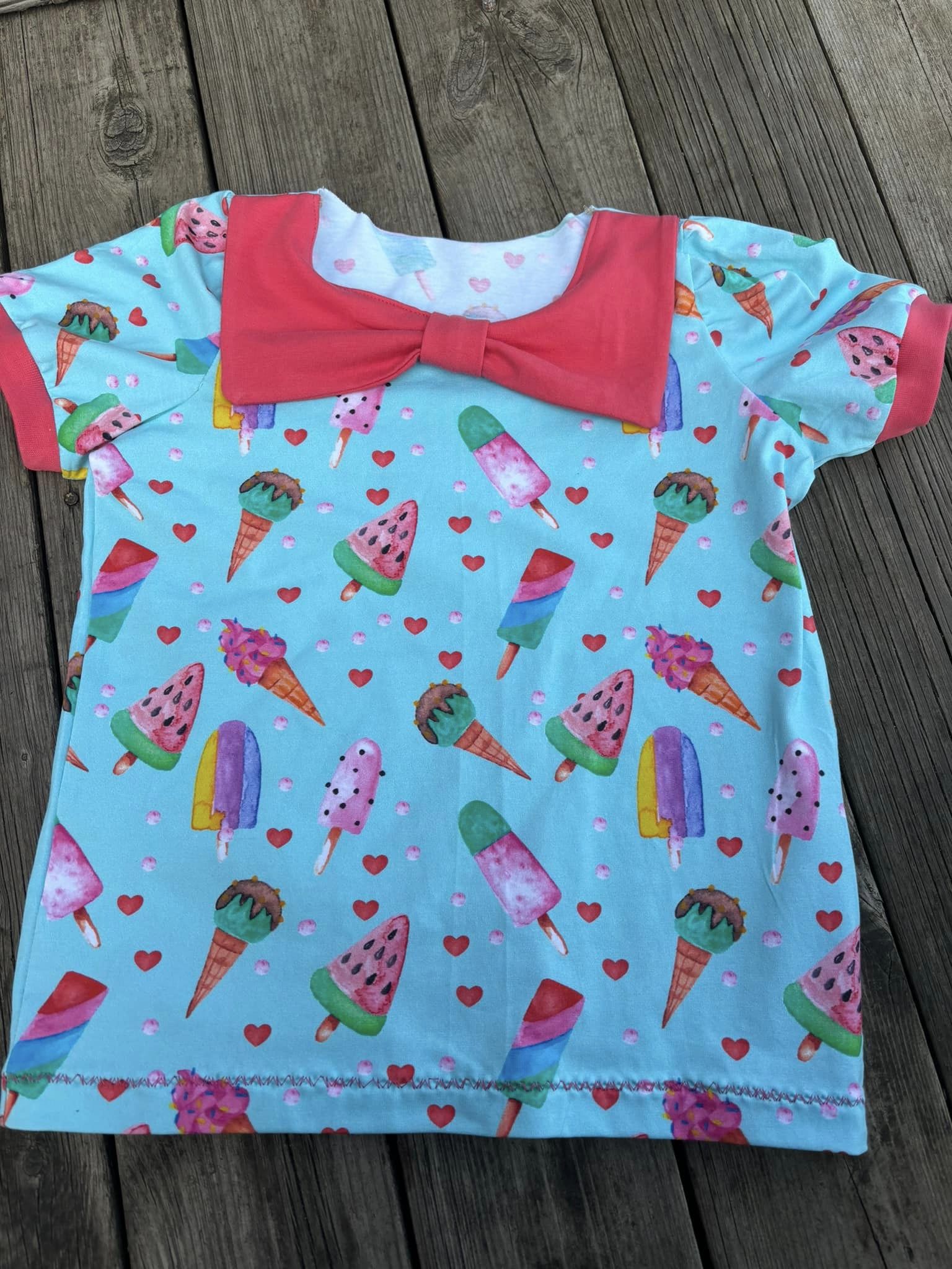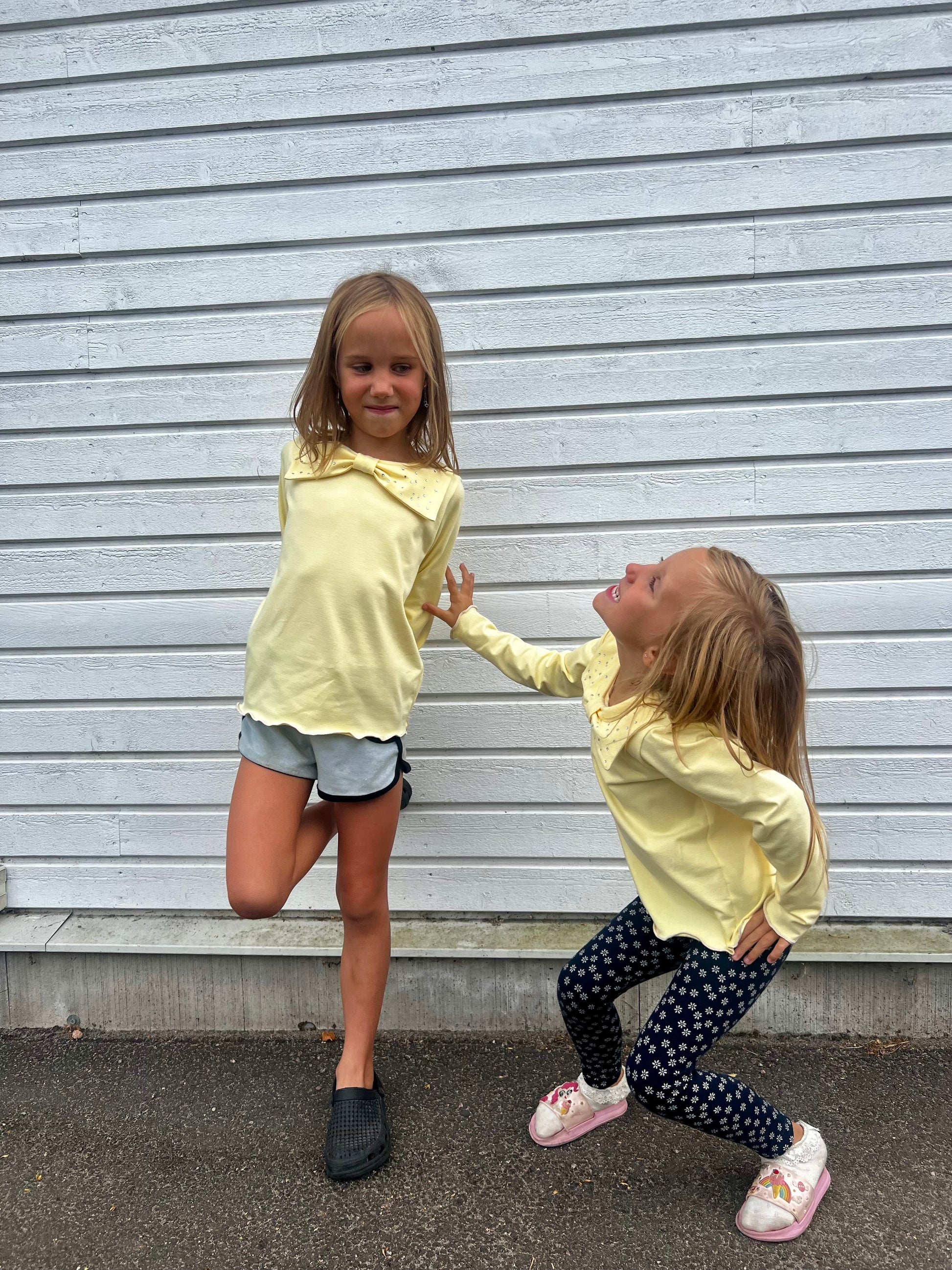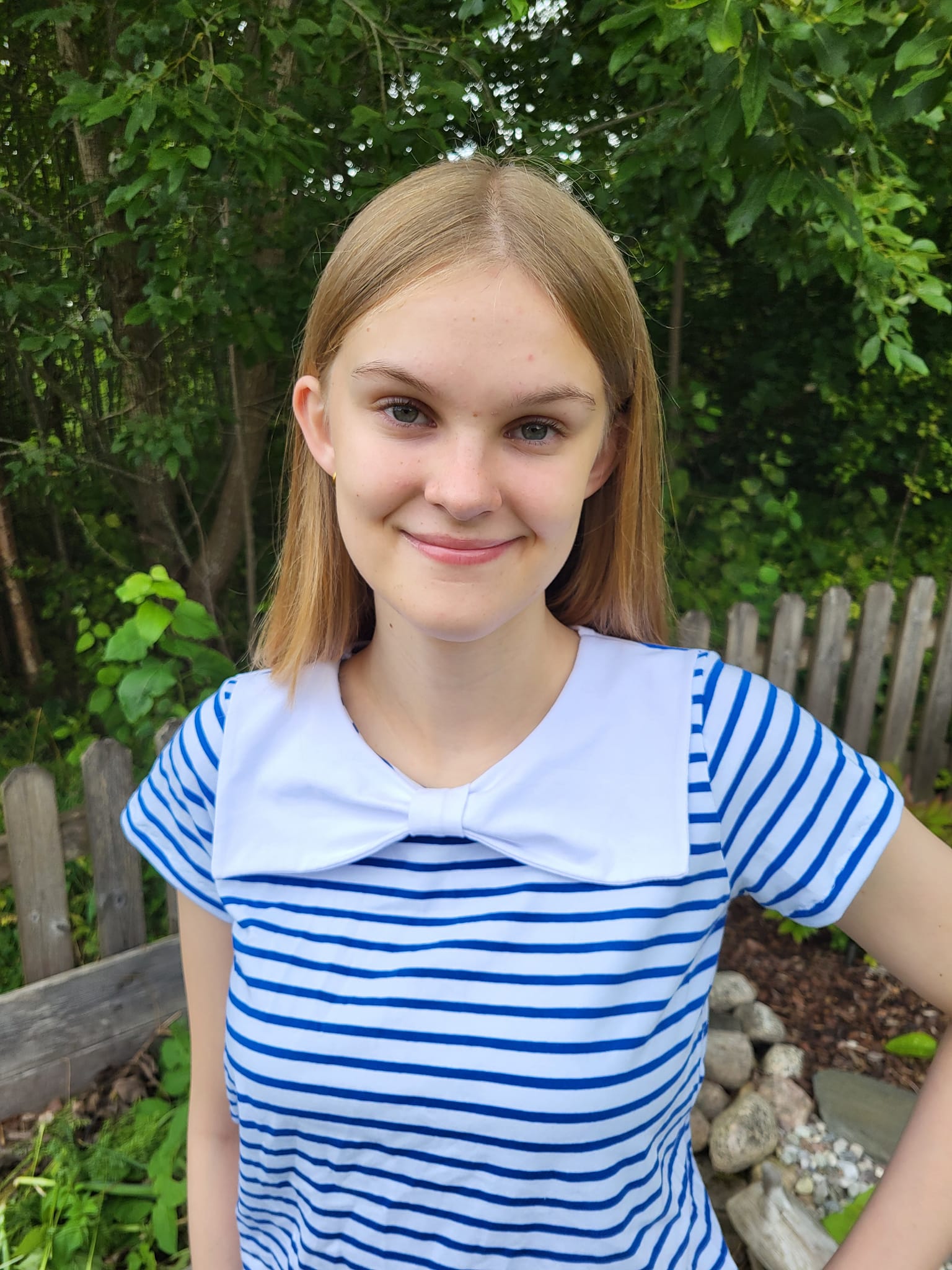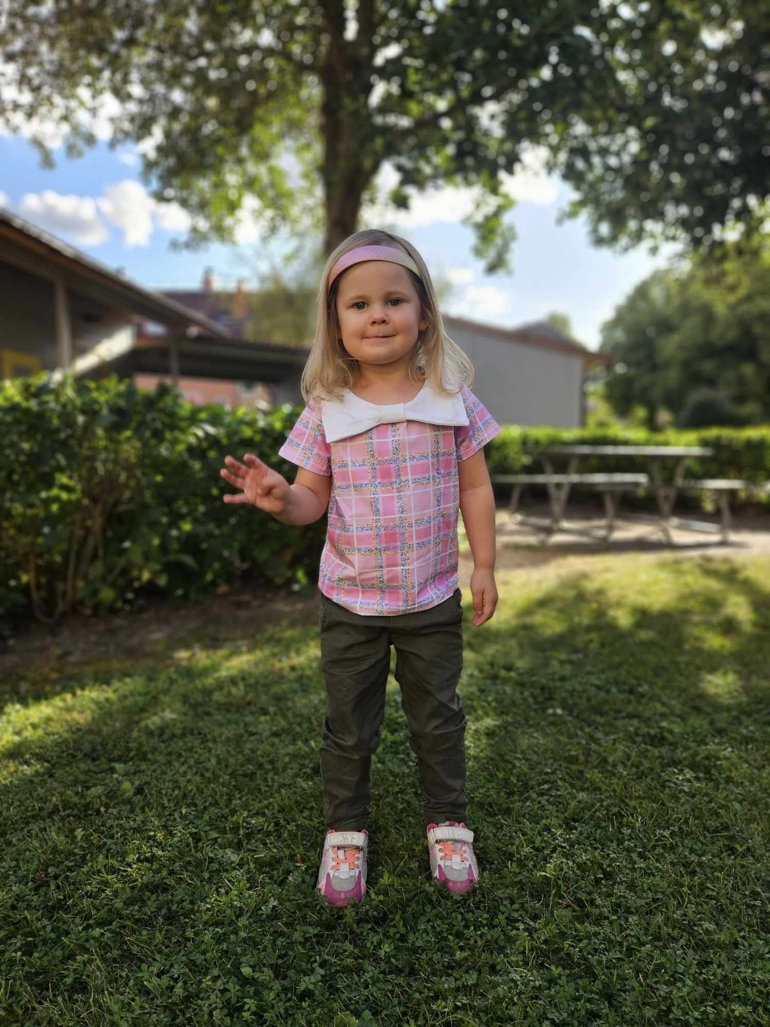 Little Sailor är en supersöt topp som kan sys både med en piffig krage/ok som liknar en rosett eller med halsmudd, vilket gör modellen till ett ypperligt allroundmönster. Båda varianterna kan sys med både lång och kort vanlig ärm och puffärm och har en rak passform.