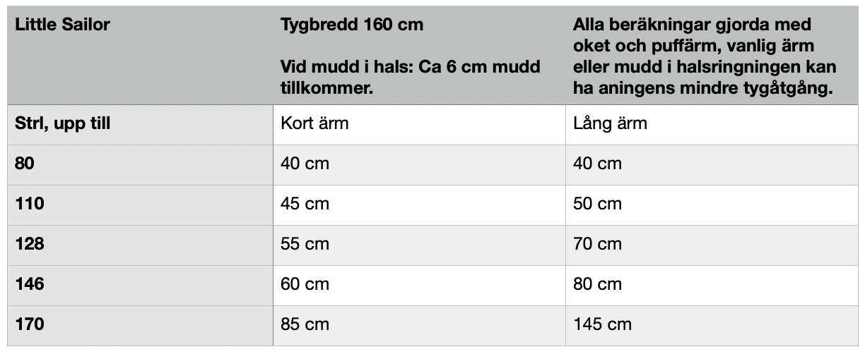 Se sista bilderna för tygåtgång (finns även i sömnadsbeskrivningen efter köp).