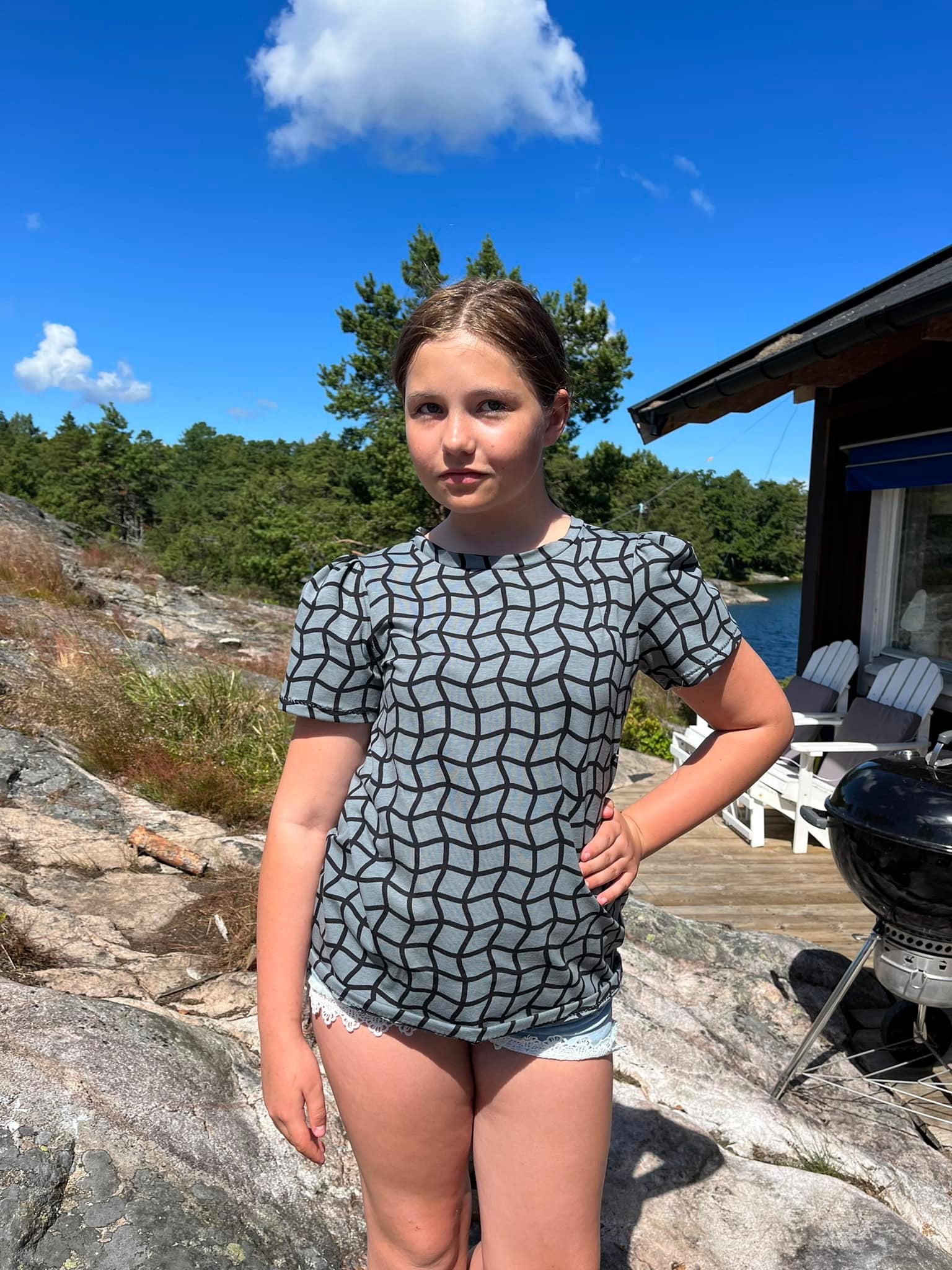 LouEASY Tee & Dress, som kom till efter en idé av Louise Wåhlin, är ett mångsidigt mönster som passar alla barn i familjen. Det går att variera på mängder av olika sätt; som t-shirt med rak eller utställd passform, som klänning med volang, och med både vanlig ärm och puffärm som går att sy både långa och korta finns det något som passar de flesta projekt. Halsringningen kan både kantas med kantband eller muddas. Den är dessutom enkel och snabbsydd.