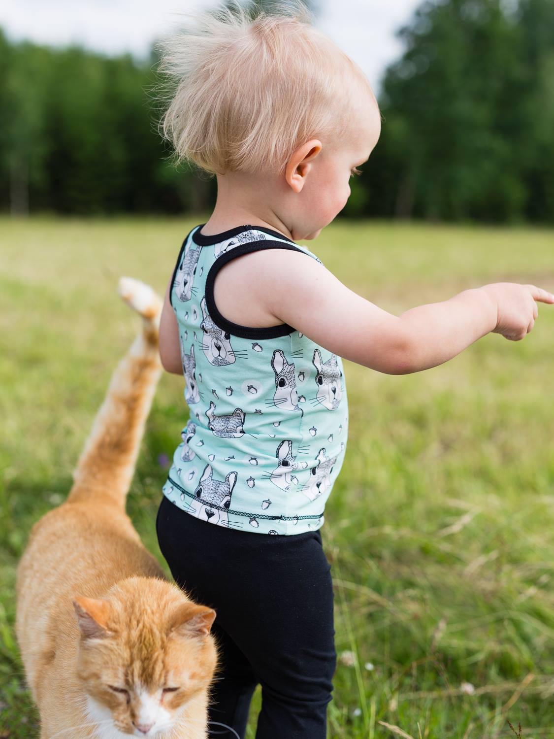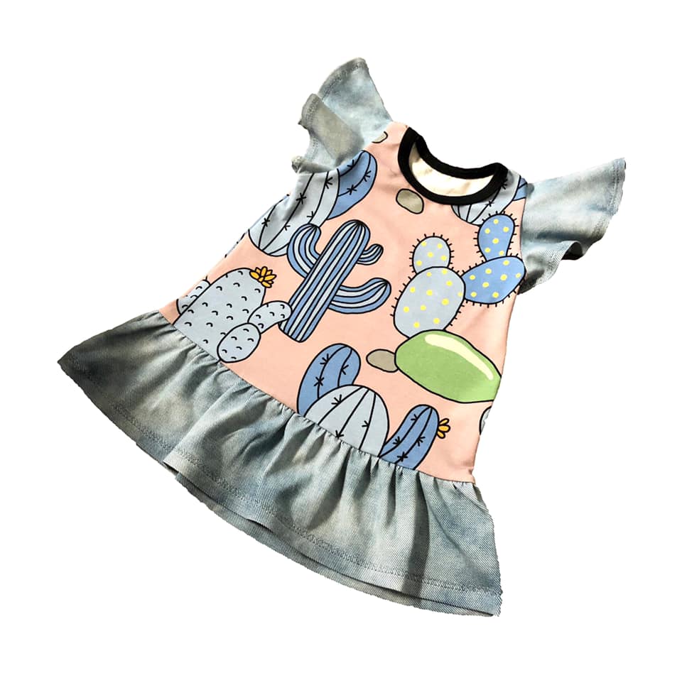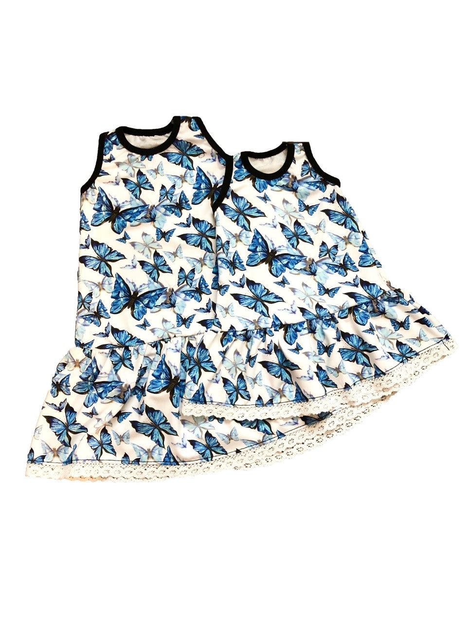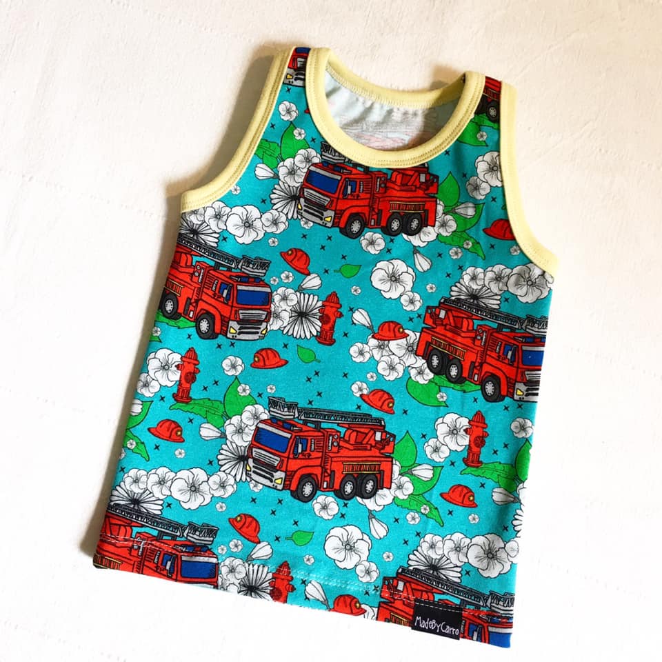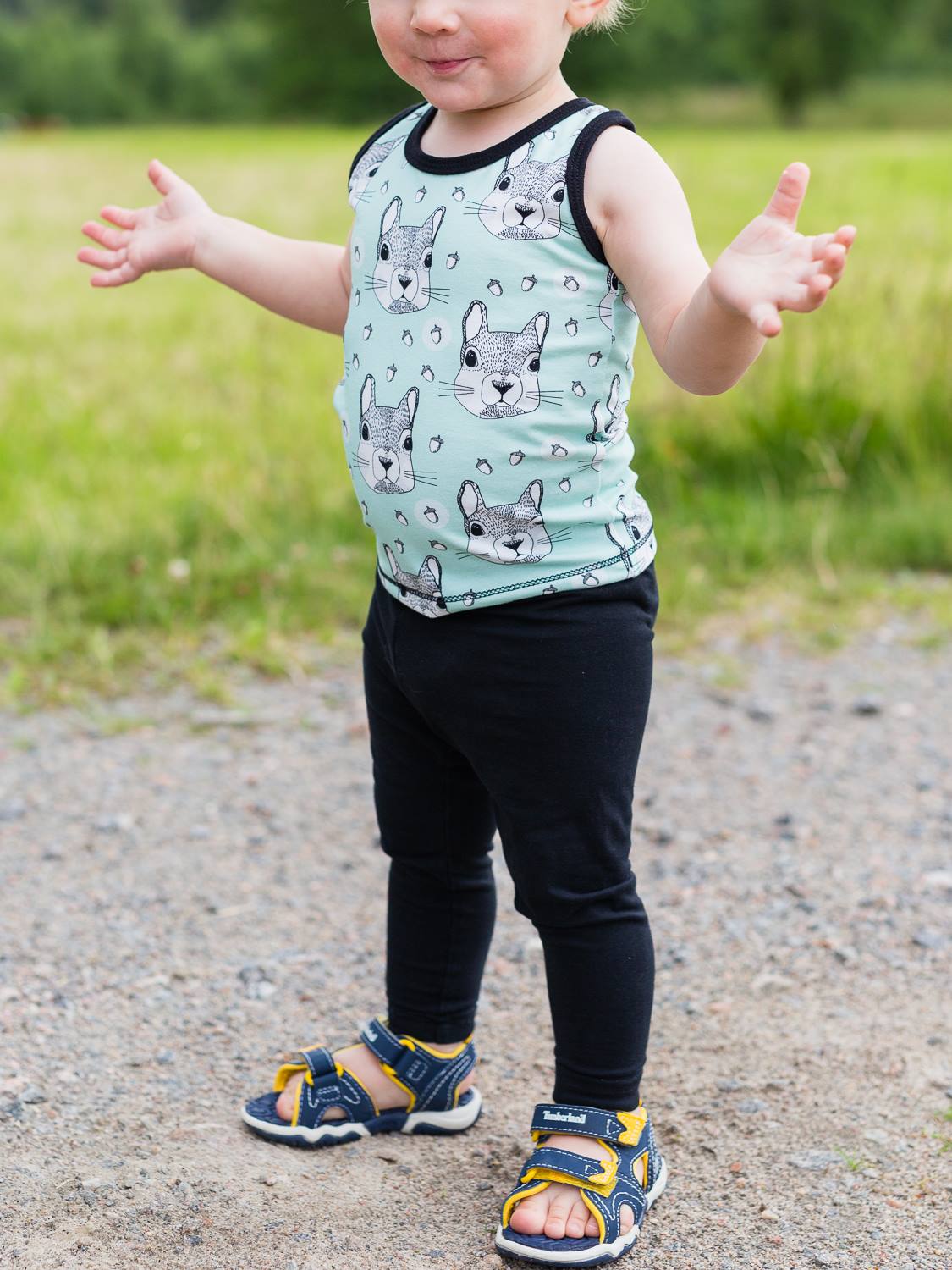 Material: Modellen är tänkt att sys i trikå med kantband av mudd eller interlock. Volangen och fjärilsärmen fungerar även i vävda tunnare tyger såsom viscose eller muslin.