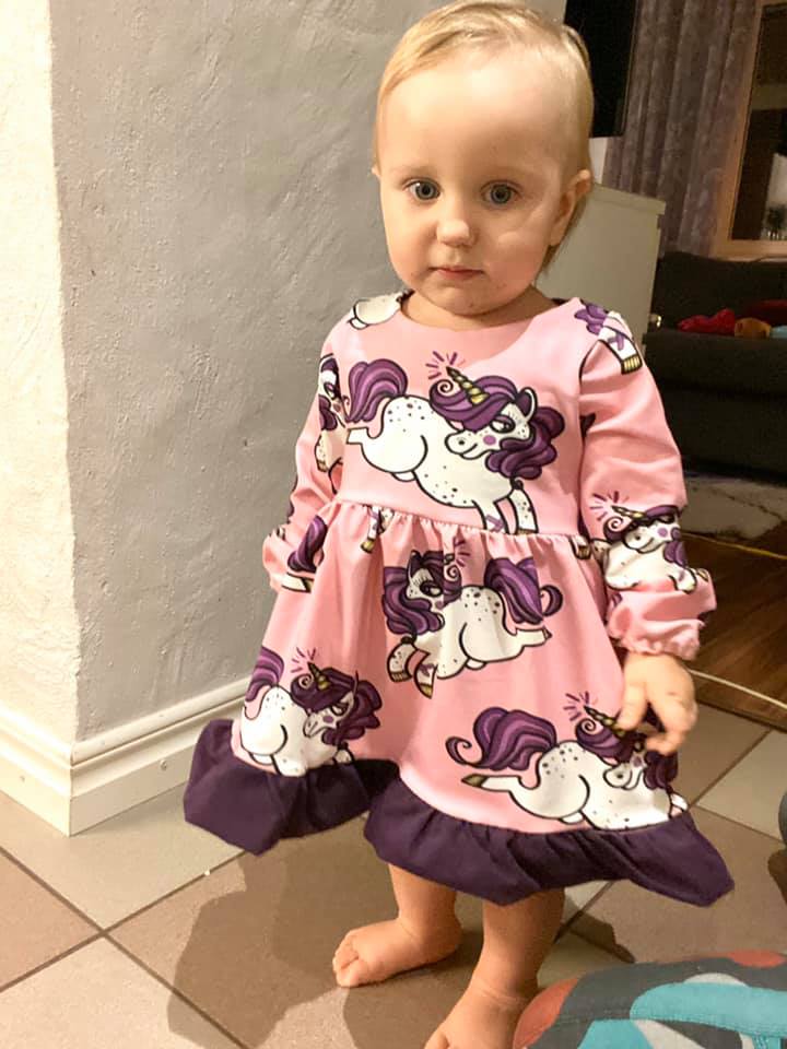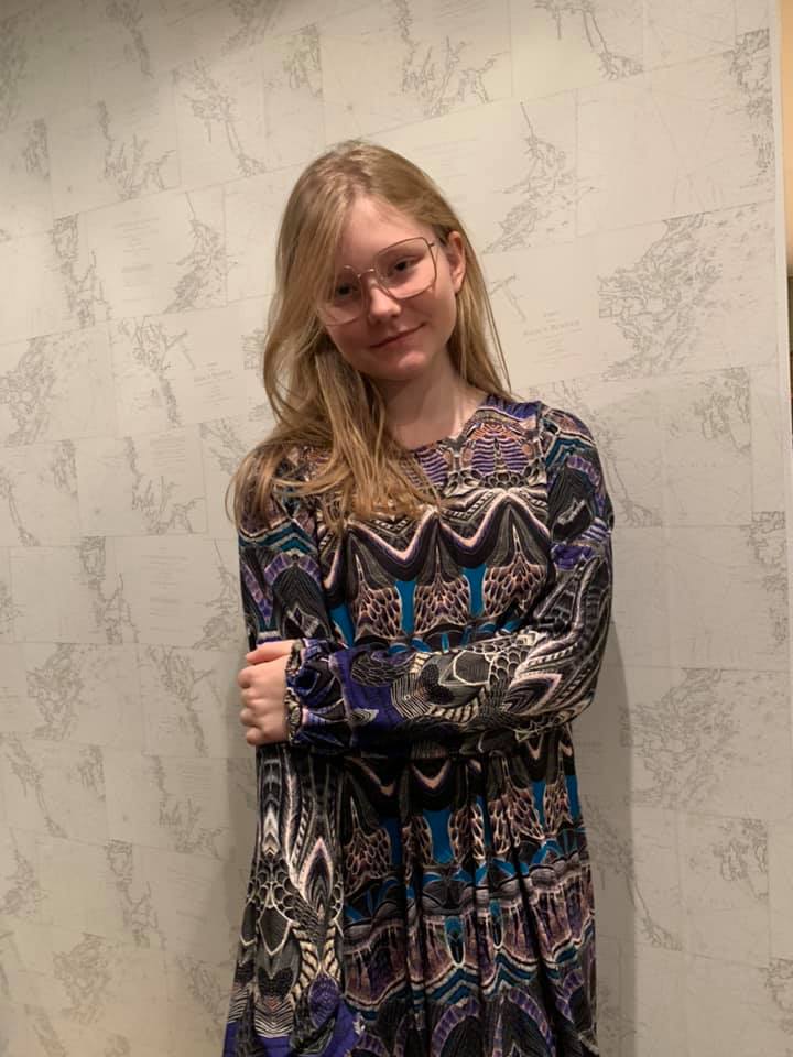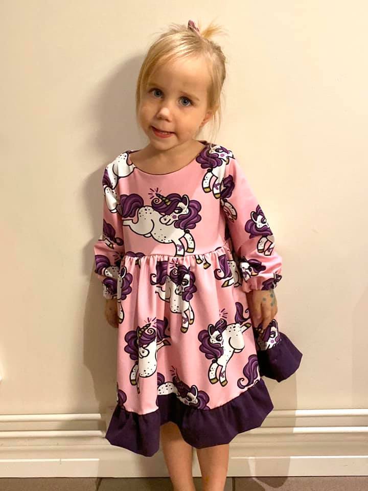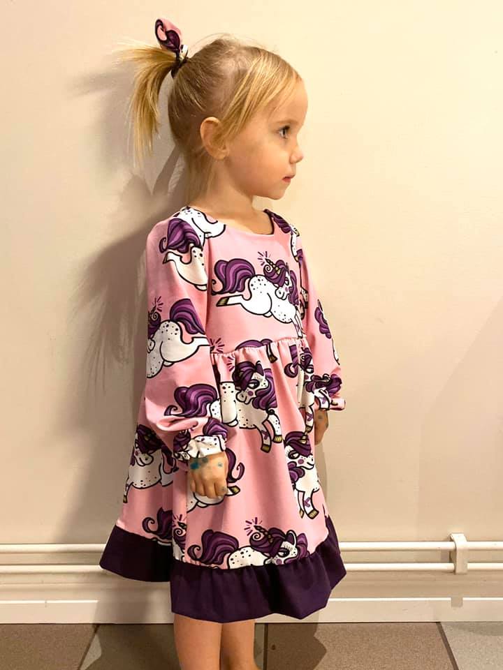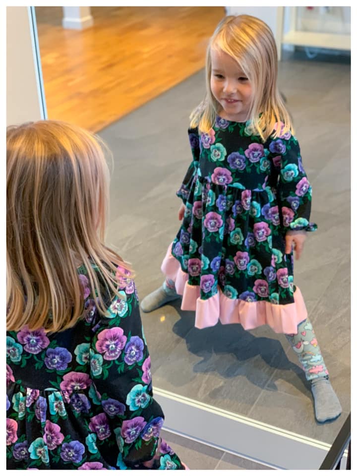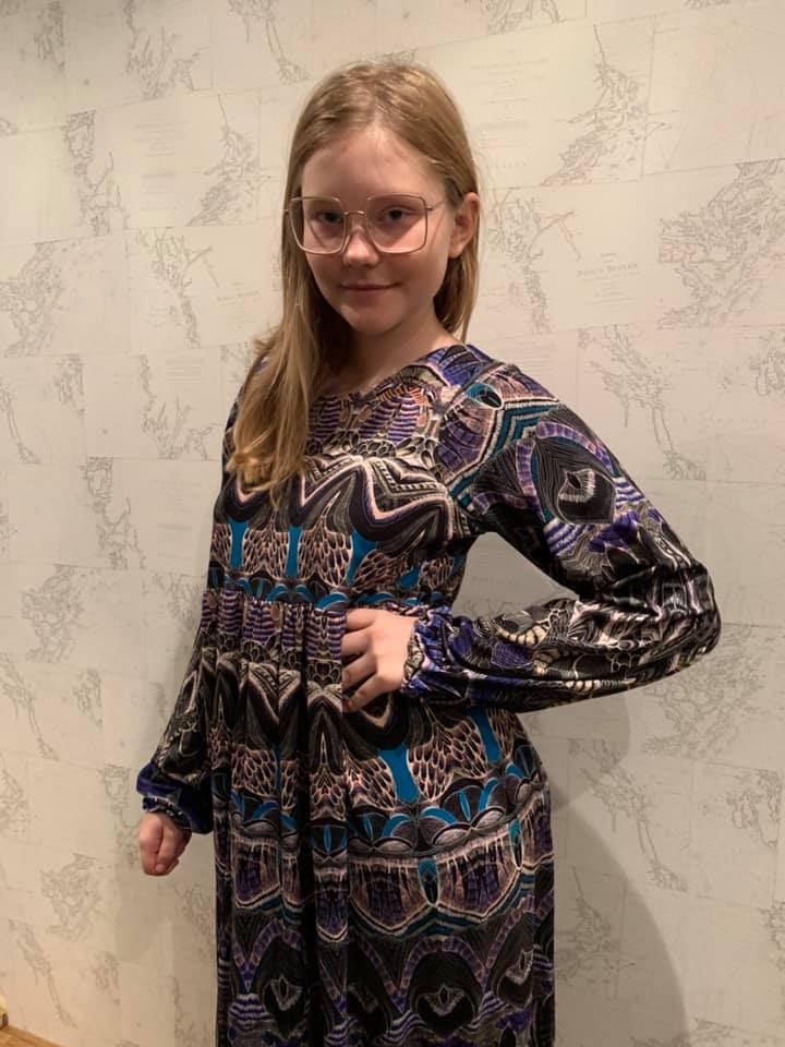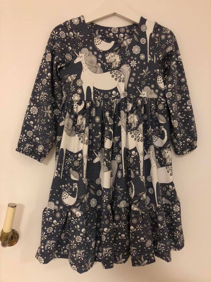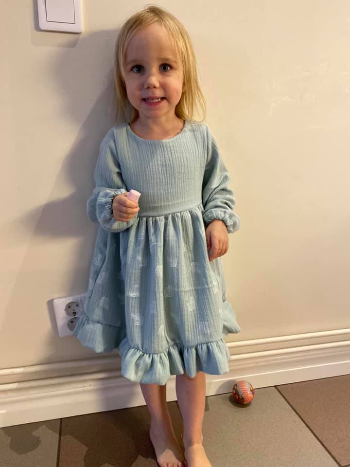 Till detta mönster medföljer tabeller med mått på kjoldelar och volangdelar, därför räcker det med att skriva ut 4 + 4 sidor för att börja sy, se sömnadsbeskrivningen för vidare info.