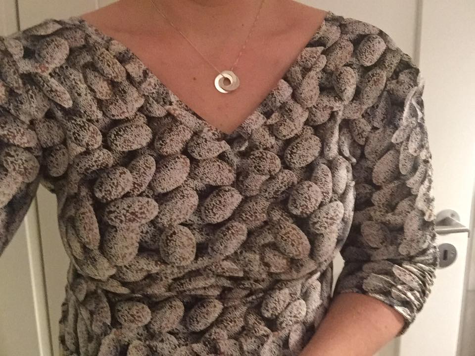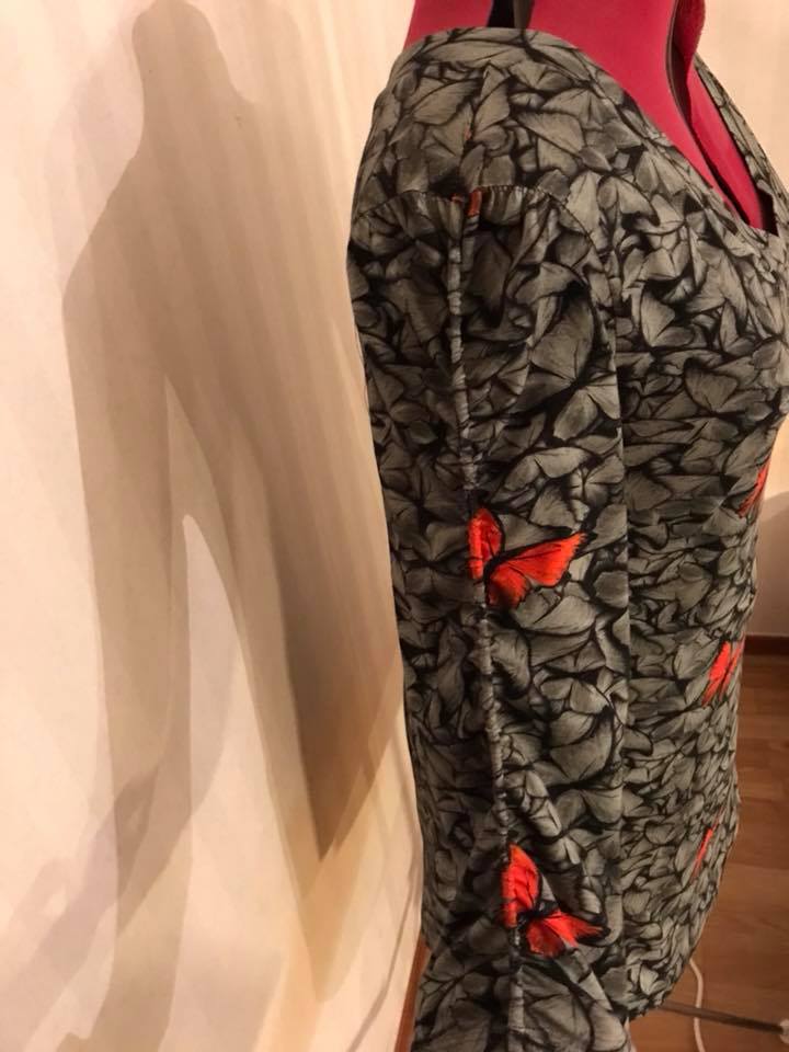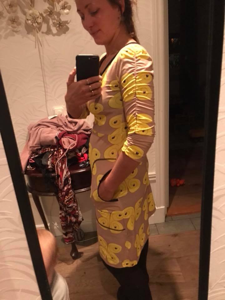 Material: Power Sleeve Dress är tänkt att sys i trikå/jersey, men har under provsömnaden sytts i andra tunnare elastiska modetyger med framgång.