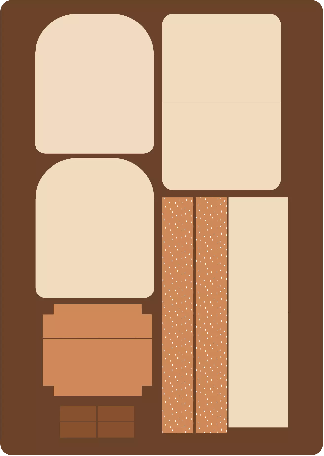 Utöver panelerna behövs blixtlås 45 cm och 15 cm samt 2 st "backpack buckles" (se produktbilderna.
