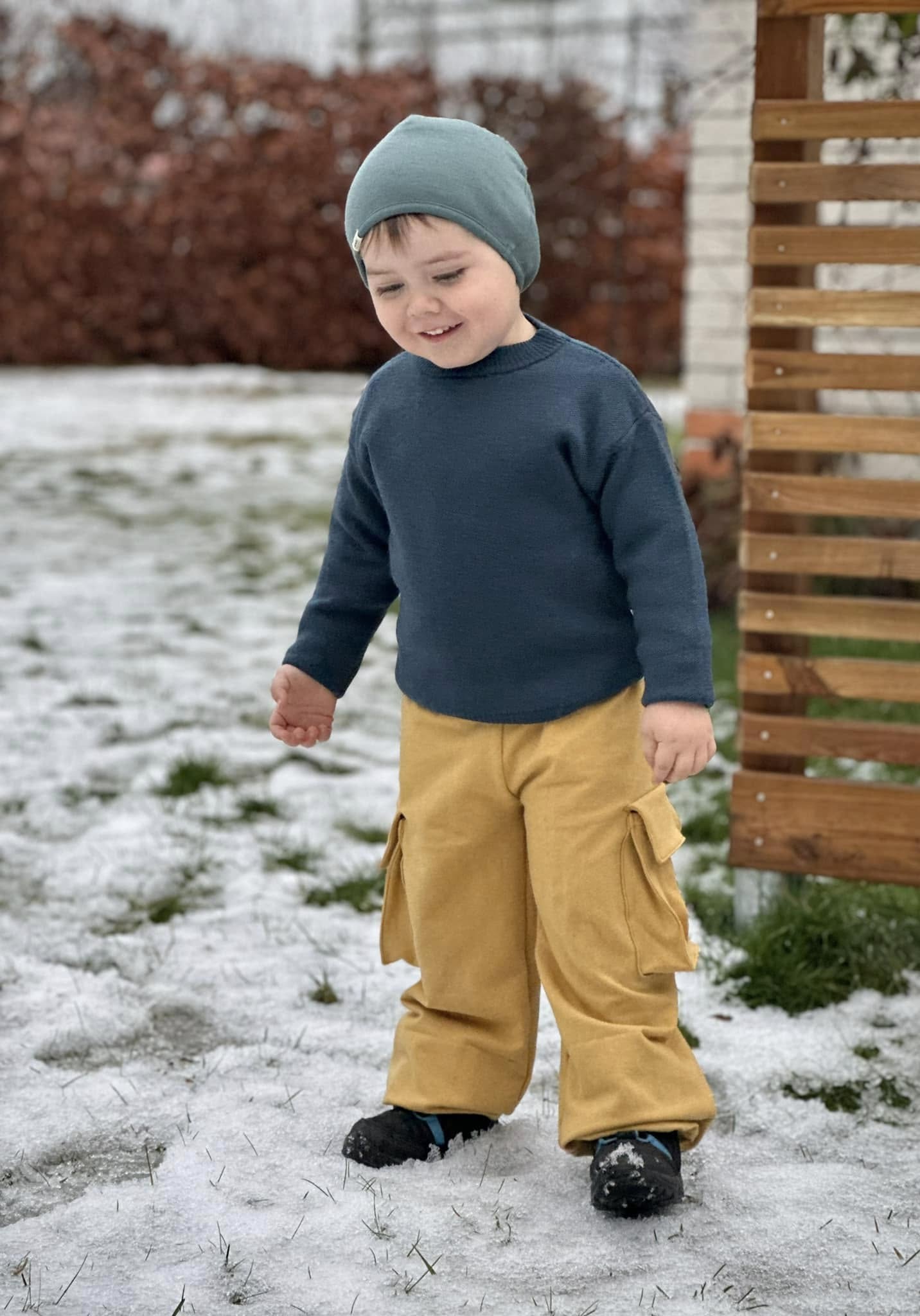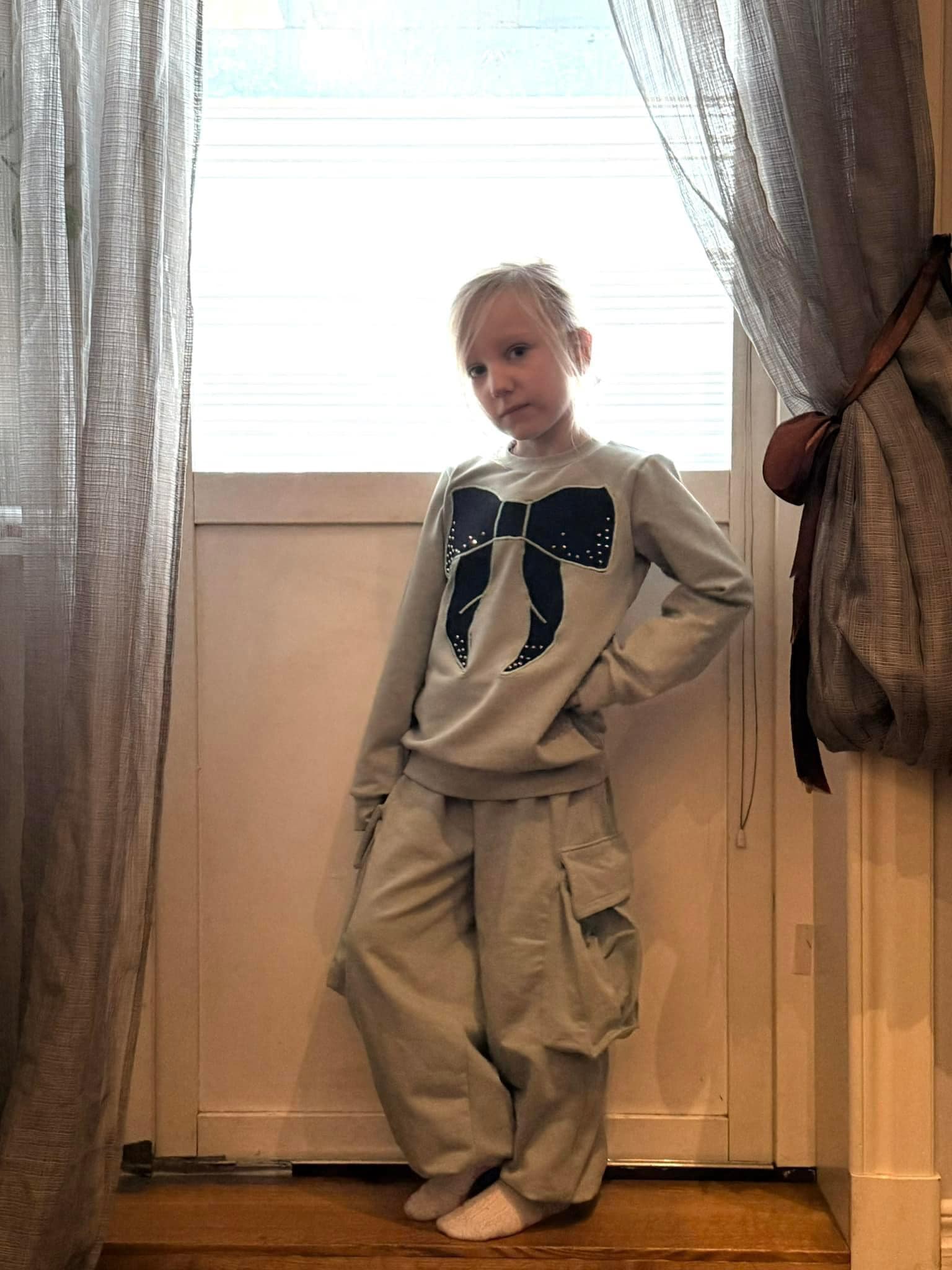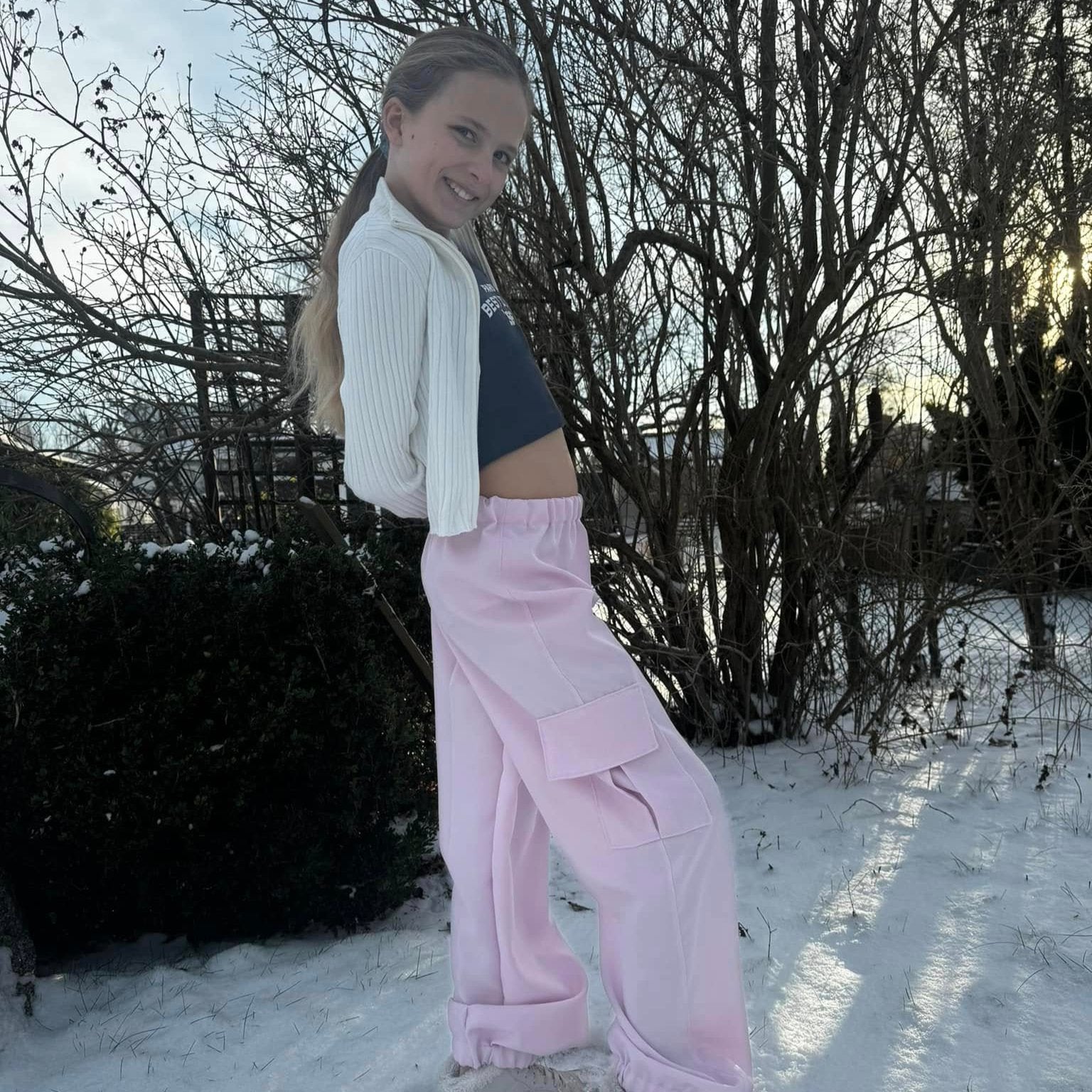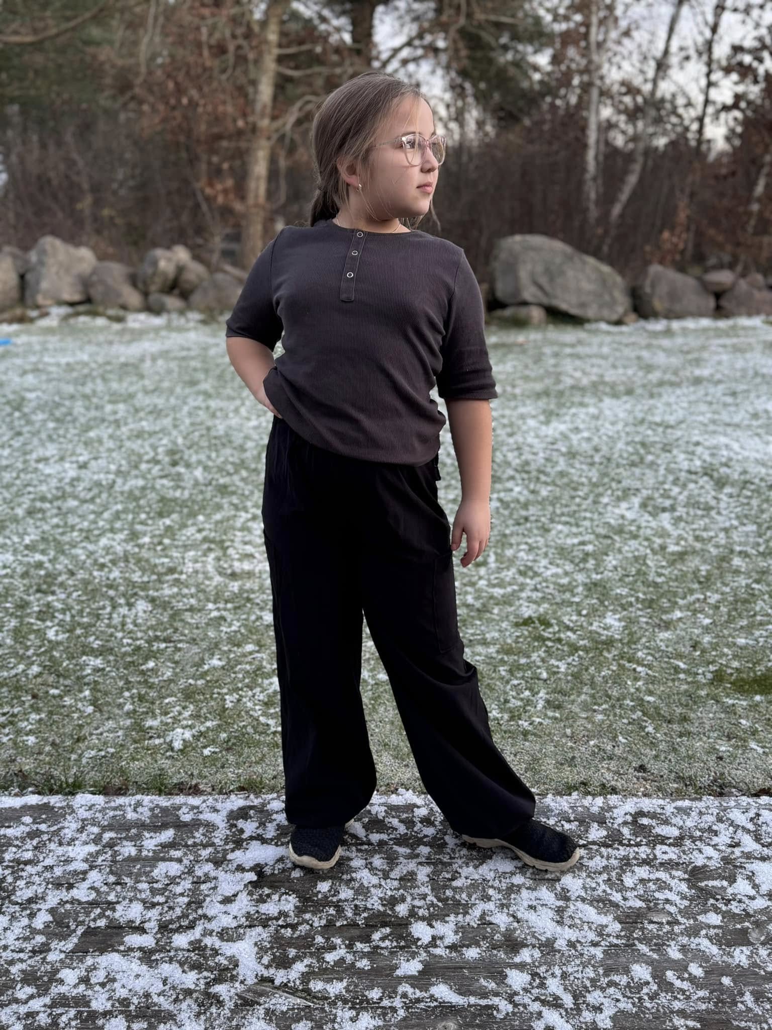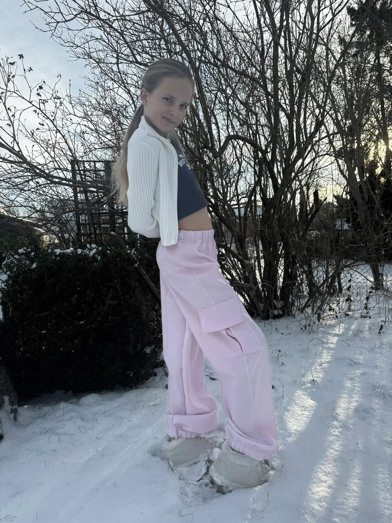 Material och tillklippning: Byxorna sys i vävda relativt följsamma tyger, exempelvis twill, bomullscanvas, linnetyg eller liknande, men kan också sys i college/french terry.