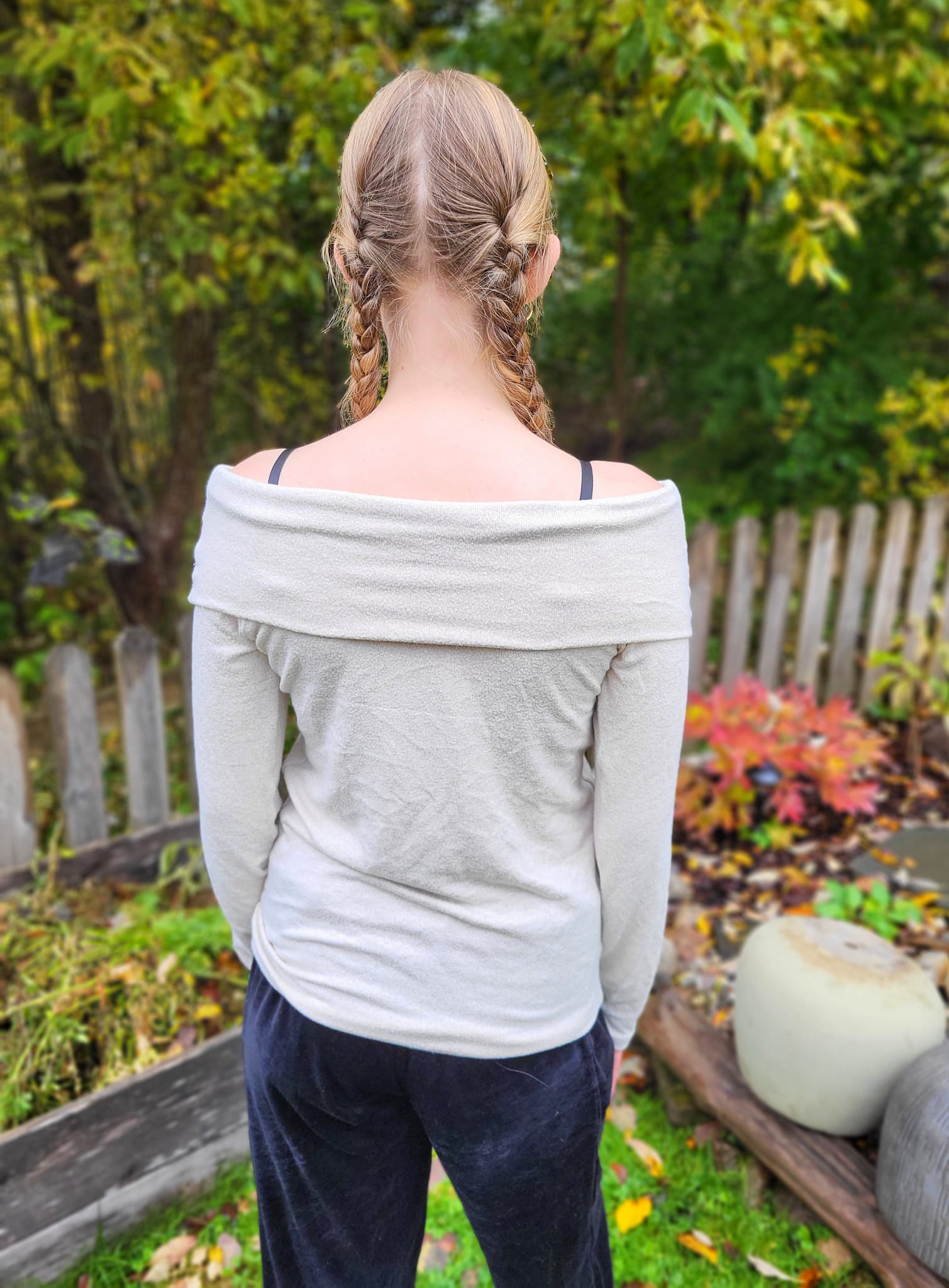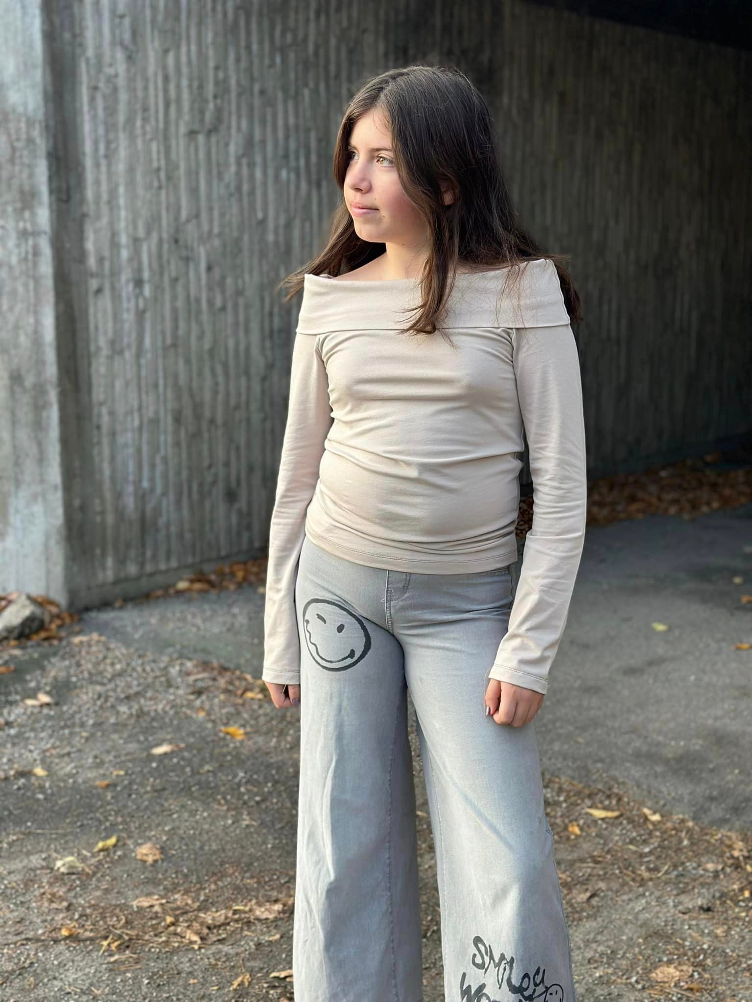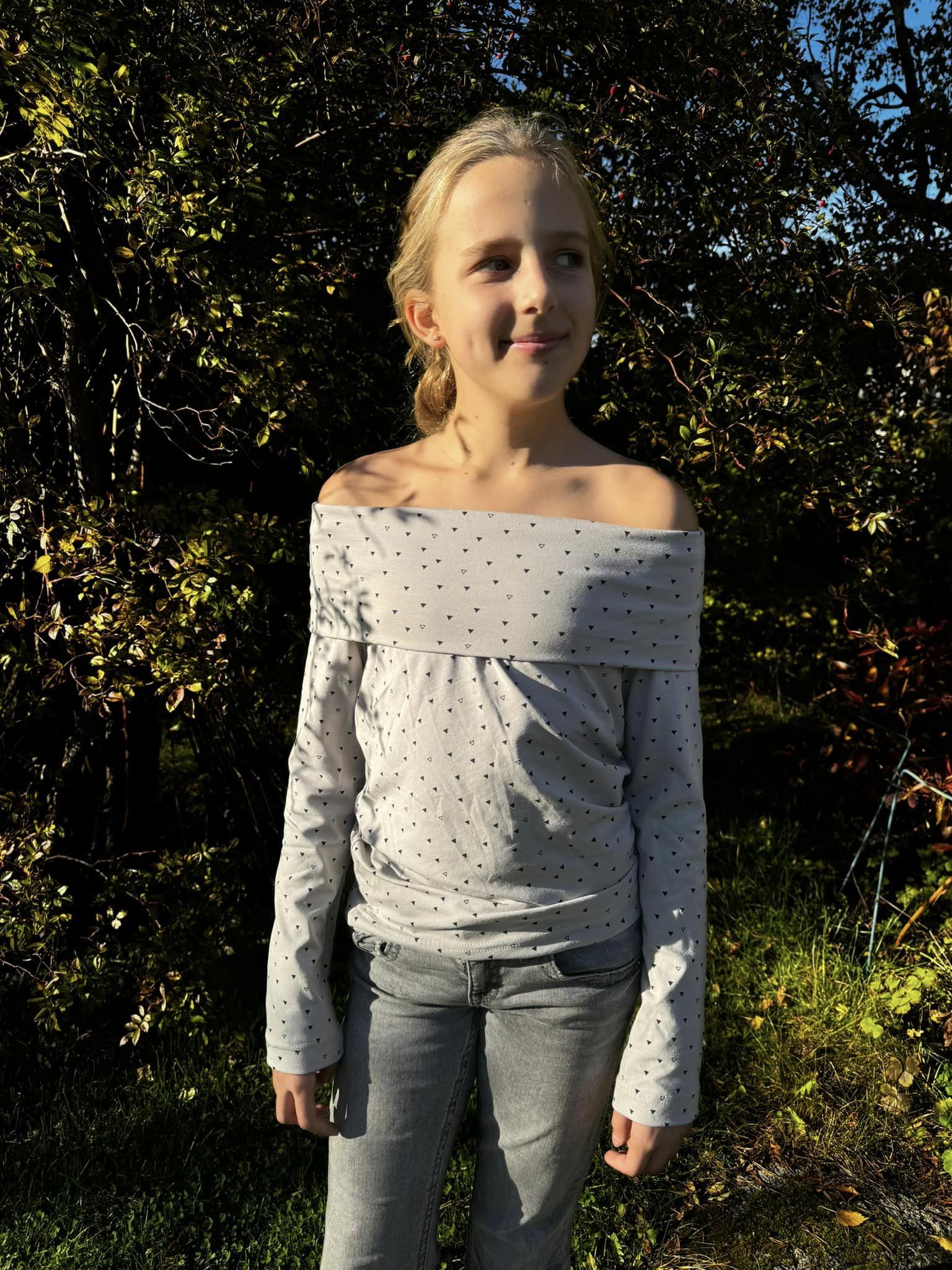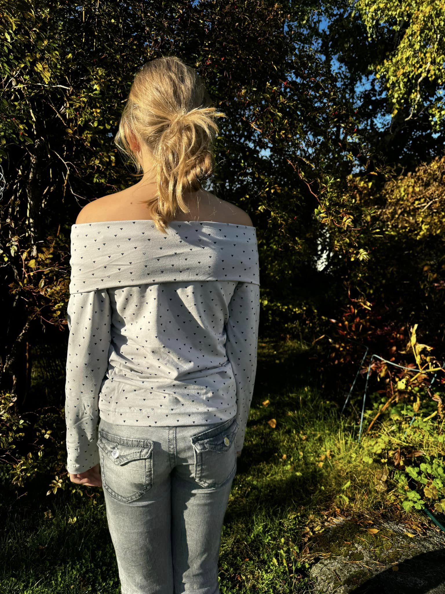 Material och tillklippning: Toppen sys i jersey eller mjuk french terry.