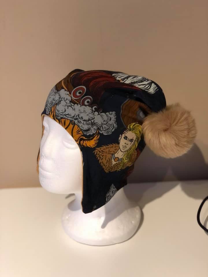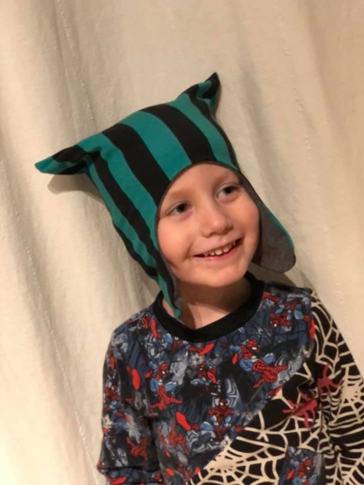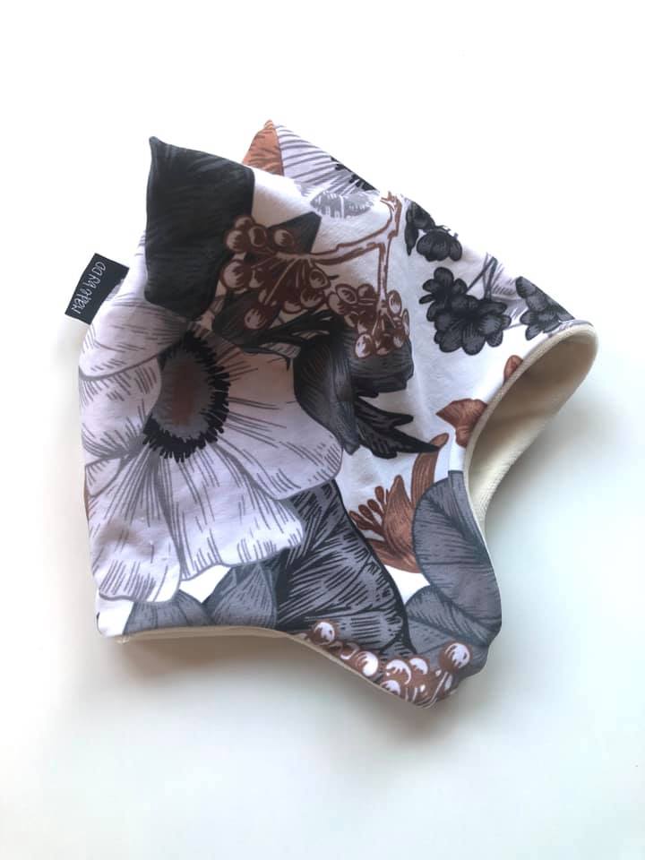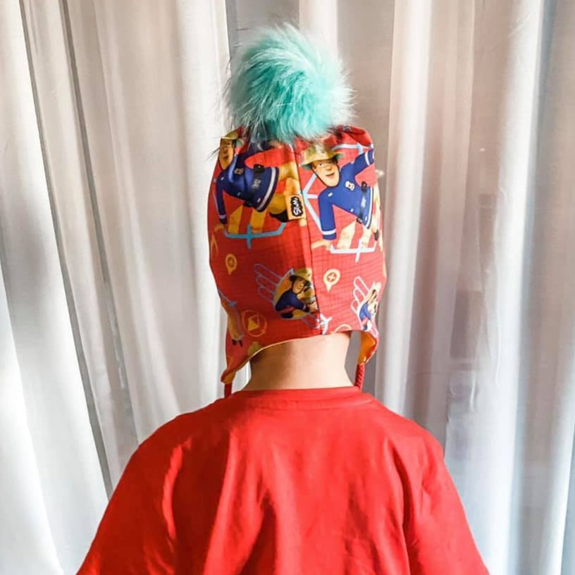 Material och tillklippning: Mössan är ritad för att sys och fodras med trikå eller motsvarande tjocklek, önskar ni fodra med fleece eller till exempel stretchig teddy rekommenderas det att gå upp en strl. Som knytband används färdig snodd eller lite mudd som klipps i remsor.
