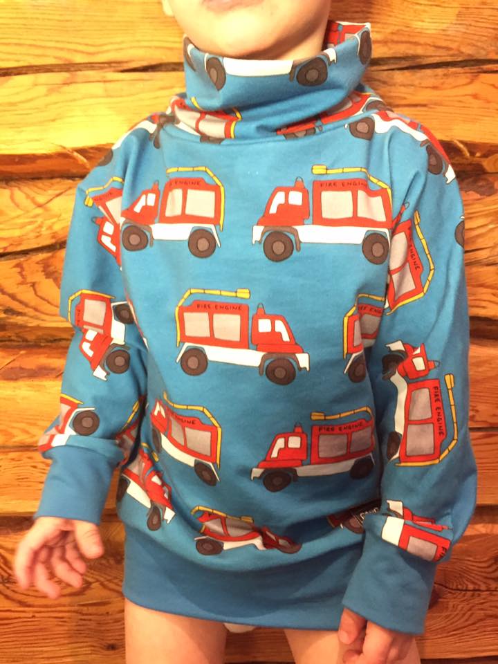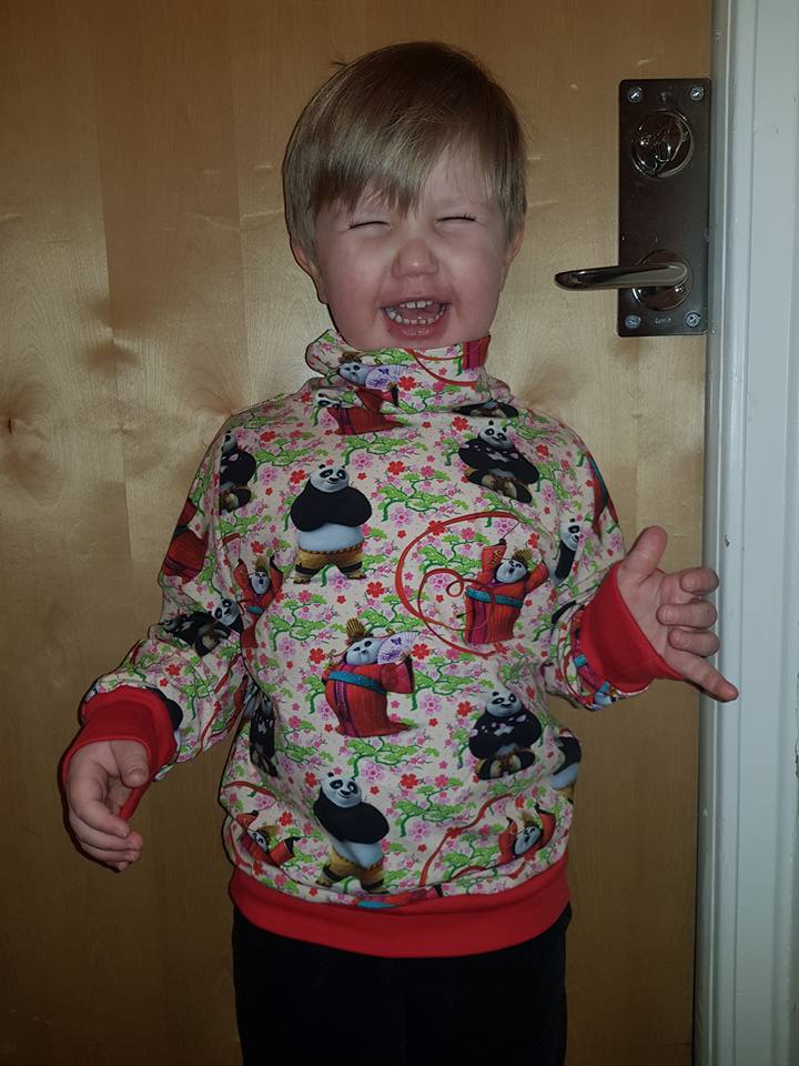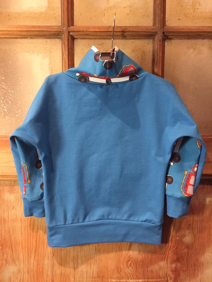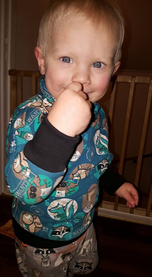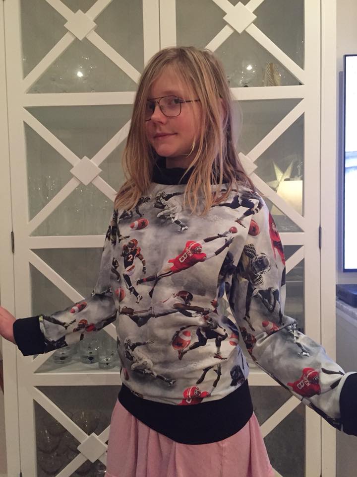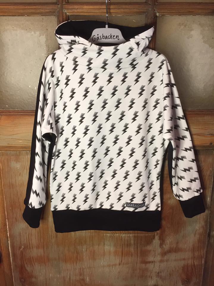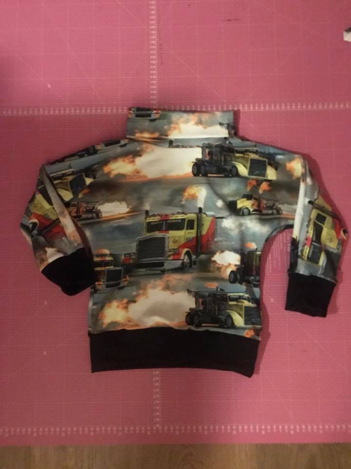 Material: Tröjan är designad för att sys i trikå med ev mudd i ärmslut och höftdel, men fungerar även fint att sys i tunnare jogging/sweatshirttyg.
