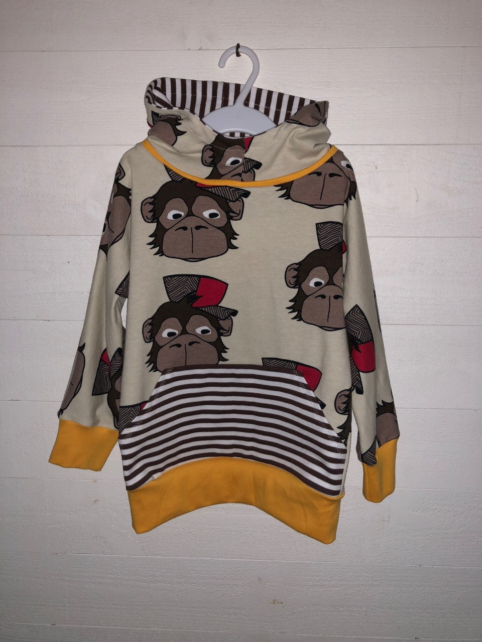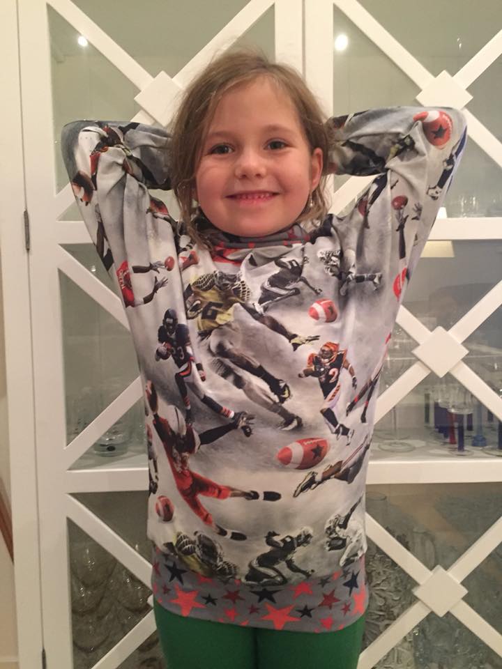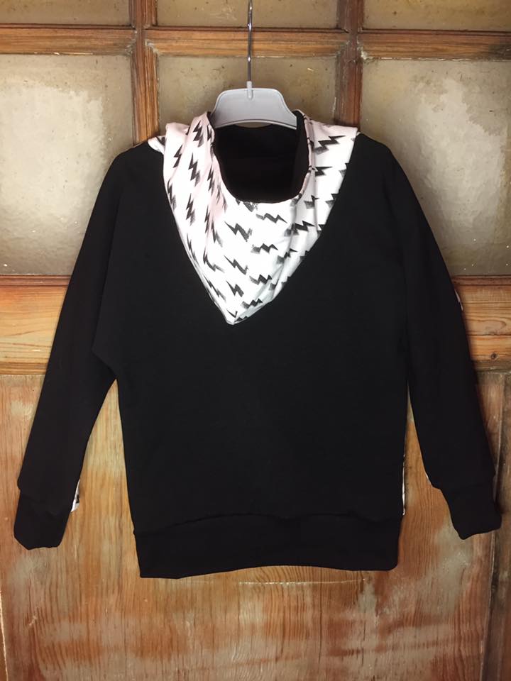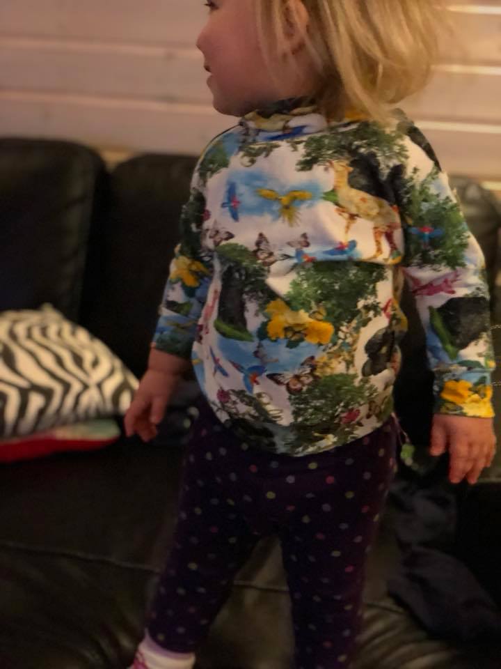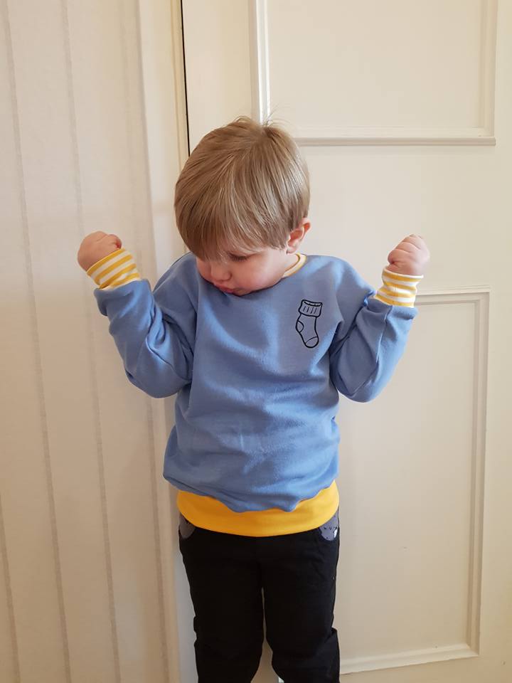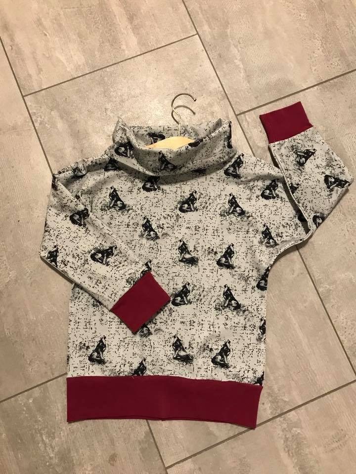 Material: Tröjan är designad för att sys i trikå med ev mudd i ärmslut och höftdel, men fungerar även fint att sys i tunnare jogging/sweatshirttyg.