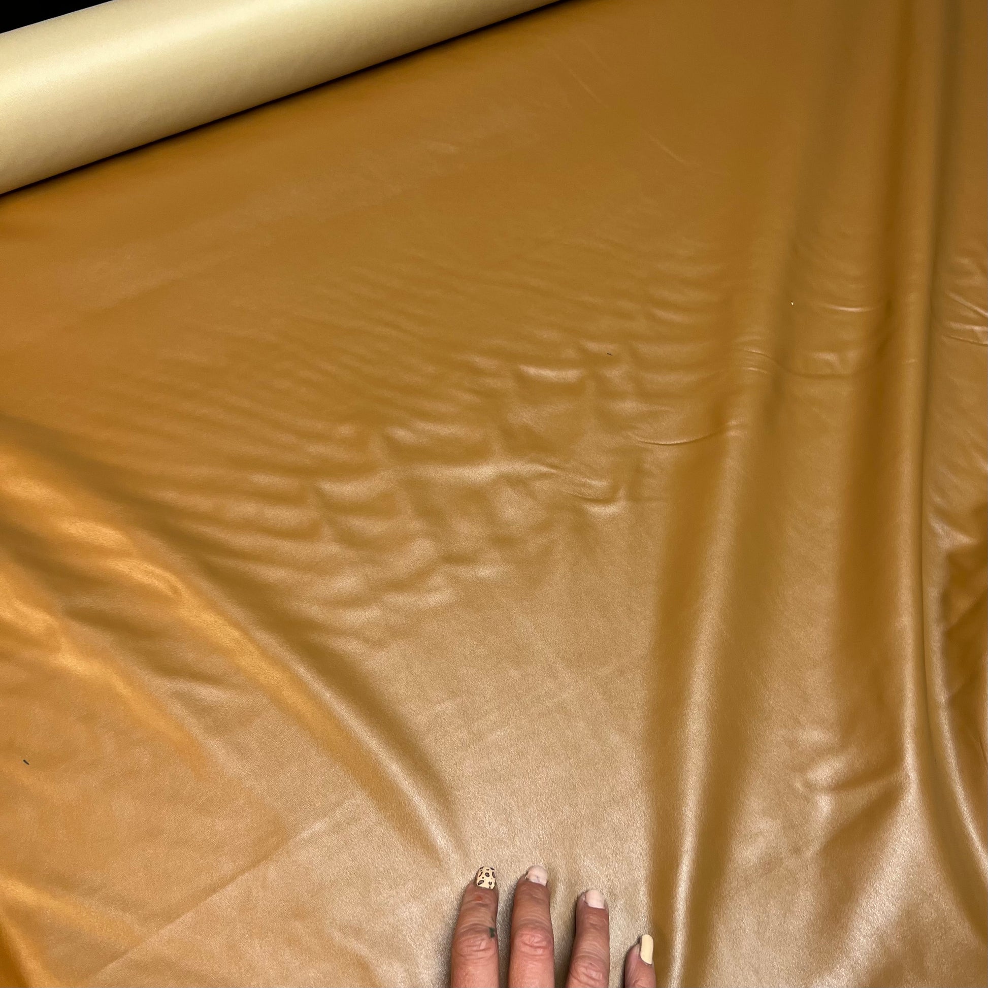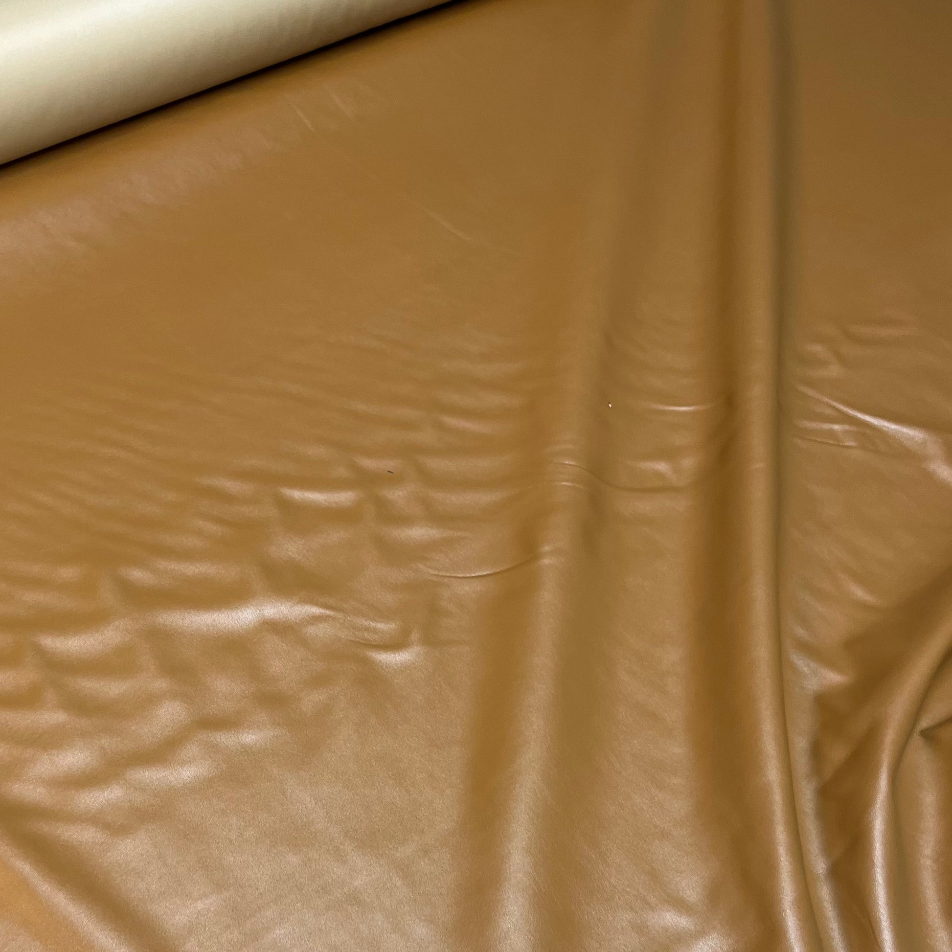 Denna läderlook är tillverkad av 100% polyester. Tyget har en len mjuk rätsida och är genomfärgat, avigsidan är dessutom supermjuk. Väldigt bekvämt material att bära och enkelt att arbeta i när det gäller själva sömnaden.