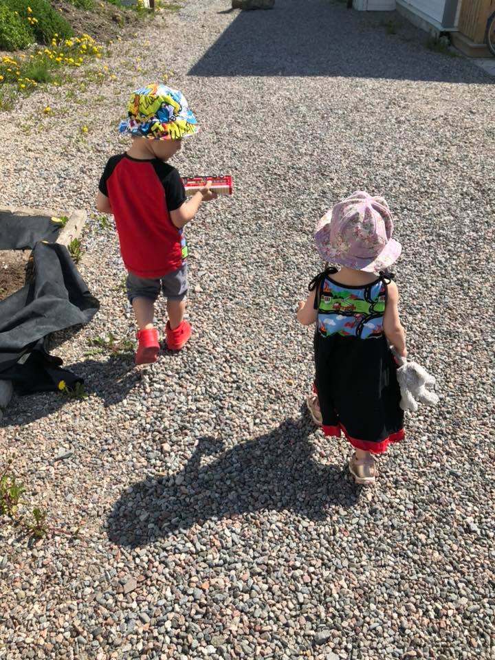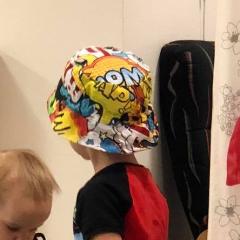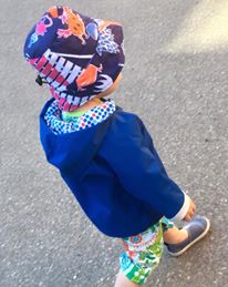 Material: Båda modellerna sys i vävt bomullstyg i både yttertyg och foder. Vill man ha lite mer stadga (särskilt vid sömnad av modell 2) kan man använda bomullscanvas, jeans eller liknande stadigt vävt tyg som yttertyg. Vidare kan man om man vill ha mer stadga i brättet stryka på vliseline på detta innan de sys ihop. Till modell 2 tillkommer även rundresår, ca 70 cm, en dubbel snörstopp samt två små öljetter.
