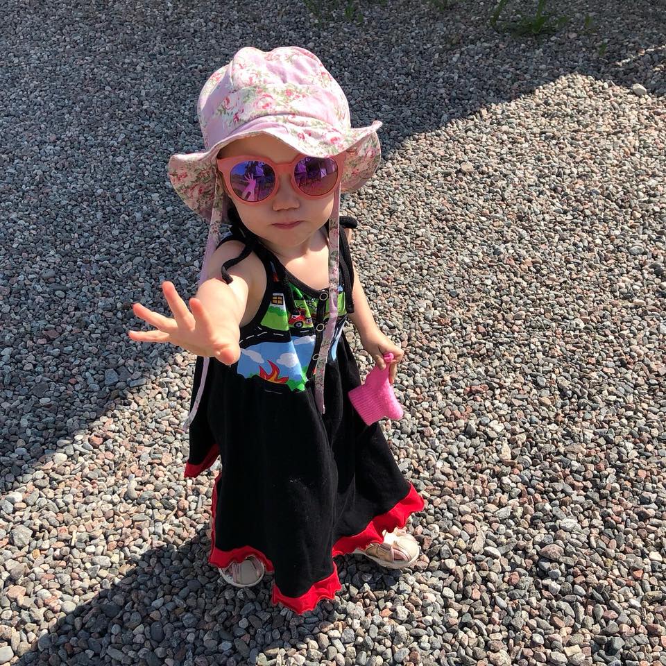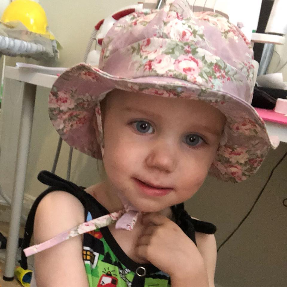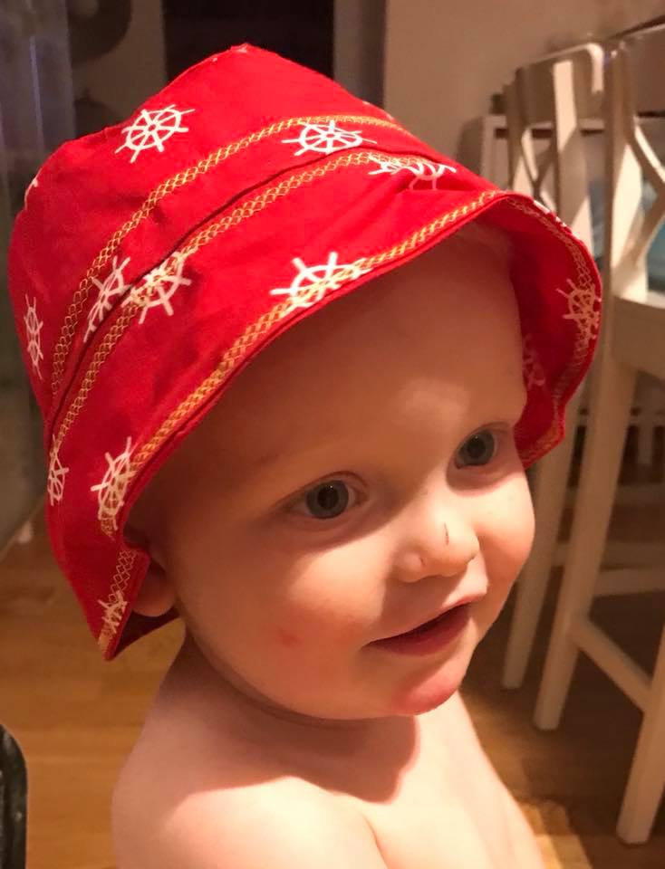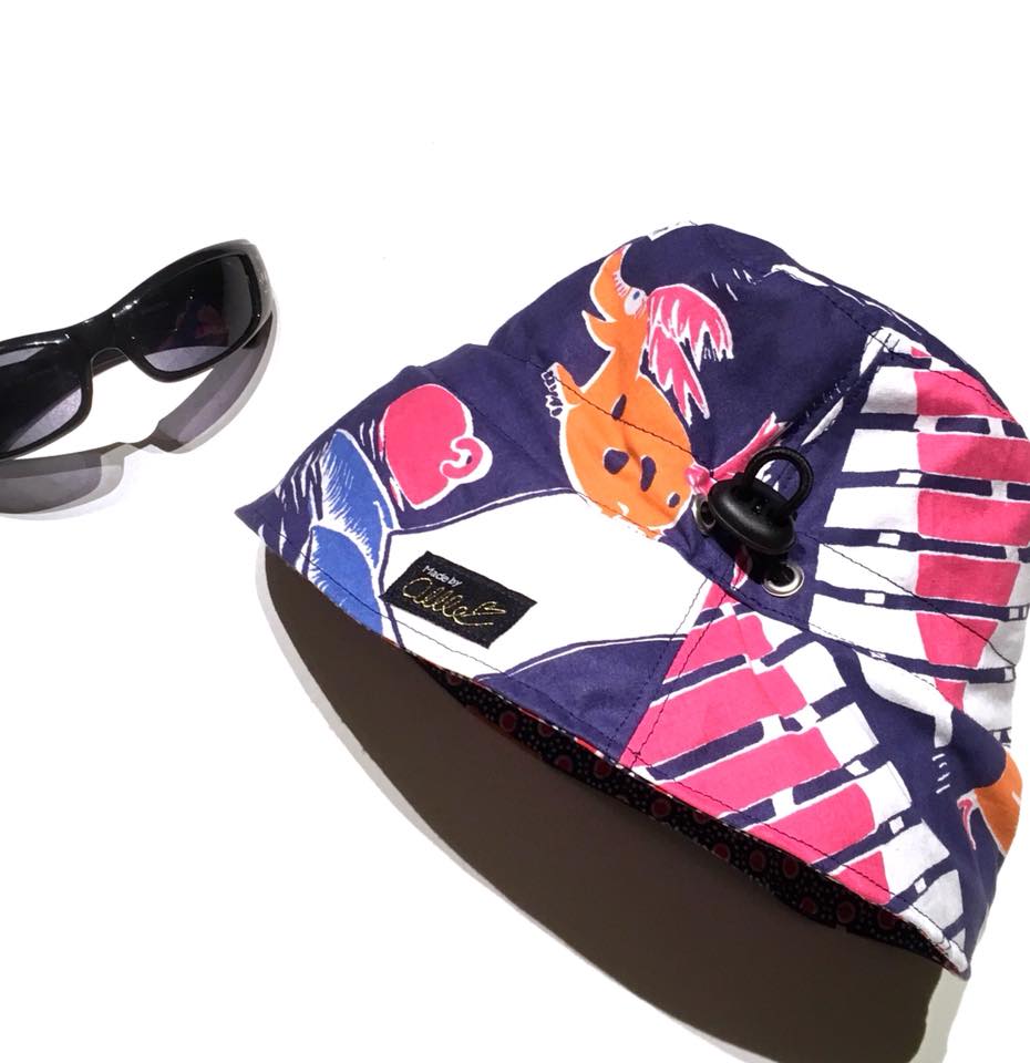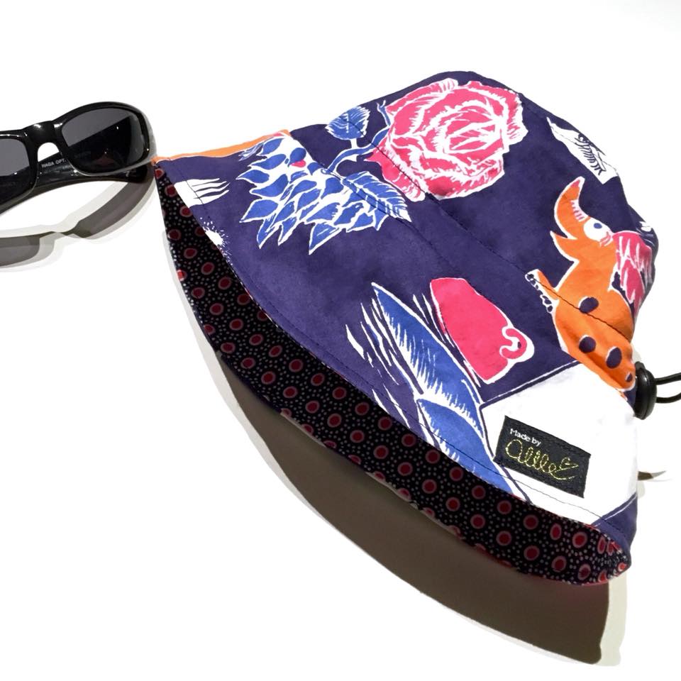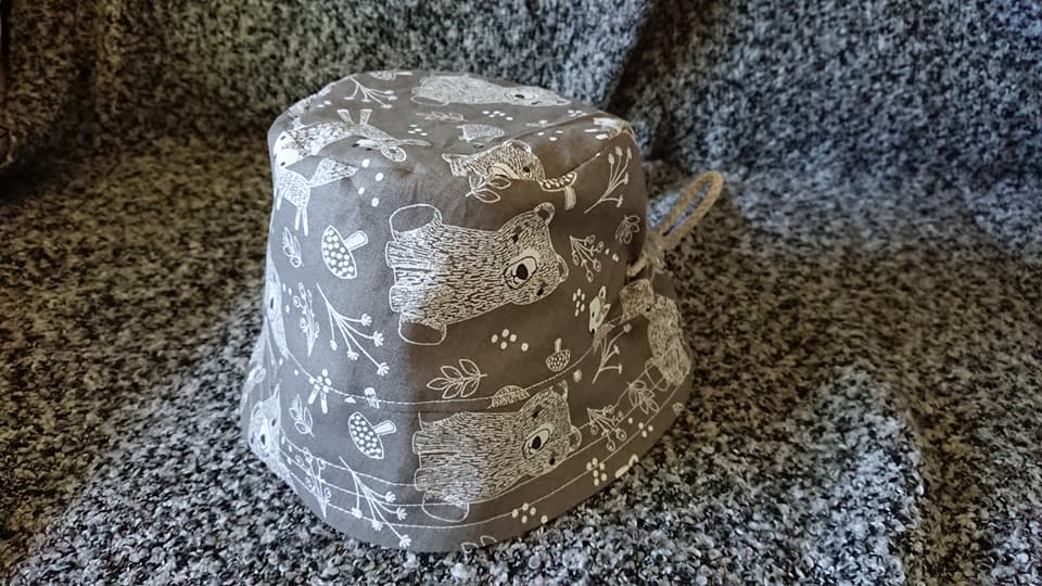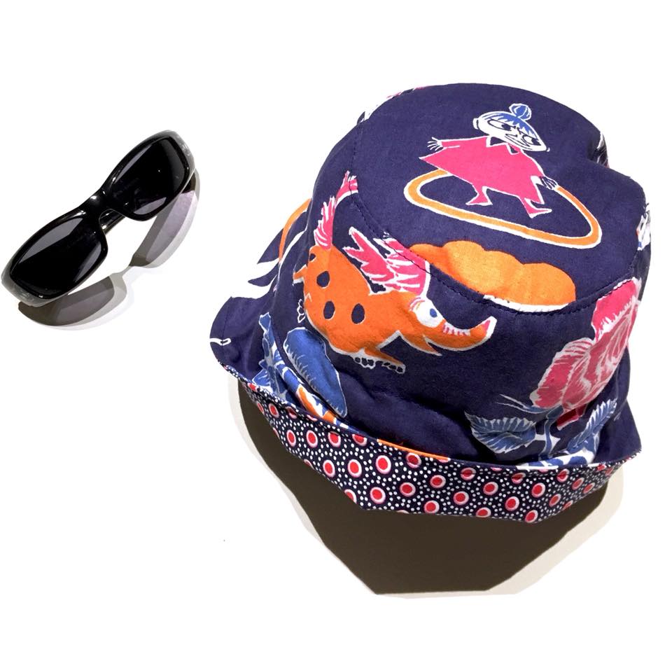 Denna solhatt går att sy i två modeller; antingen en variant med klockformad topp med kilar och ett lite vågigt brätte med eller utan knytband eller en fiskehattsmodell med rakt sidostycke och en kanal med rund resår inuti för att kunna justera vidden en aning. Modell 1 (med kilarna) går upp till strl 56-60 och modell 2 (fiskehattsmodellen) går upp till strl 60-64 (herr).
