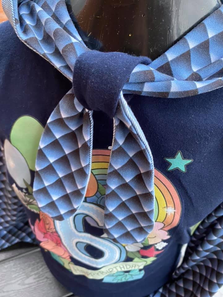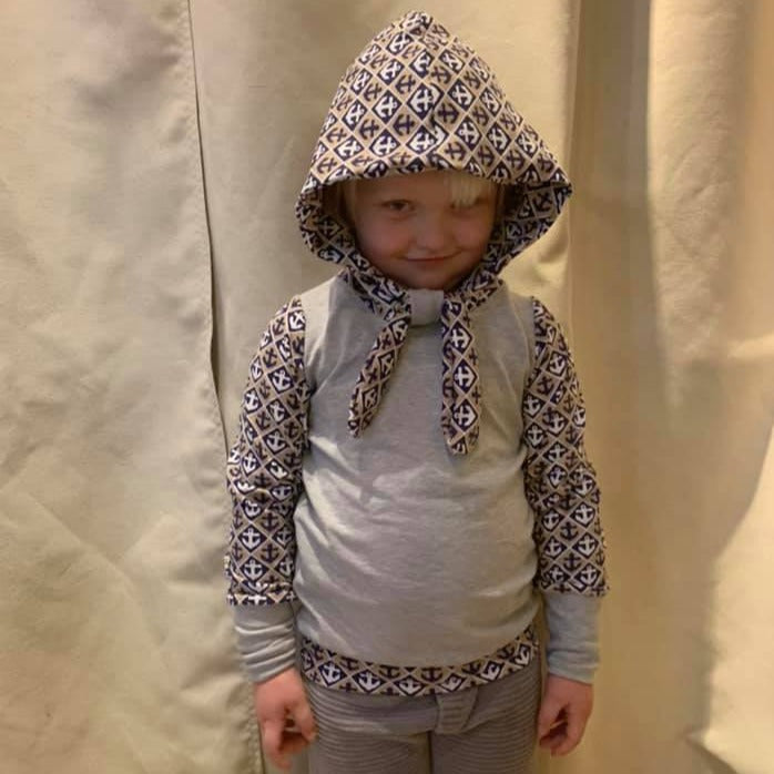 Rolig luva med snygga knytband som antingen kan hänga rakt ner eller knytas framtill. Söt detalj som ger det lilla extra till en vanlig Hoodie, och snyggt att använda för lite sjömanskänsla på tröjan till både liten och stor.