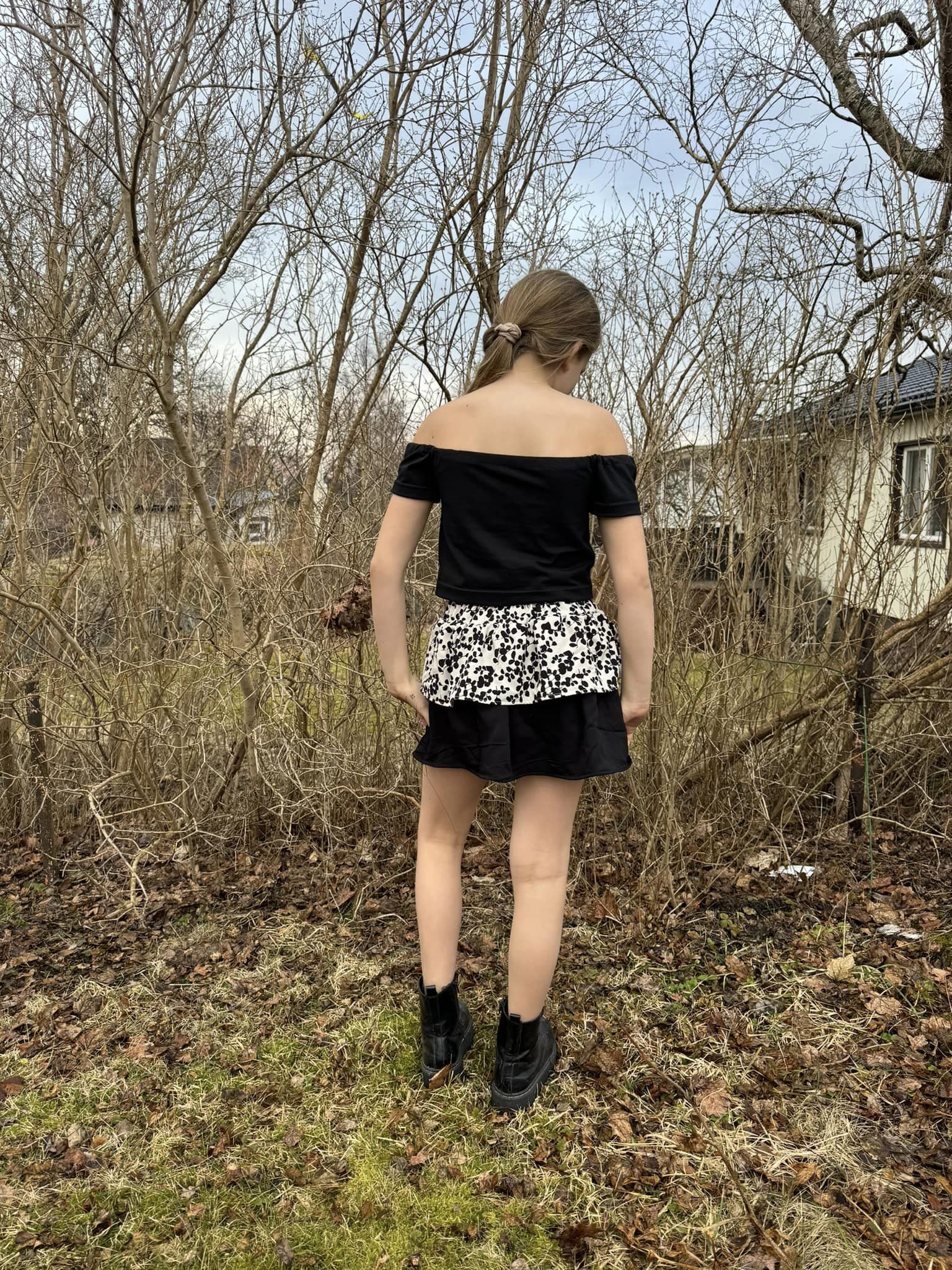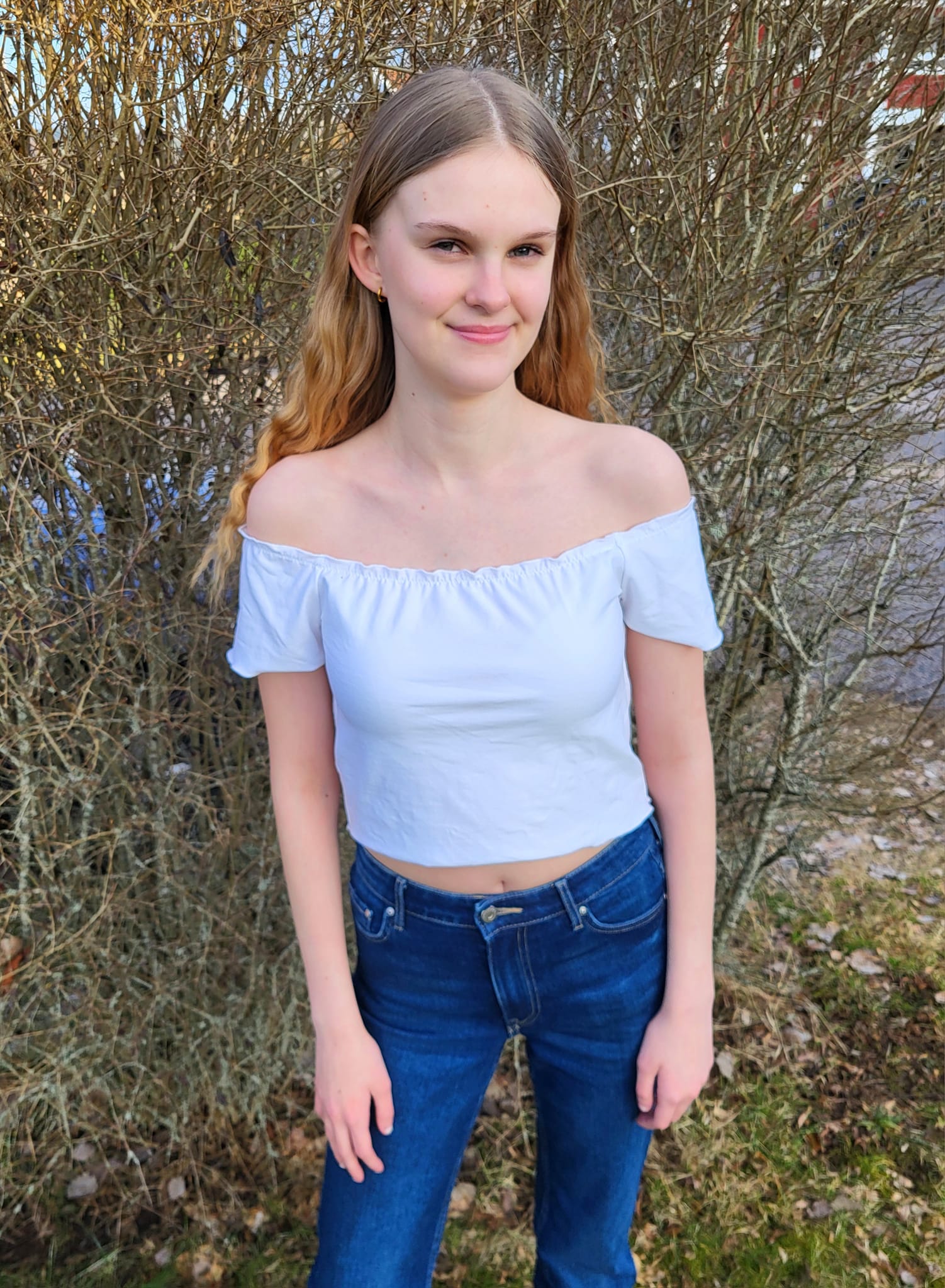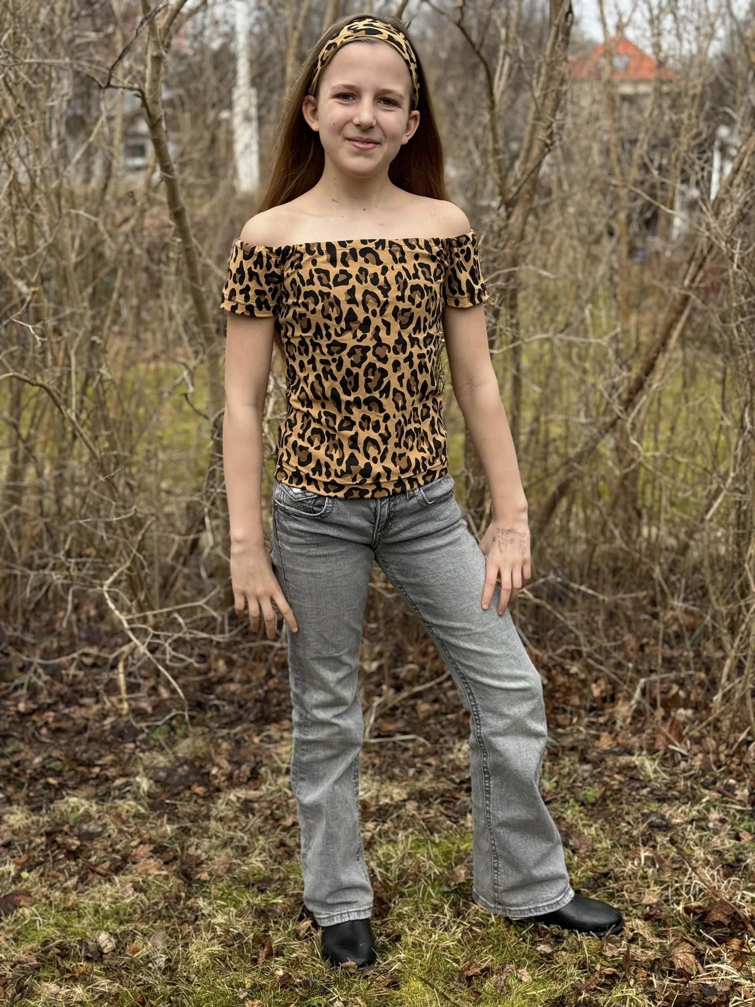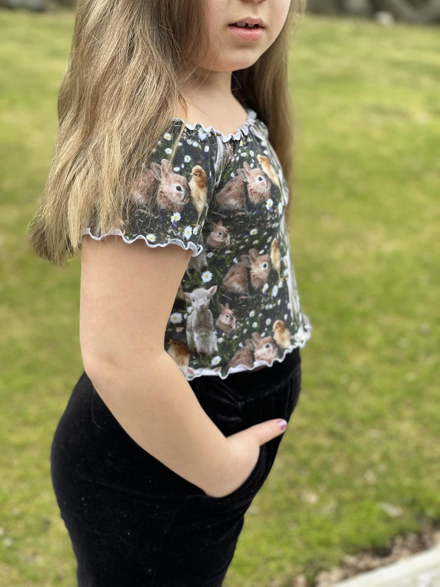 Material och tillklippning: Modellen sys i ribbad eller slät trikå/jersey. 0,5 cm resårband tillkommer till halsringningen.
