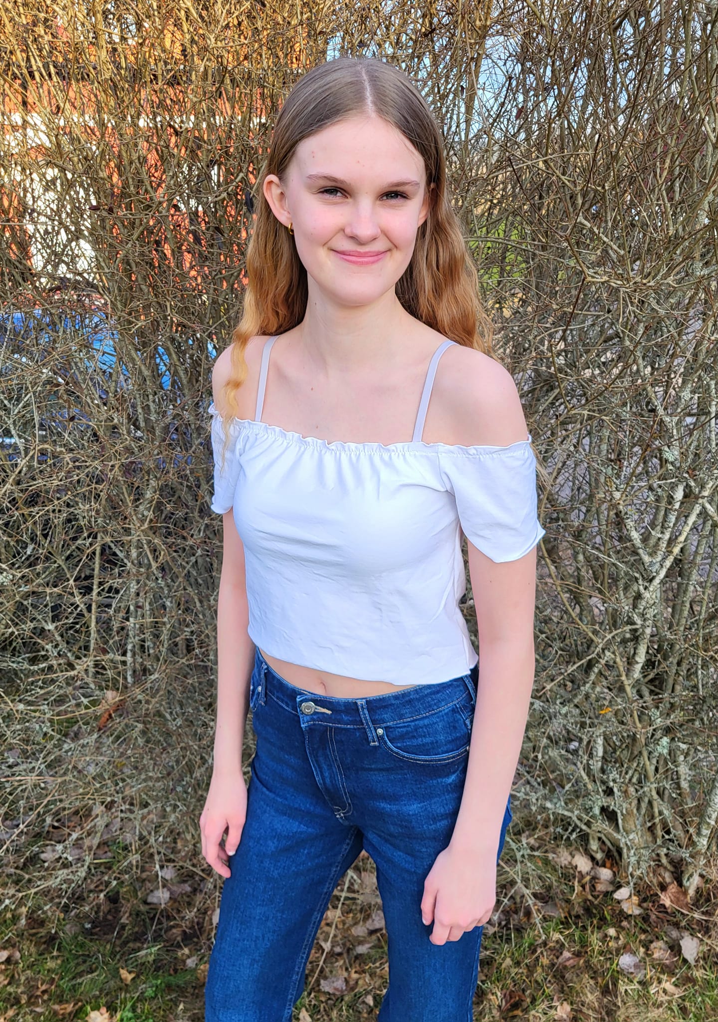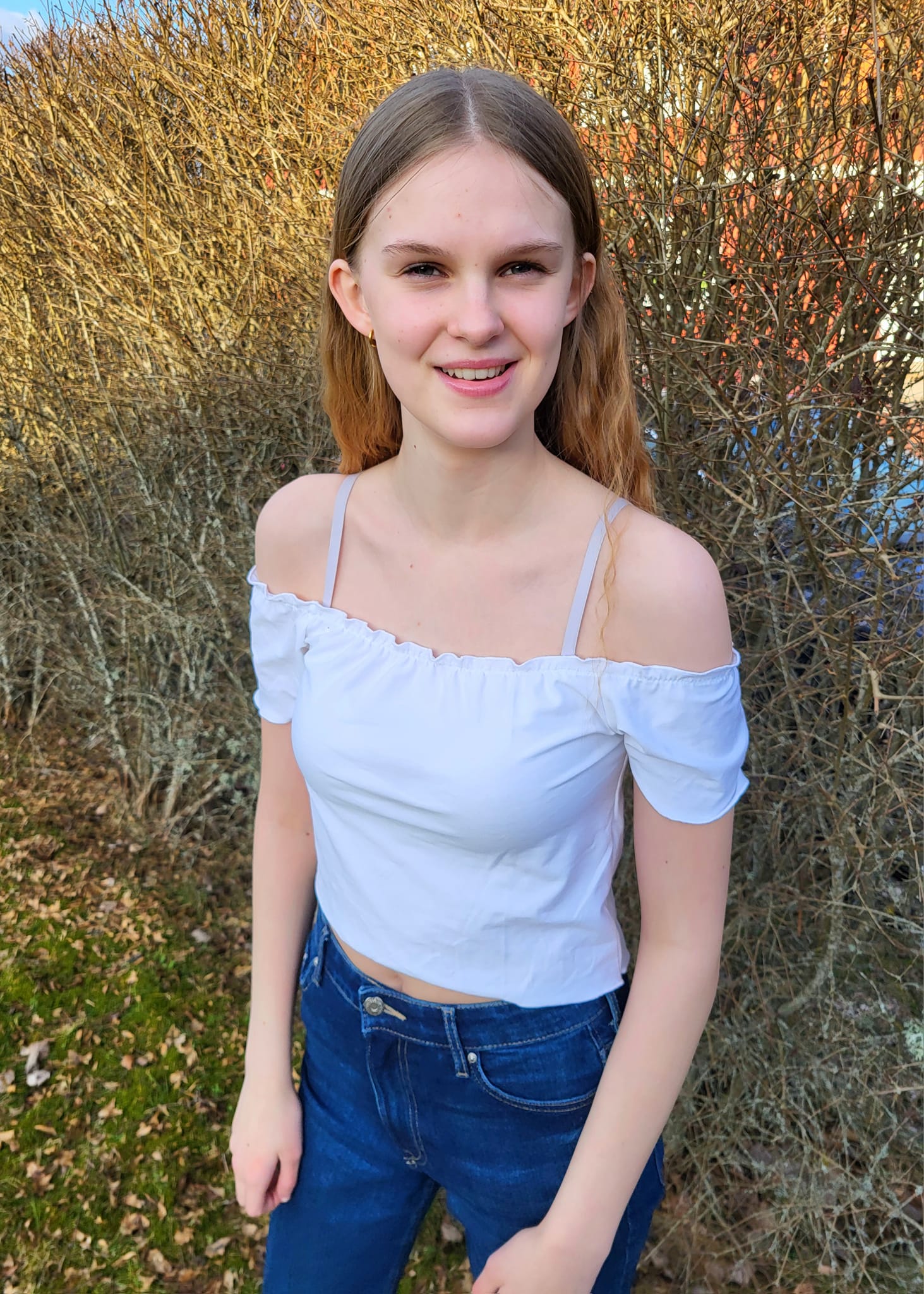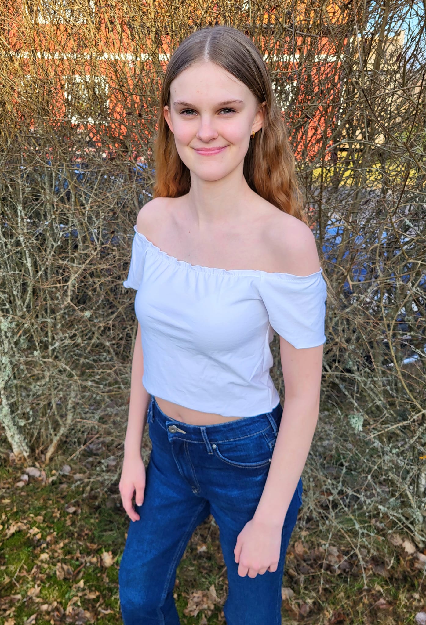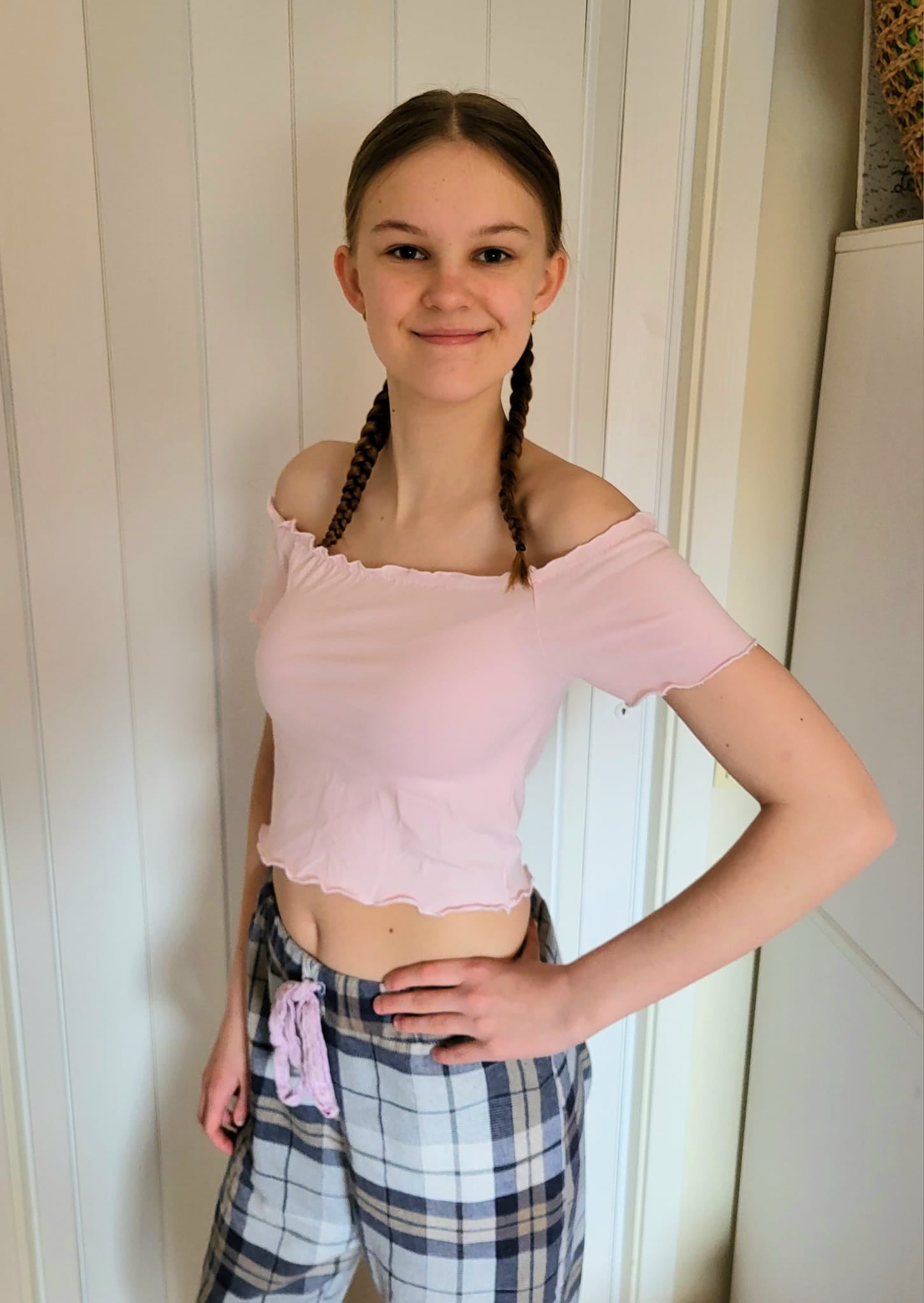 Material och tillklippning: Modellen sys i ribbad eller slät trikå/jersey. 0,5 cm resårband tillkommer till halsringningen.