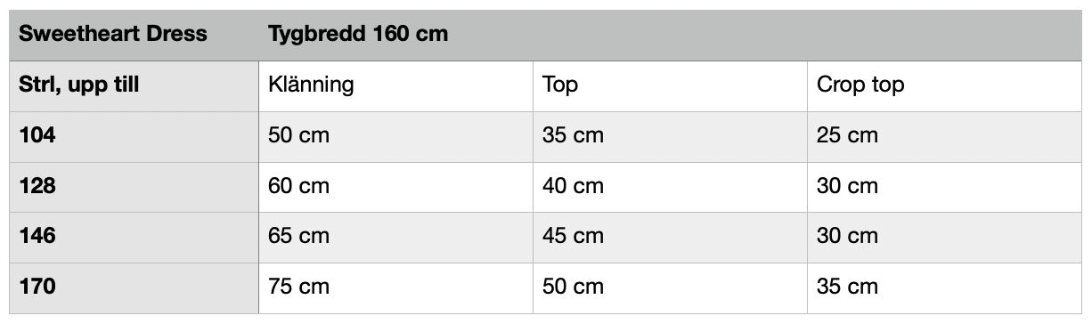 Se sista bilderna för tygåtgång (finns även i sömnadsbeskrivningen efter köp).