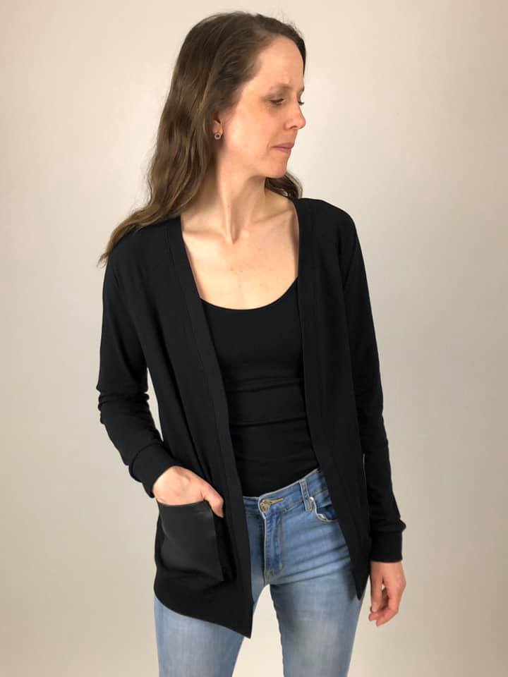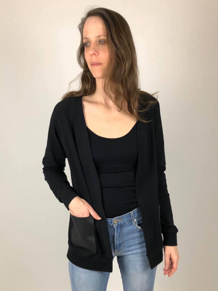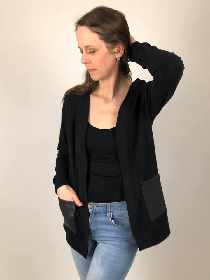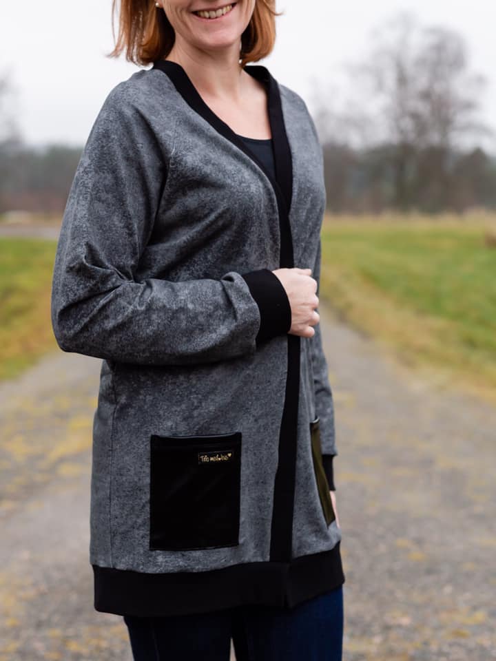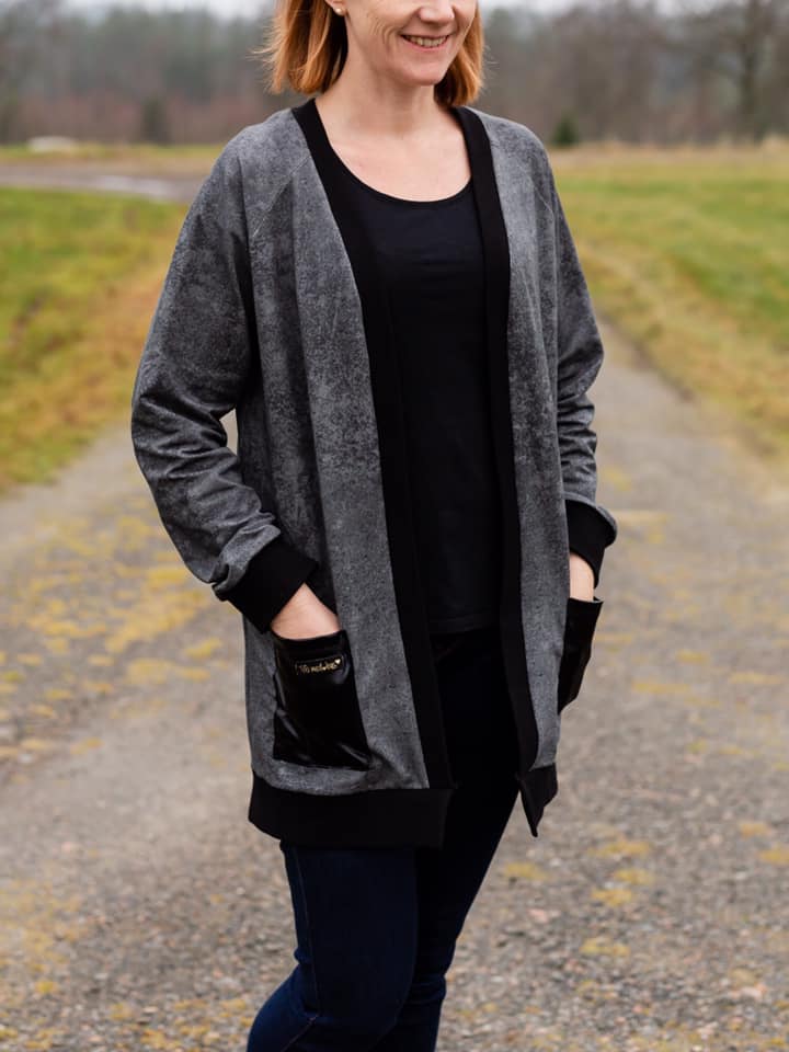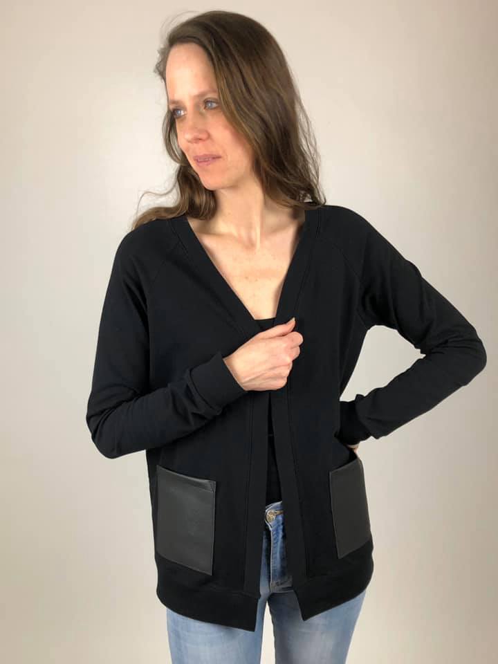 The BaumwULLE Cardigan är en mysig kofta med både oversize och regular passform med tre olika längder och med en snygg ficka i konstskinn på vänster framstycke. Koftan knäpps med tryckknapp, klassisk knapp med knapphål eller helt utan knäppning.