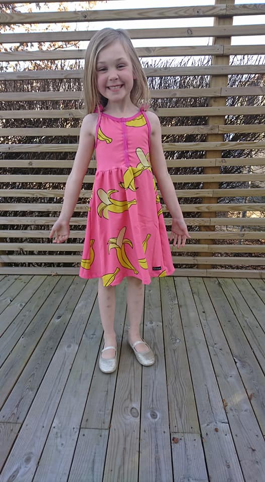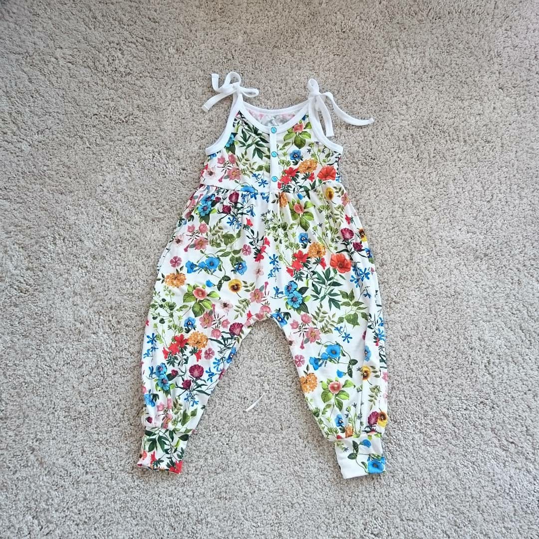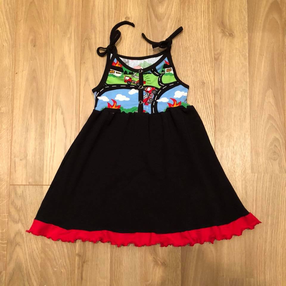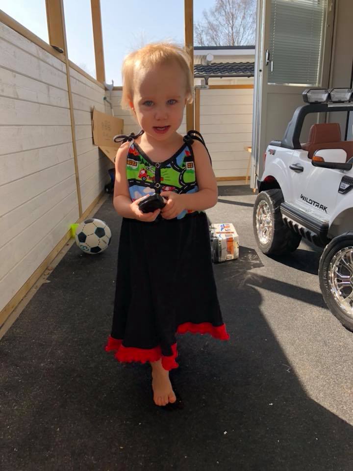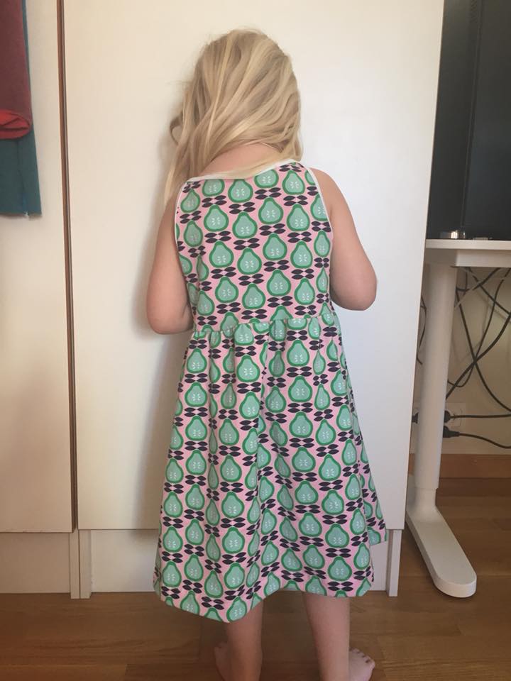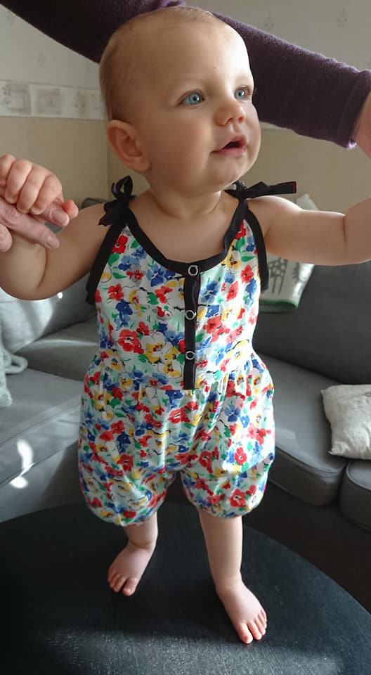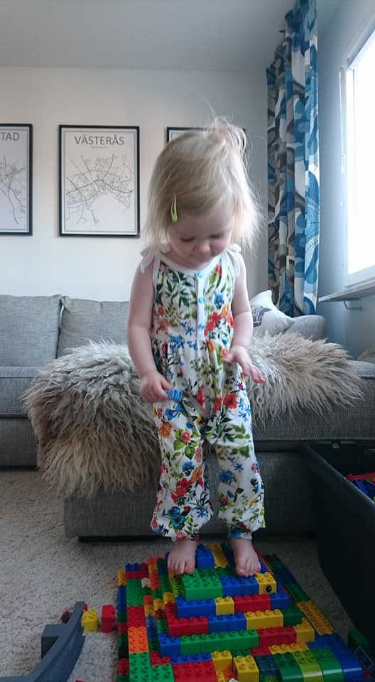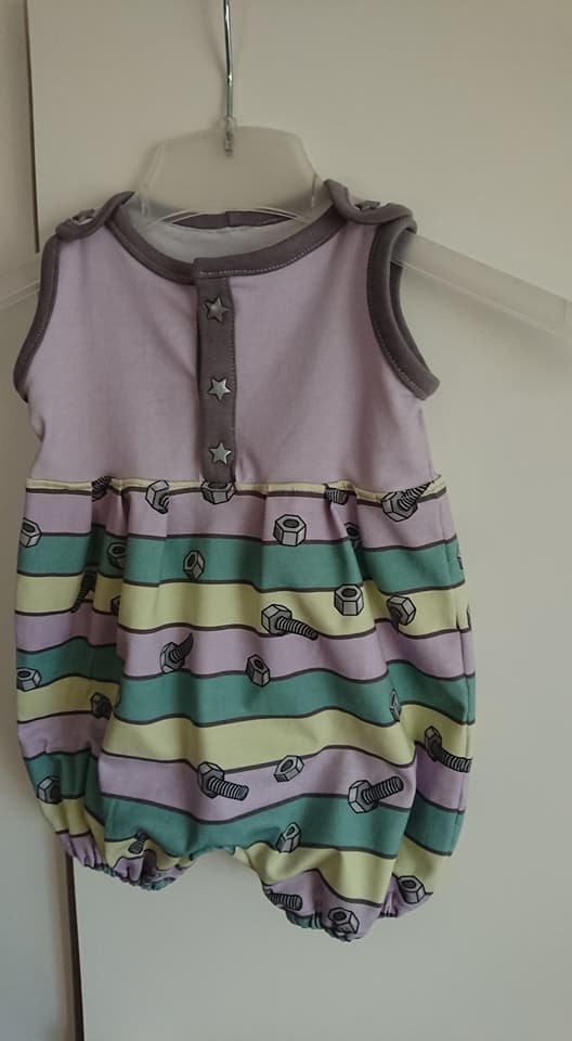 Tracys Tornado Jumpsuit är en solklänning/byxdress med ledig passform och söt knäppning fram på livet. Man kan sy den antingen med kjol, korta ben med kantband eller resårkanal eller långa ben med muddavslut. Axelbanden kan göras med eller utan knyt, och grenen antingen med söm eller med knäppning för enkla blöjbyten/toalettbesök.