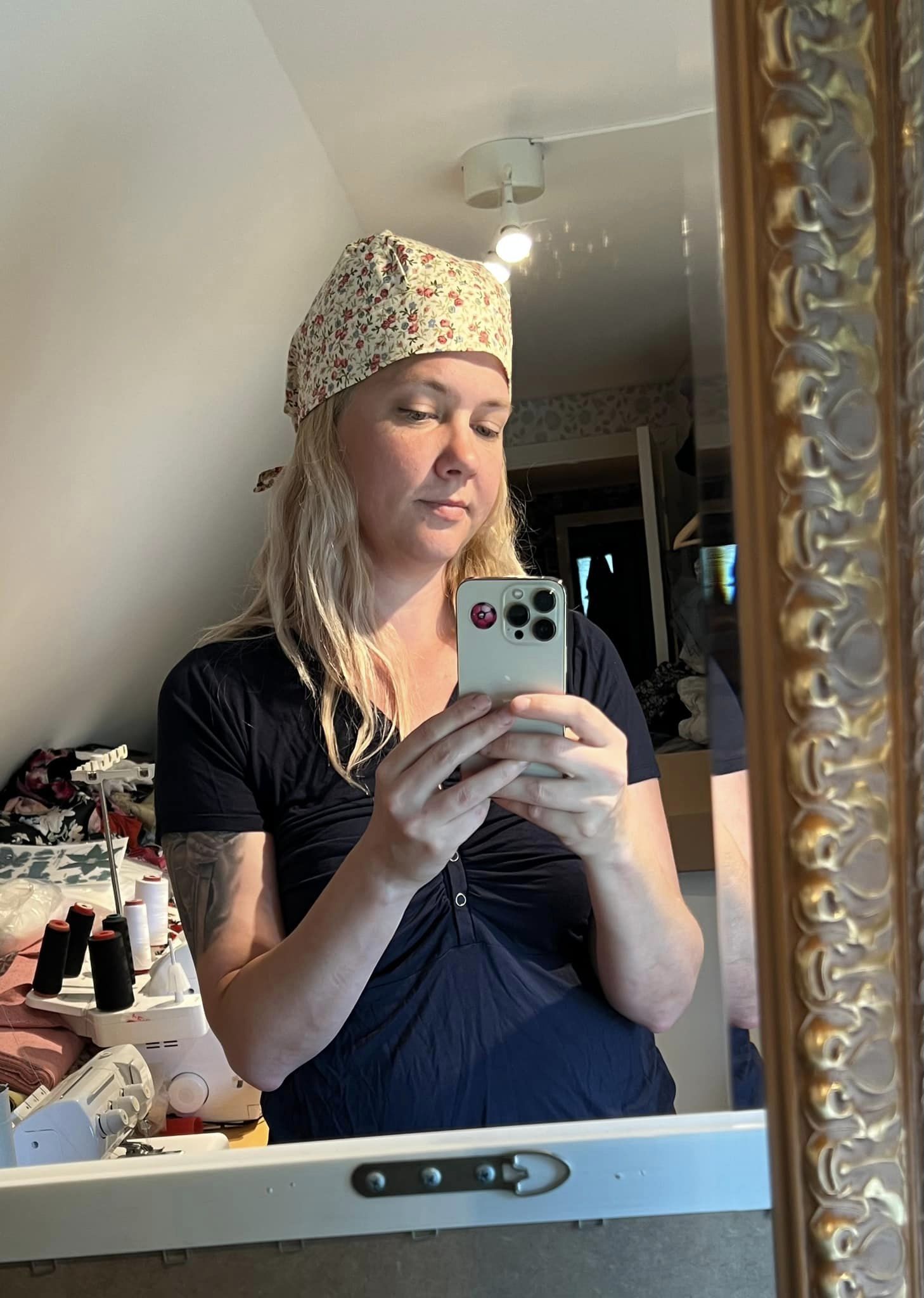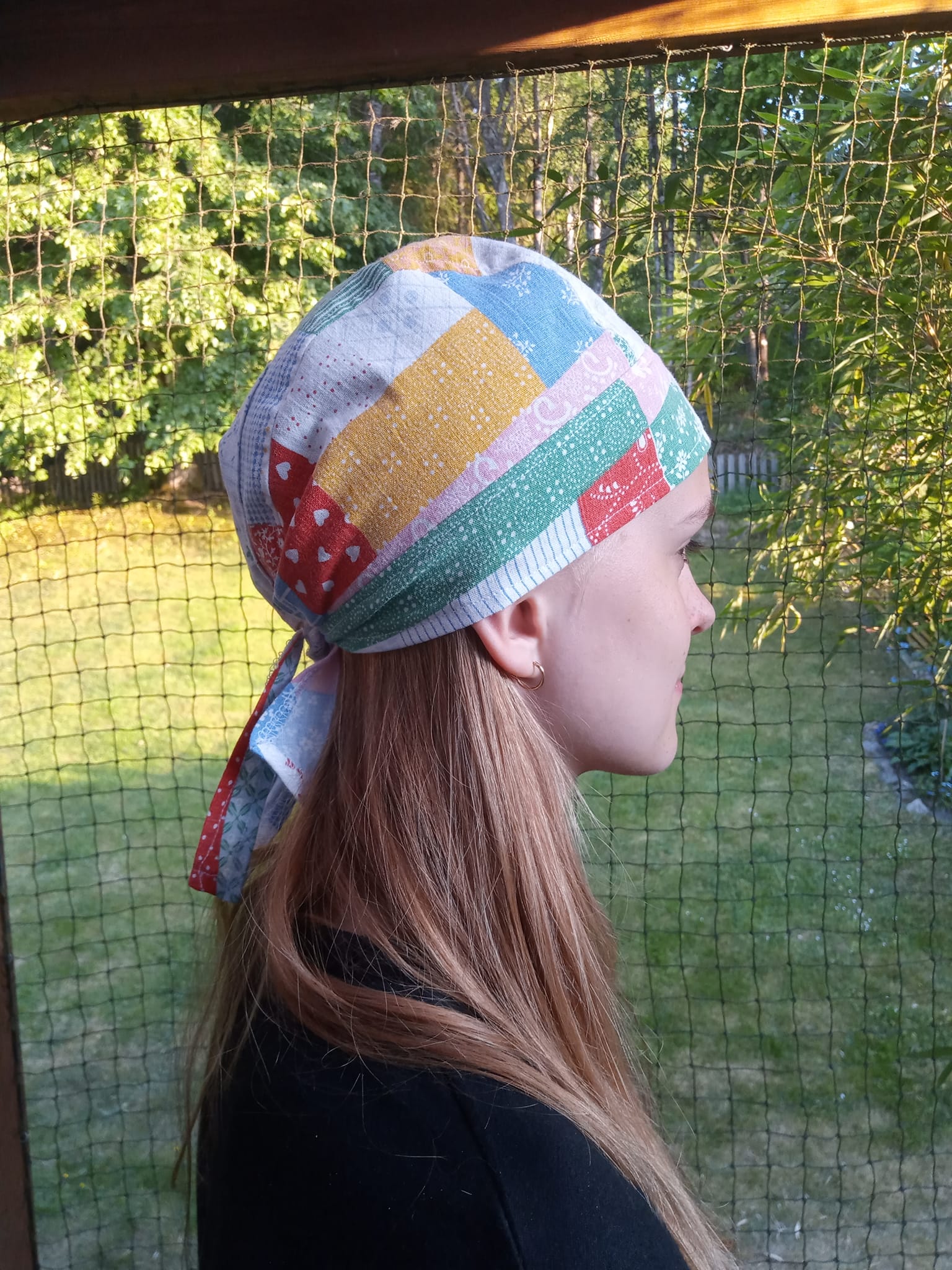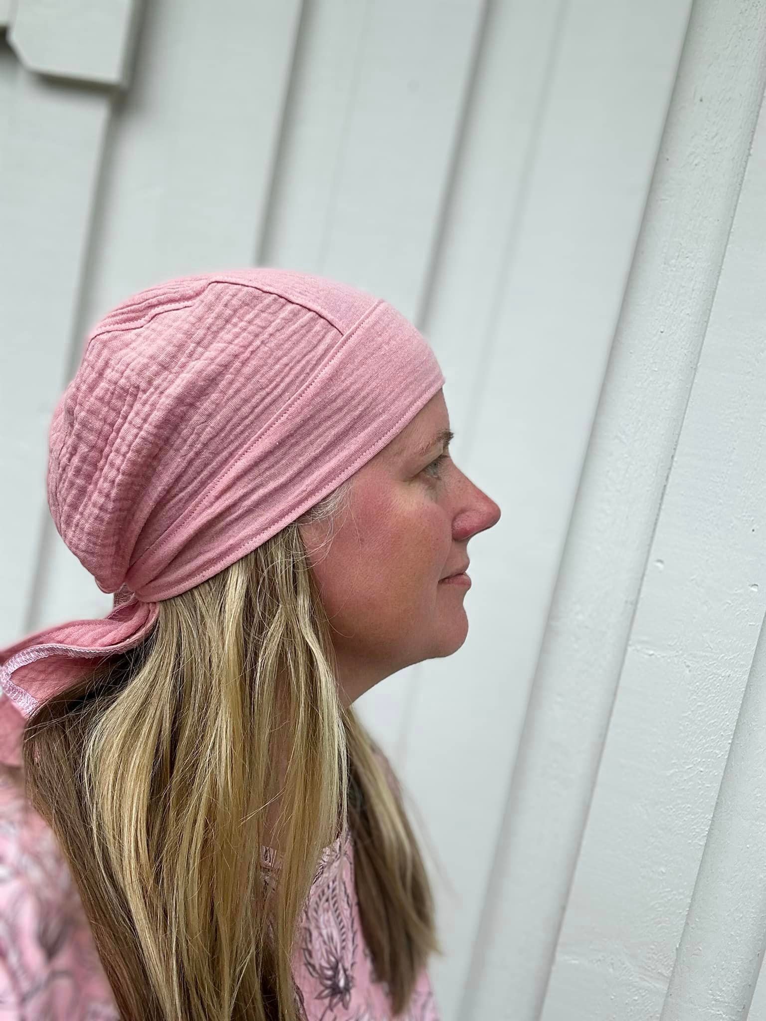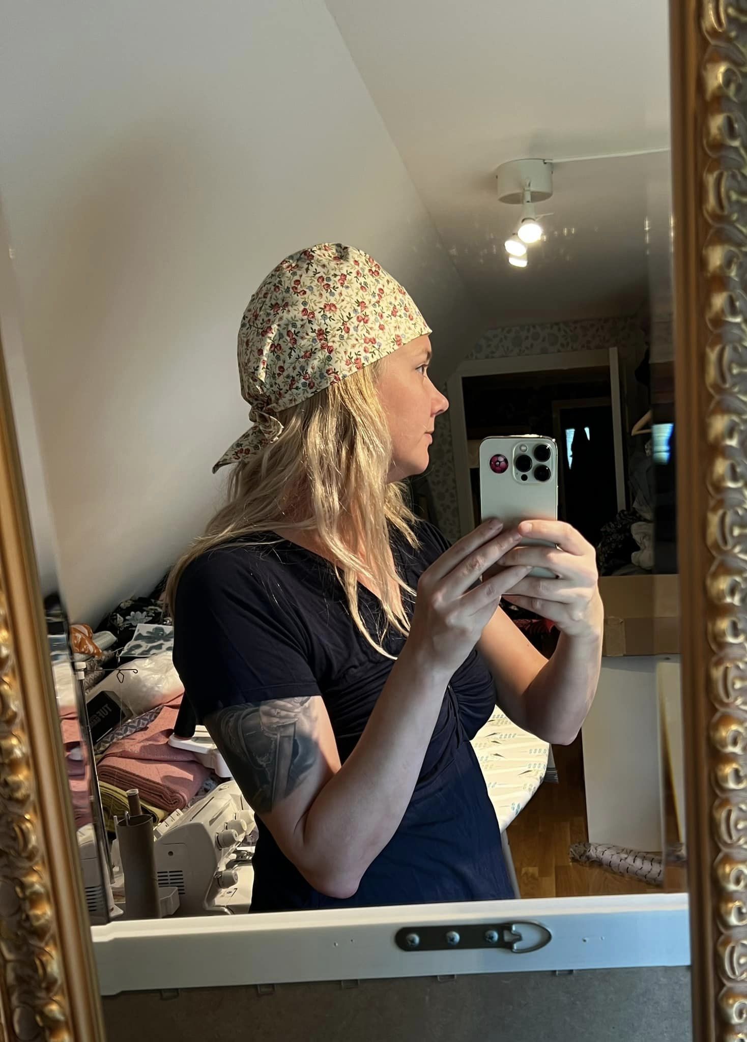 Material och tillklippning: Mössan är ritad för att sys i tunnare vävda tyger såsom bomull/lakansväv, muslin, linneviscose och liknande, men kan även sys i bad/sportlycra eller jersey om så önskas.