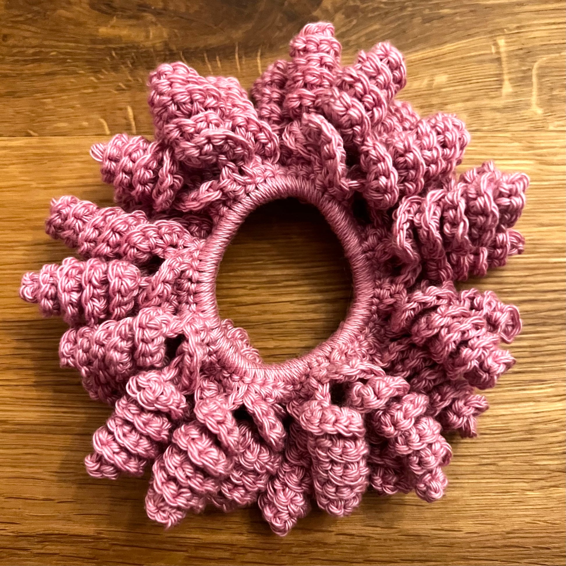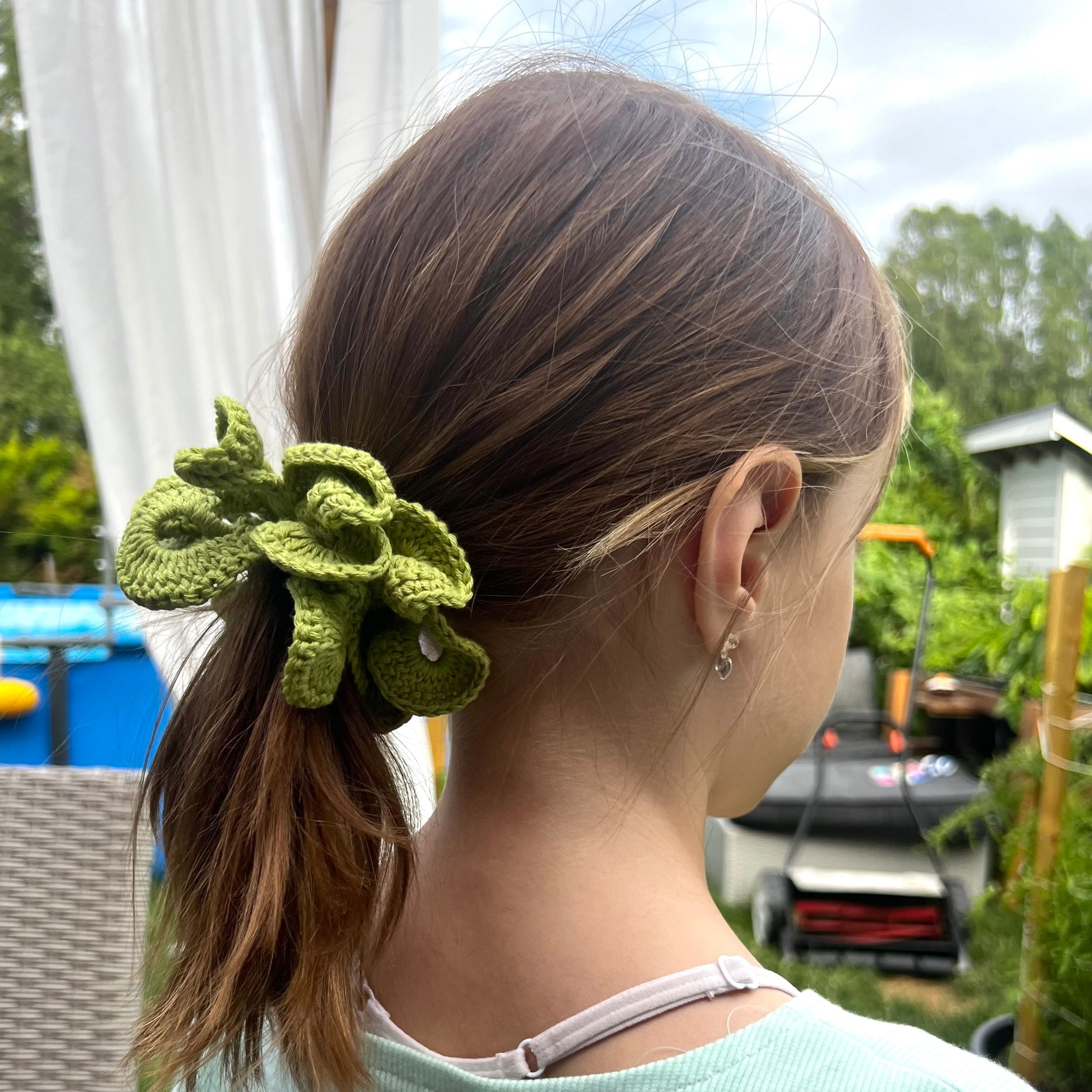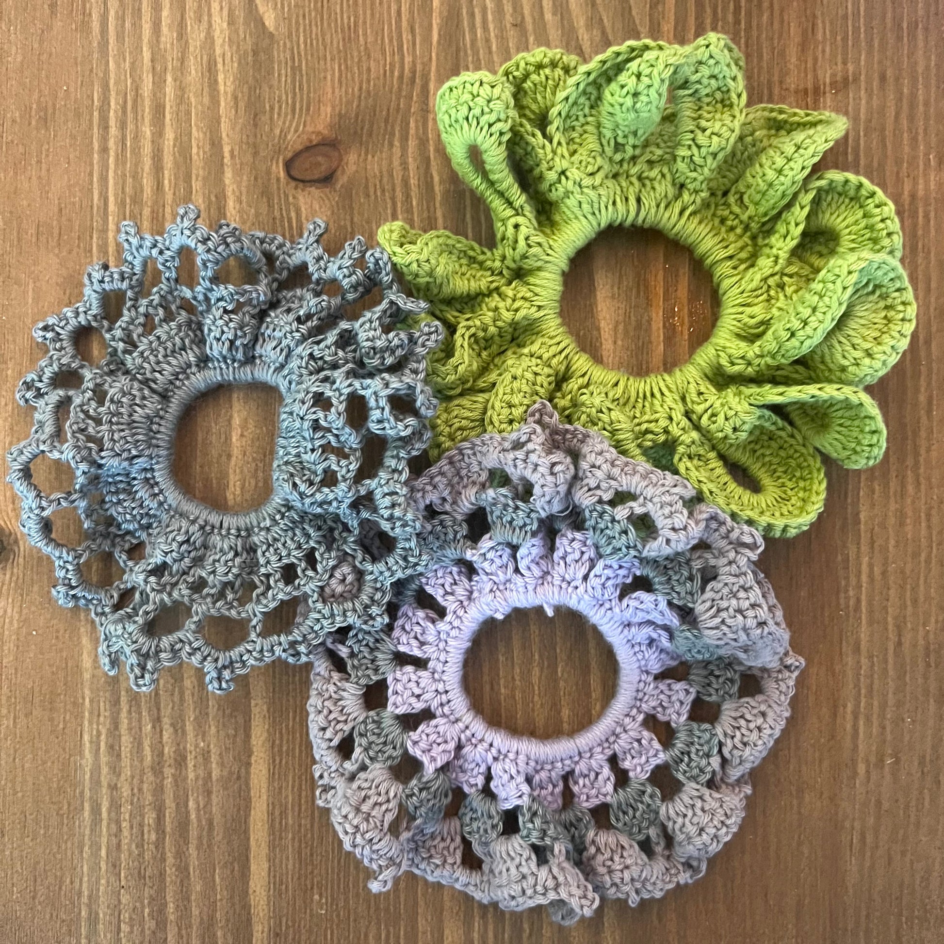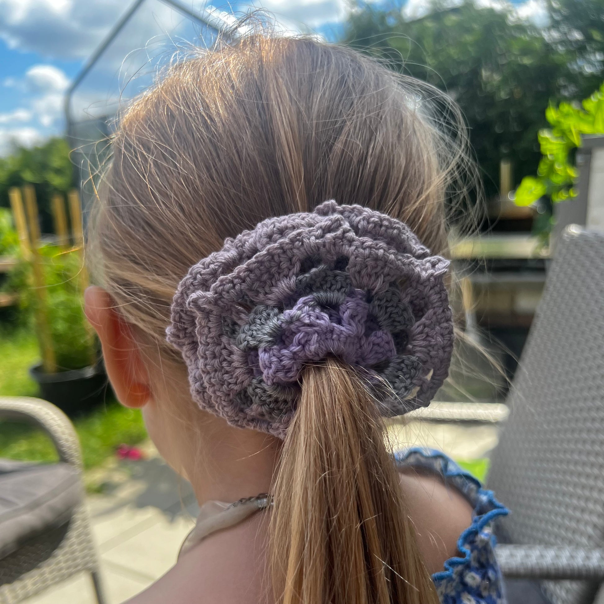 Mönster på virkade hårsnoddar i hela fyra olika modeller! Mönstret laddas ner som PDF-fil.