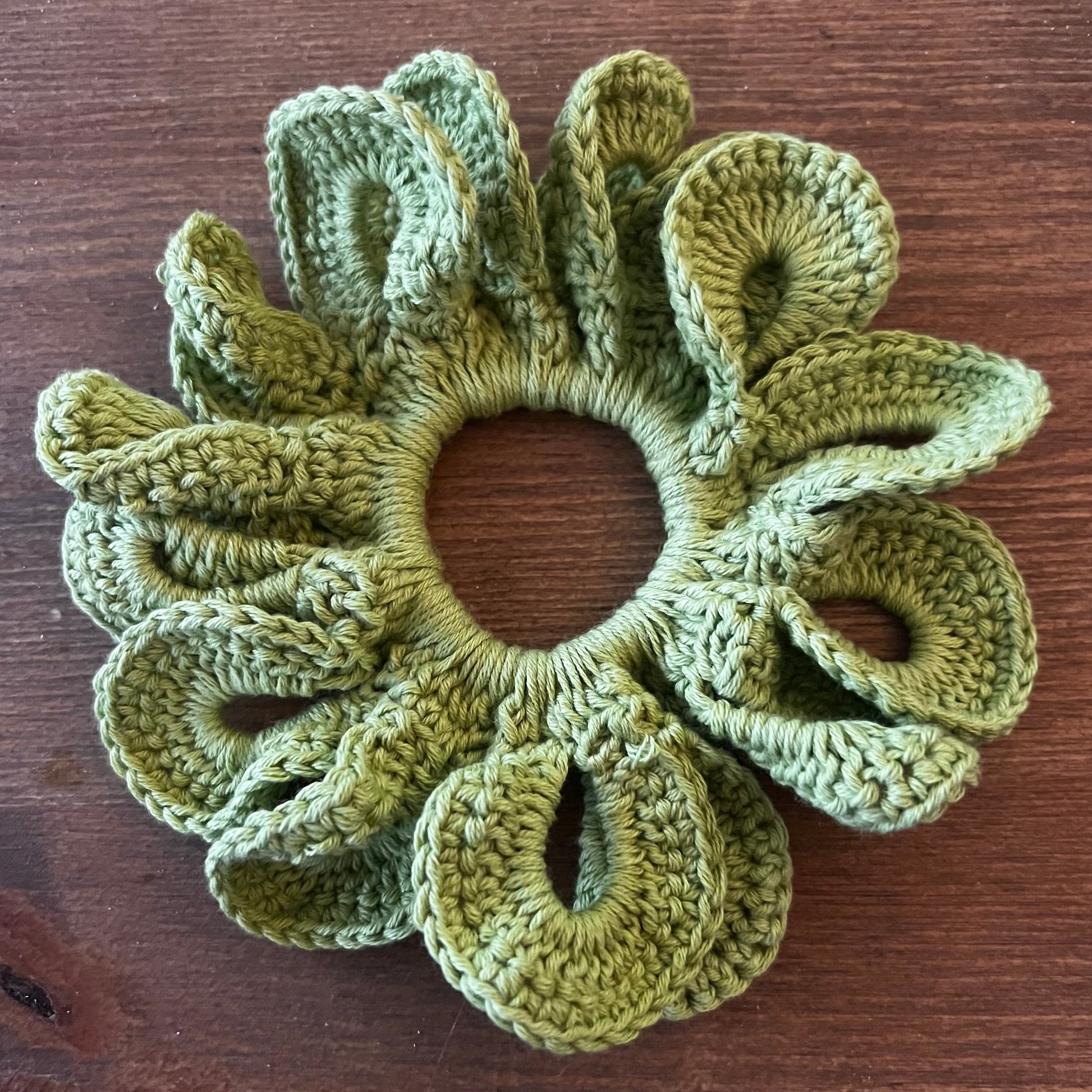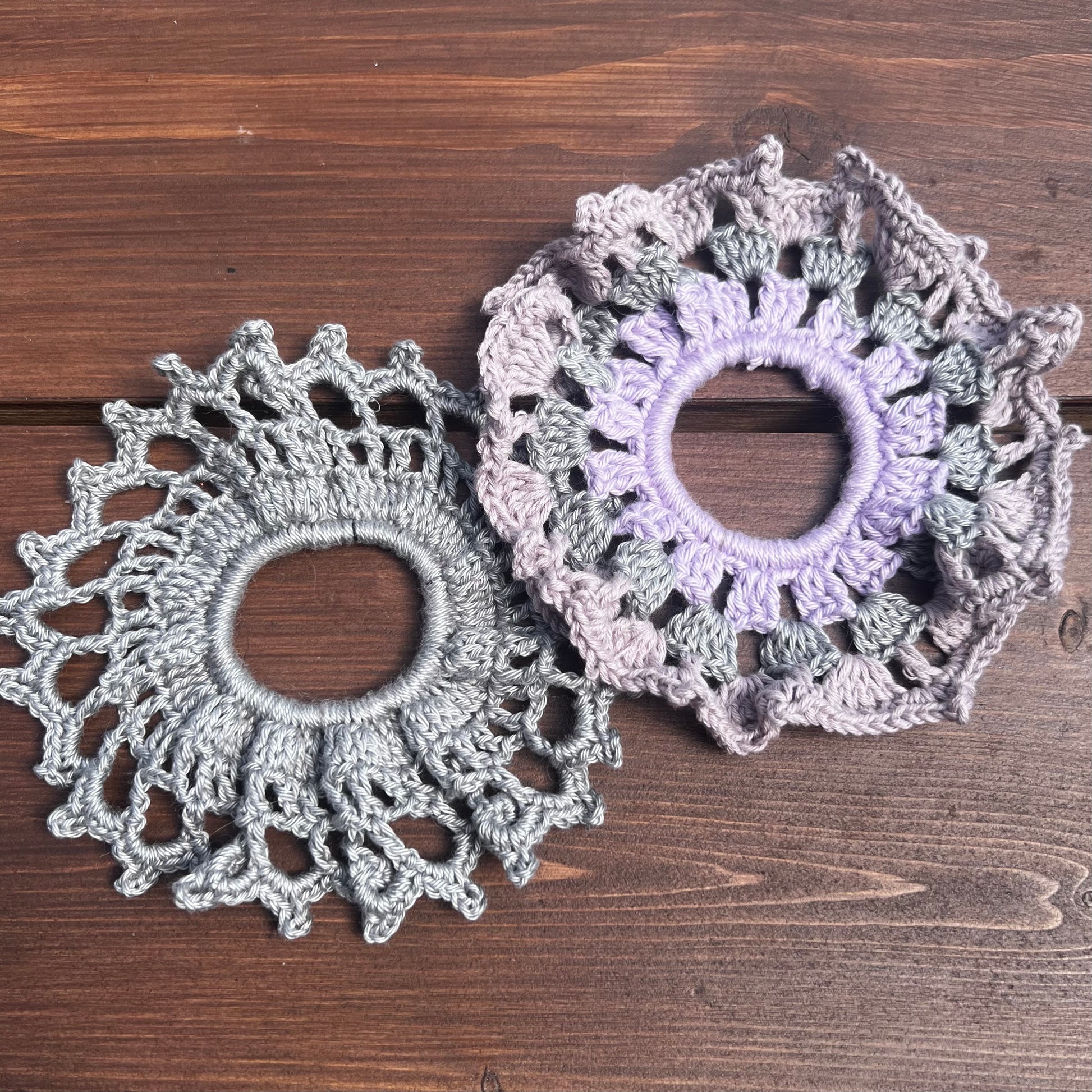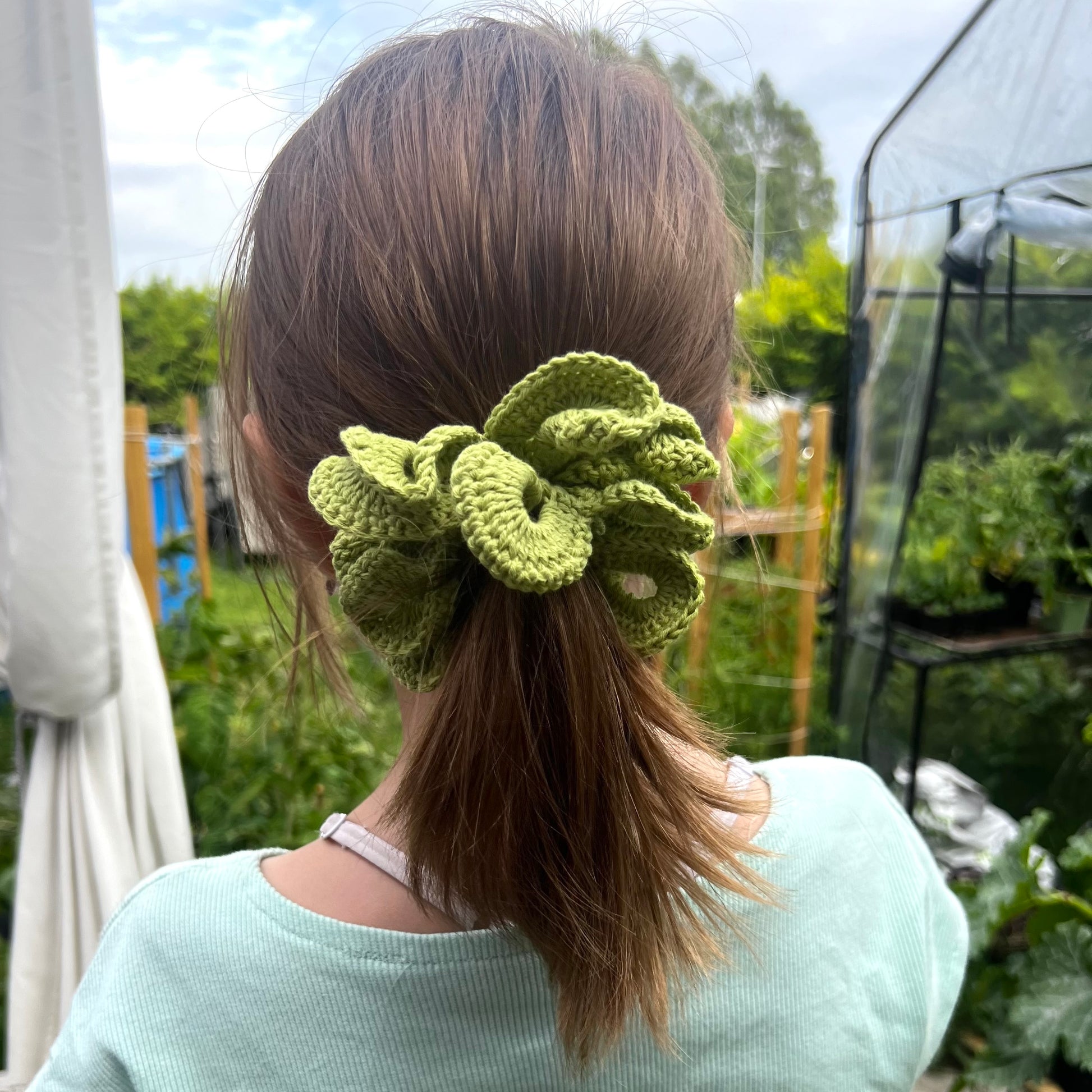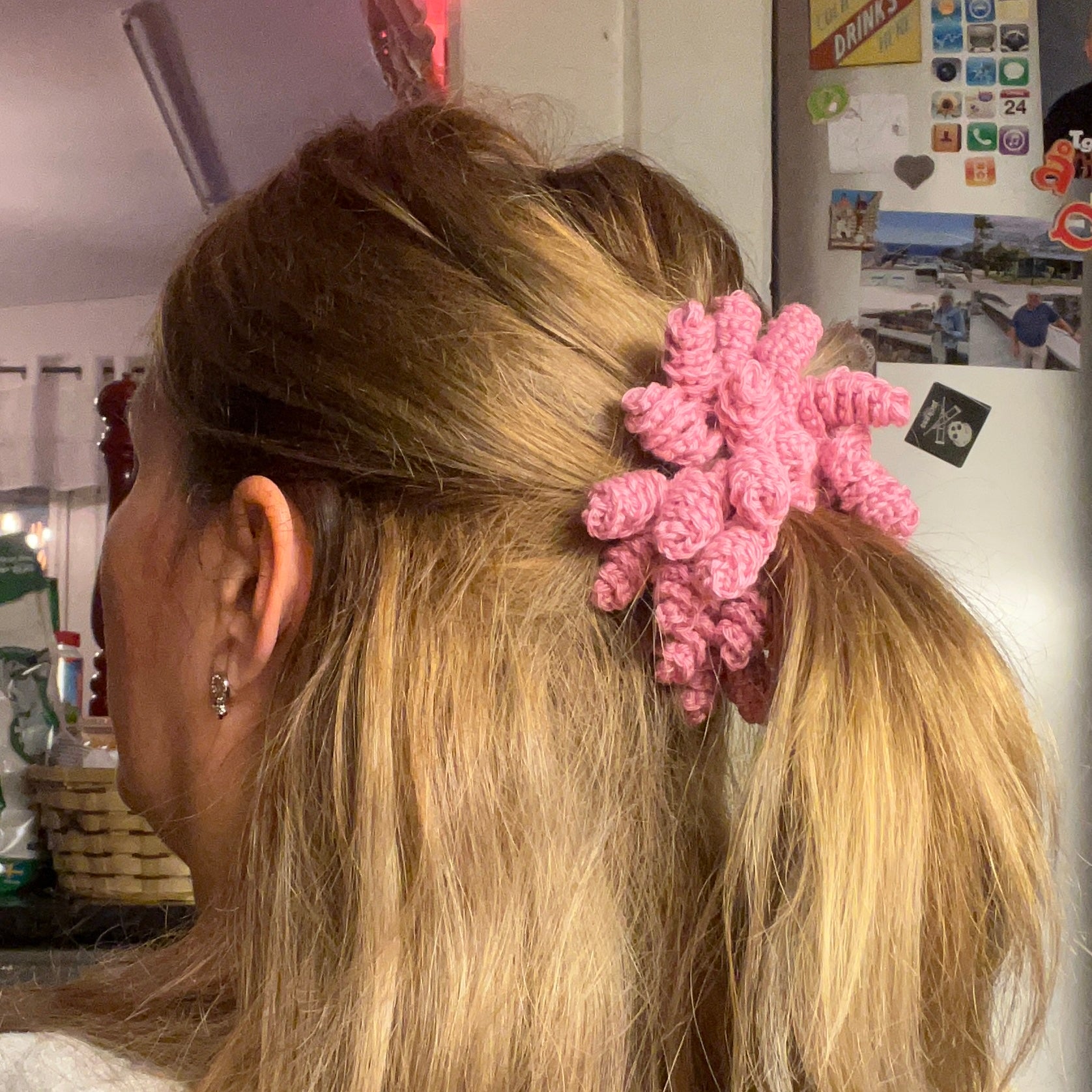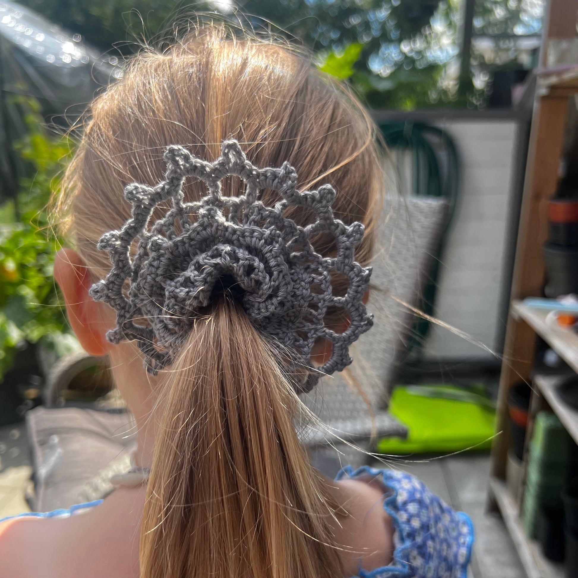 Mönster på virkade hårsnoddar i hela fyra olika modeller! Mönstret laddas ner som PDF-fil.