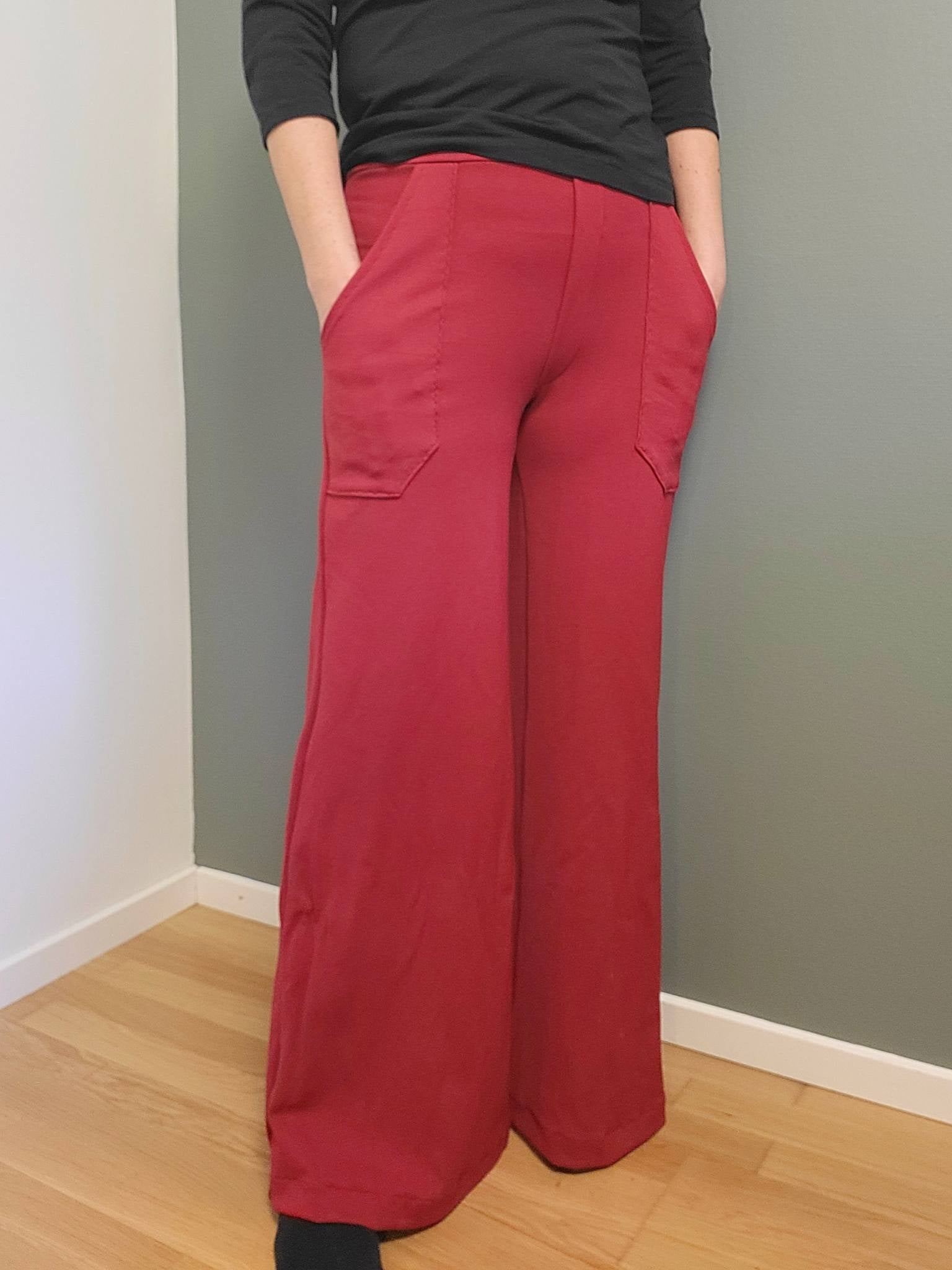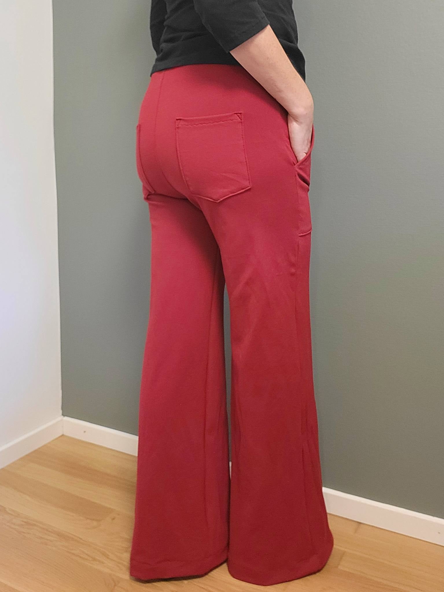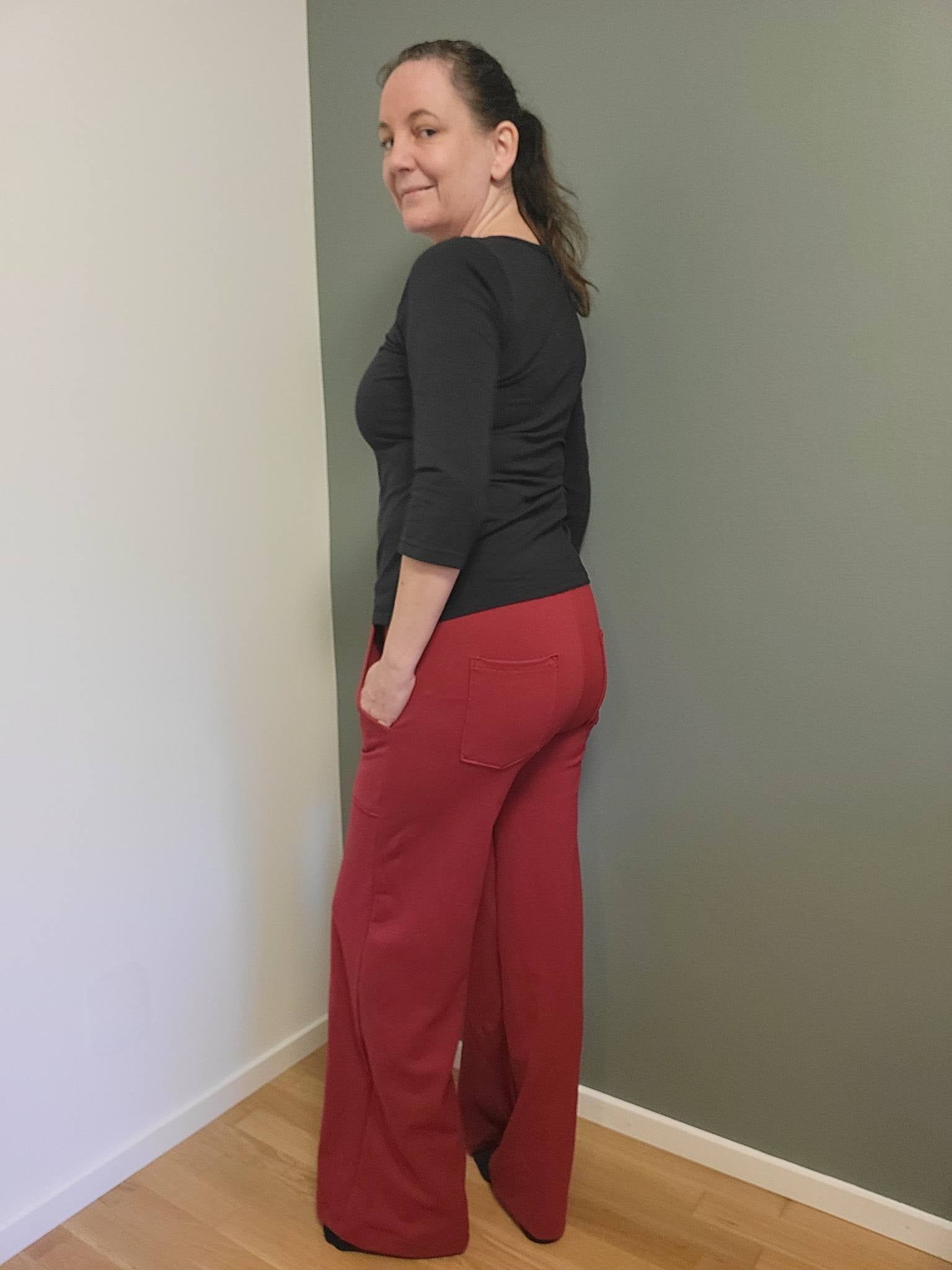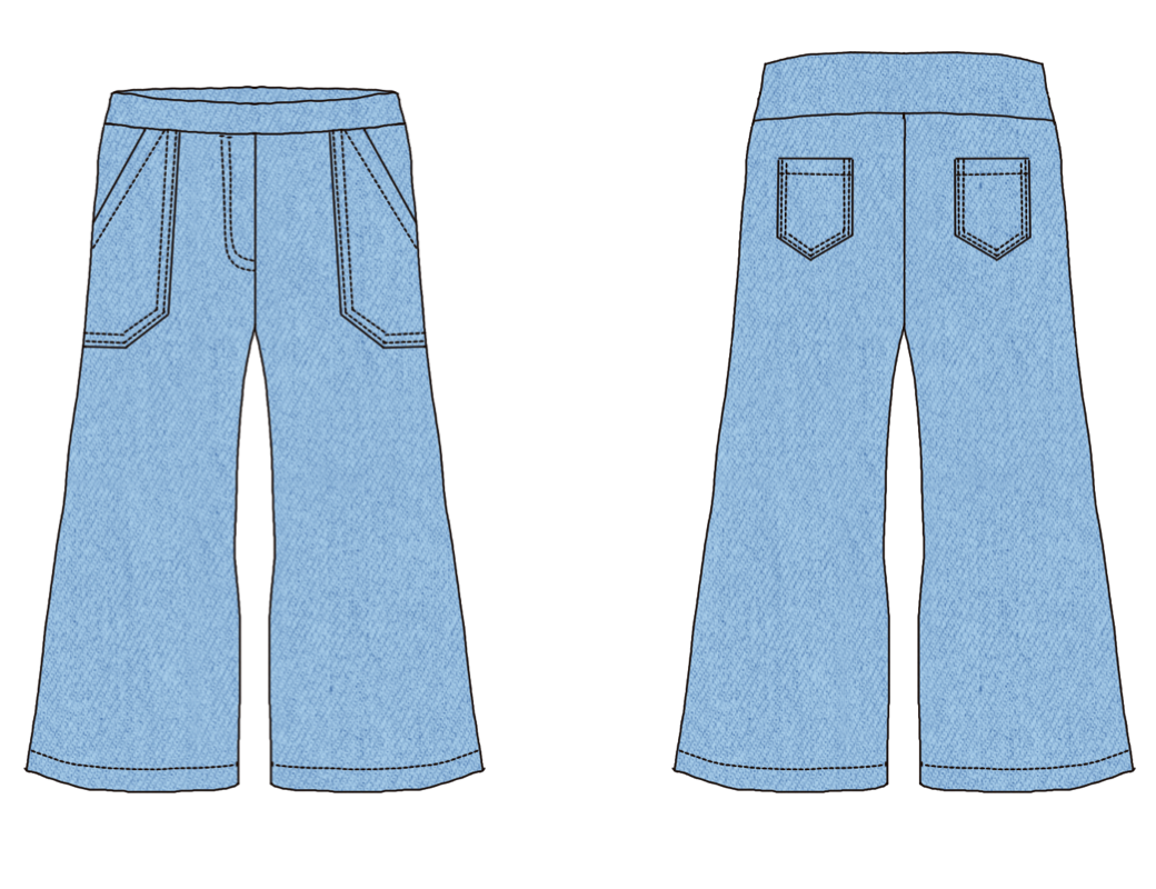 W for Wide är ett par superbekväma retro-inspirerade byxor med figurnära passform över höfterna och vida benslut. Snygga valfria detaljer såsom fuskgylf och utanpåfickor både fram och bak gör dem både praktiska och ger ett mer arbetat intryck, medan de kan sys utan detta för en enkel byxa till både vardag och fest beroende på materialval. Midjan (linningen) kan sys i två olika höjder med 4 eller 6 cm resårband. Byxan sys med valfri fuskgylf.