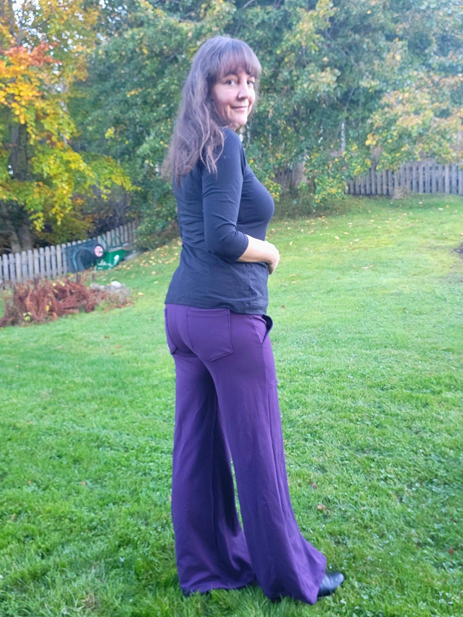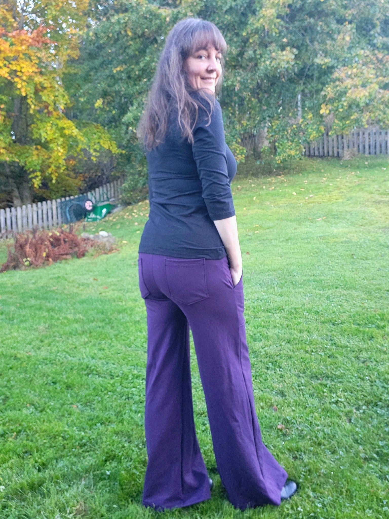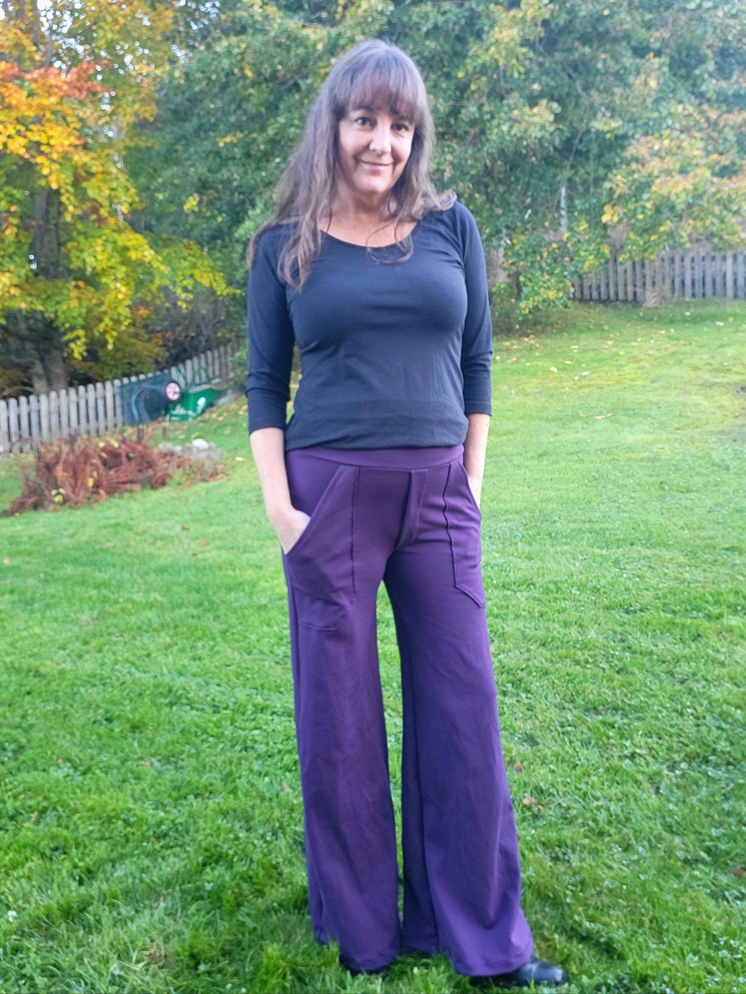 W for Wide är ett par superbekväma retro-inspirerade byxor med figurnära passform över höfterna och vida benslut. Snygga valfria detaljer såsom fuskgylf och utanpåfickor både fram och bak gör dem både praktiska och ger ett mer arbetat intryck, medan de kan sys utan detta för en enkel byxa till både vardag och fest beroende på materialval. Midjan (linningen) kan sys i två olika höjder med 4 eller 6 cm resårband. Byxan sys med valfri fuskgylf.