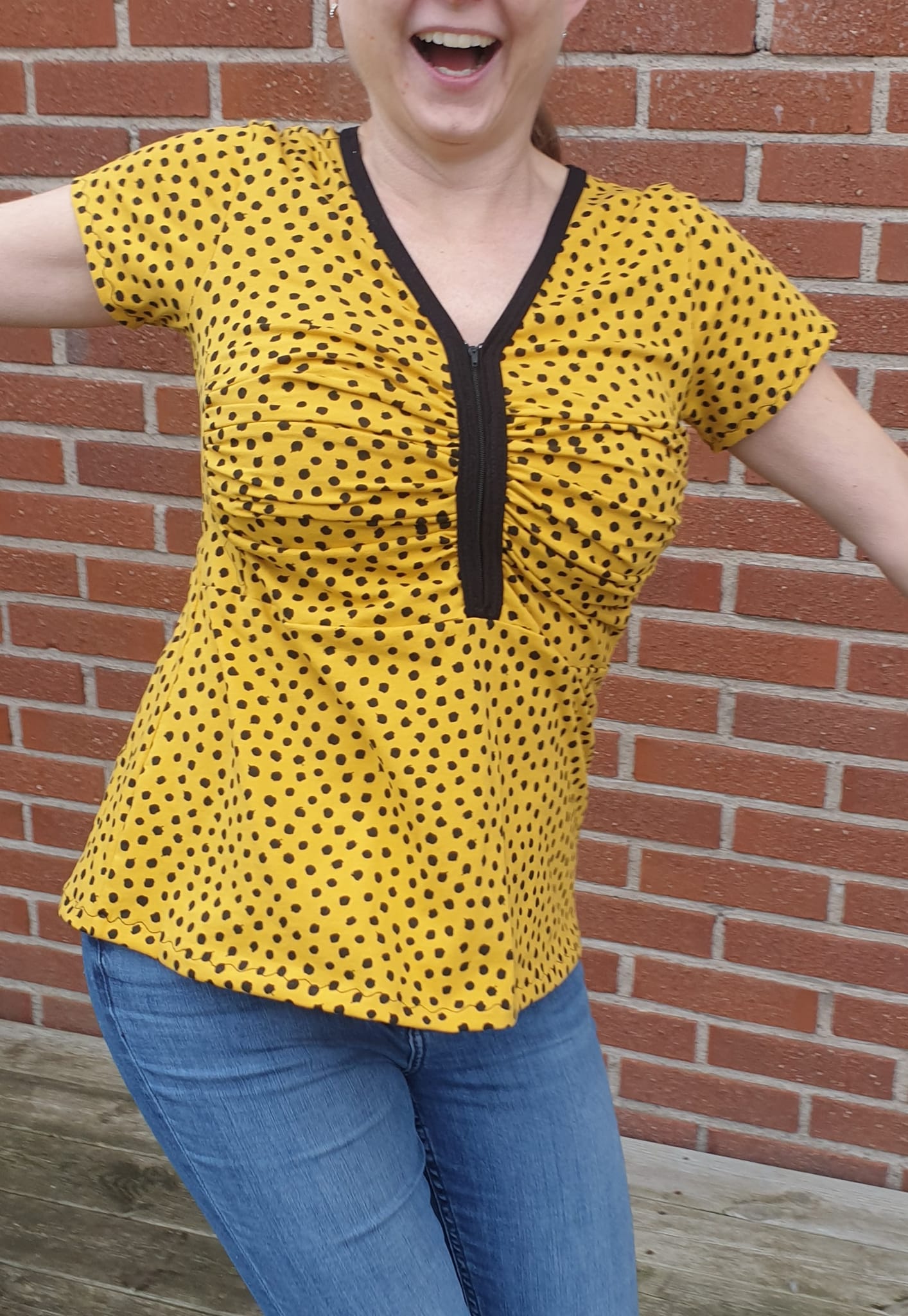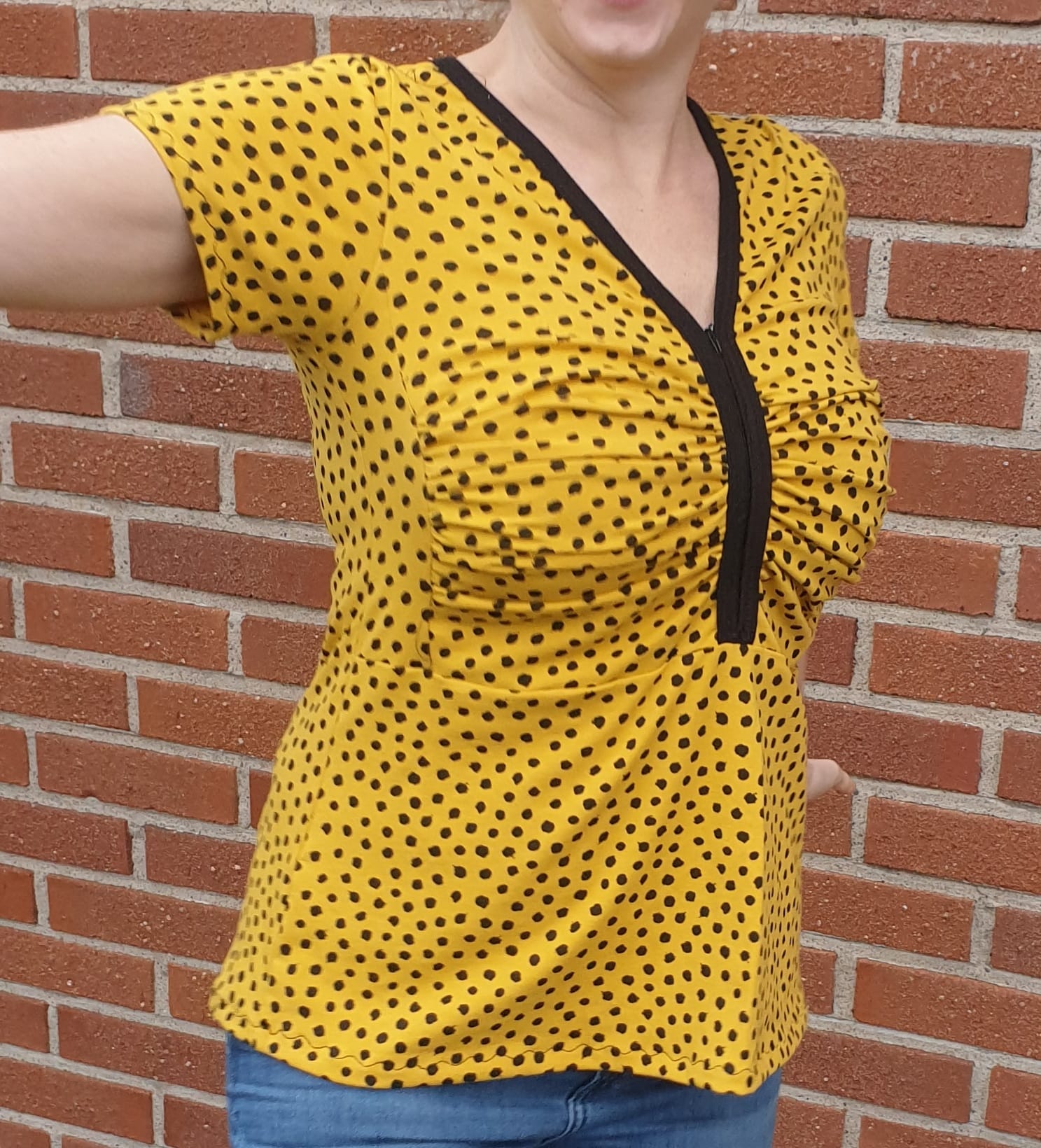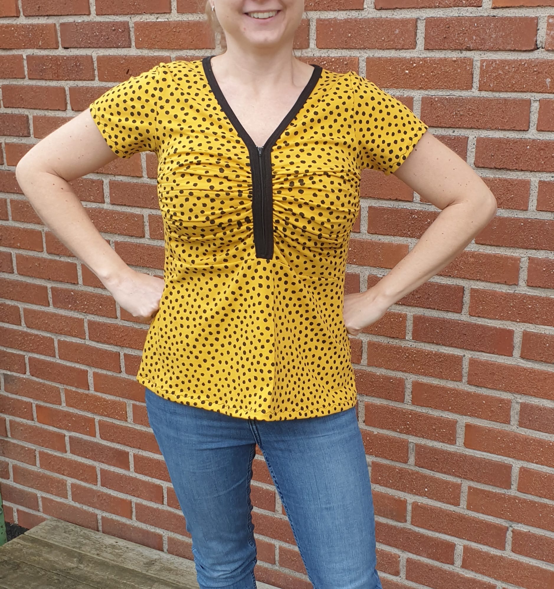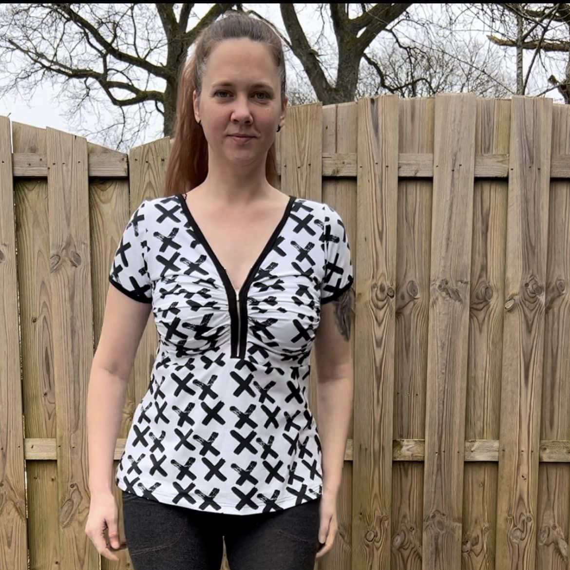 Zip it Up är en modern topp/klänning med draperat bystparti som ger ett arbetat intryck utan att vara alltför utmanande. Sys med antingen blixtlås eller knapplist i urringningen vilket gör den enkel att variera. Nederdelen går att sy figurnära eller utställd, och den utställda varianten har dessutom fickor.